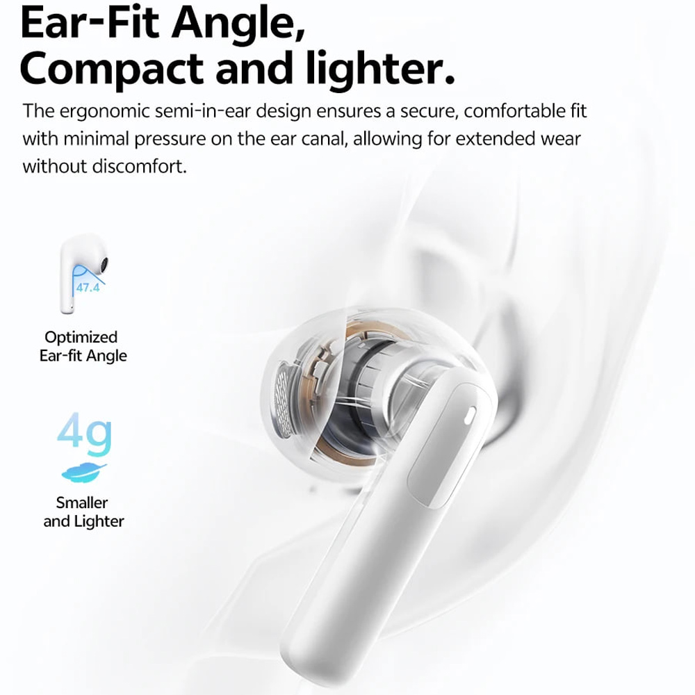 طراحی Semi-in-Ear (نیمه داخلگوشی)؛ فشار کمتر روی مجرای گوش و مناسب استفاده طولانی.