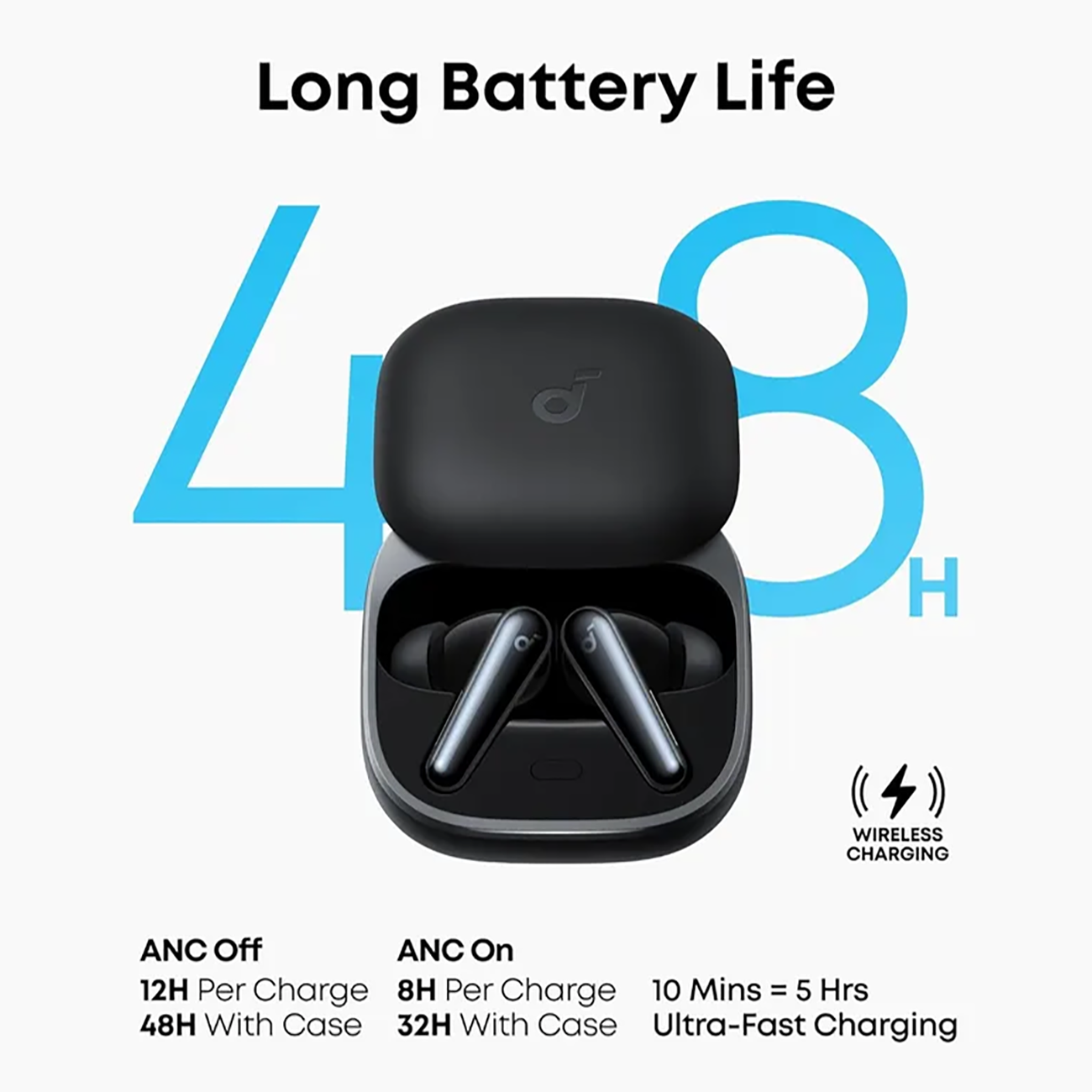 | مدت زمان شارژدهی | عمر باتری هدفون: با ANC فعال: تا ۸ ساعت با ANC غیرفعال: تا ۱۲ ساعت,عمر باتری با کیس شارژ: با ANC فعال: تا ۳۲ ساعت با ANC غیرفعال: تا ۴۸ ساعت |