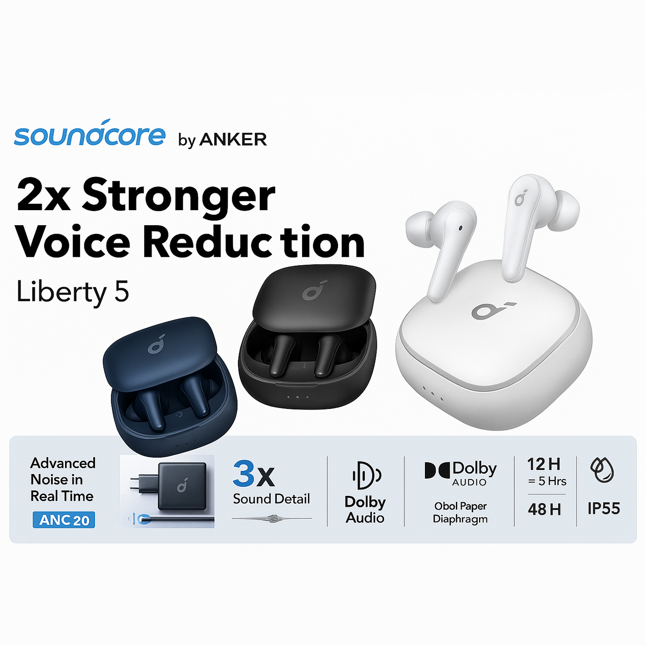 هندزفری بلوتوثی 5.4 ضدآب نویزکنسلینگ ساندکور انکر A3957P21 که با نام Soundcore Liberty 5 شناخته میشود، نسل جدید ایرپادهای انکر با تمرکز روی سه چیز است: