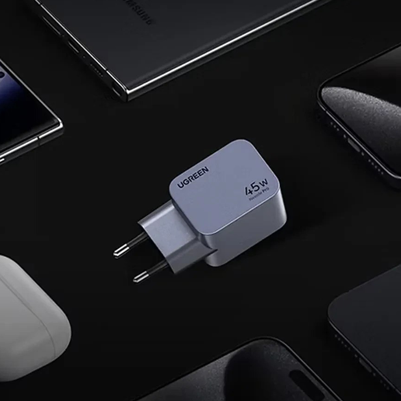 شارژر دیواری یوگرین X707 با توان 45 وات و دو پورت Type-C، گوشی، تبلت و بسیاری از لپتاپهای سبک را با سرعت بالا شارژ میکند. فناوری GaN، کوچک، کمحرارت و مناسب سفر و استفاده حرفهای.