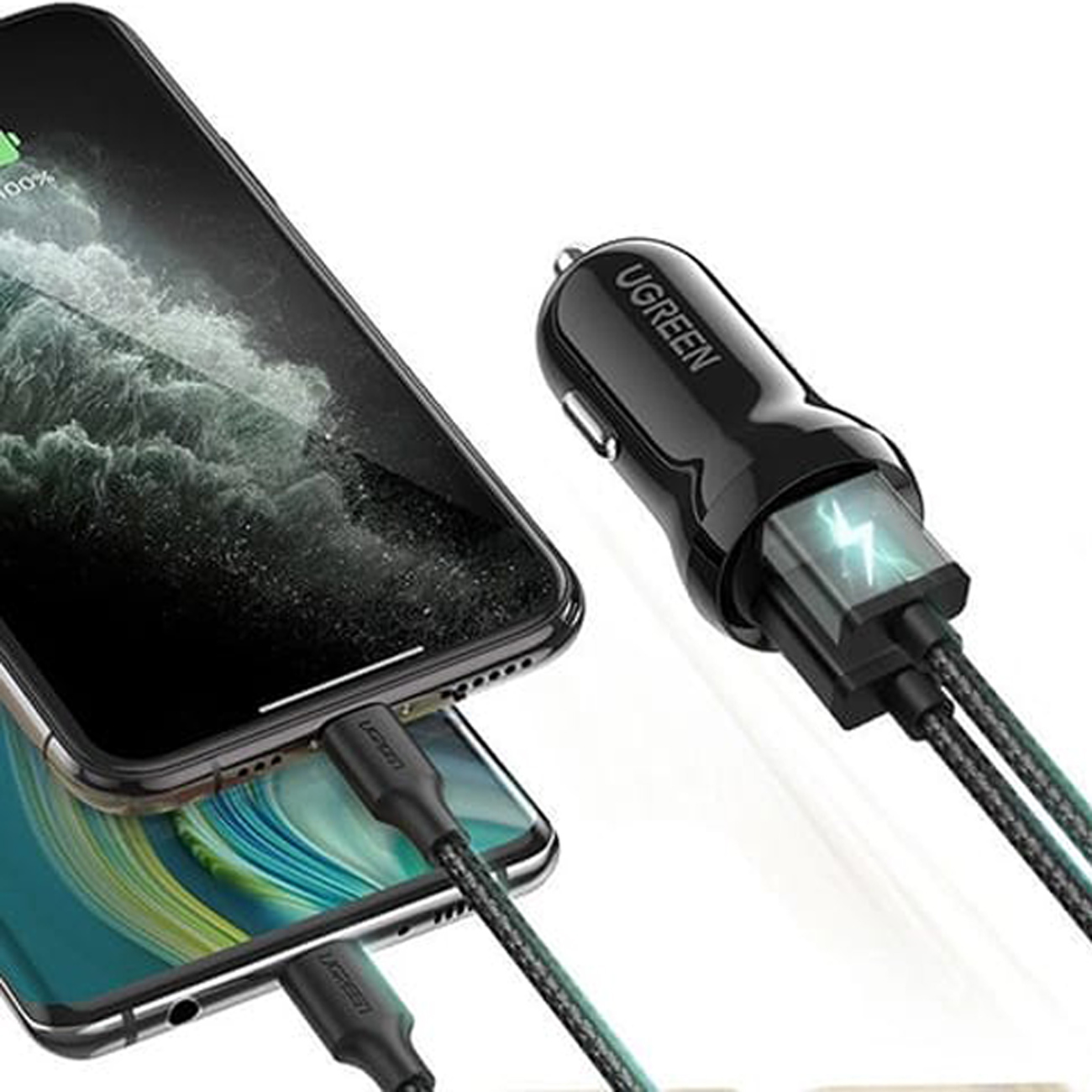 شارژر فندکی فستشارژ ماشین UGREEN ED018 (24W Dual USB Car Charger – 50875)