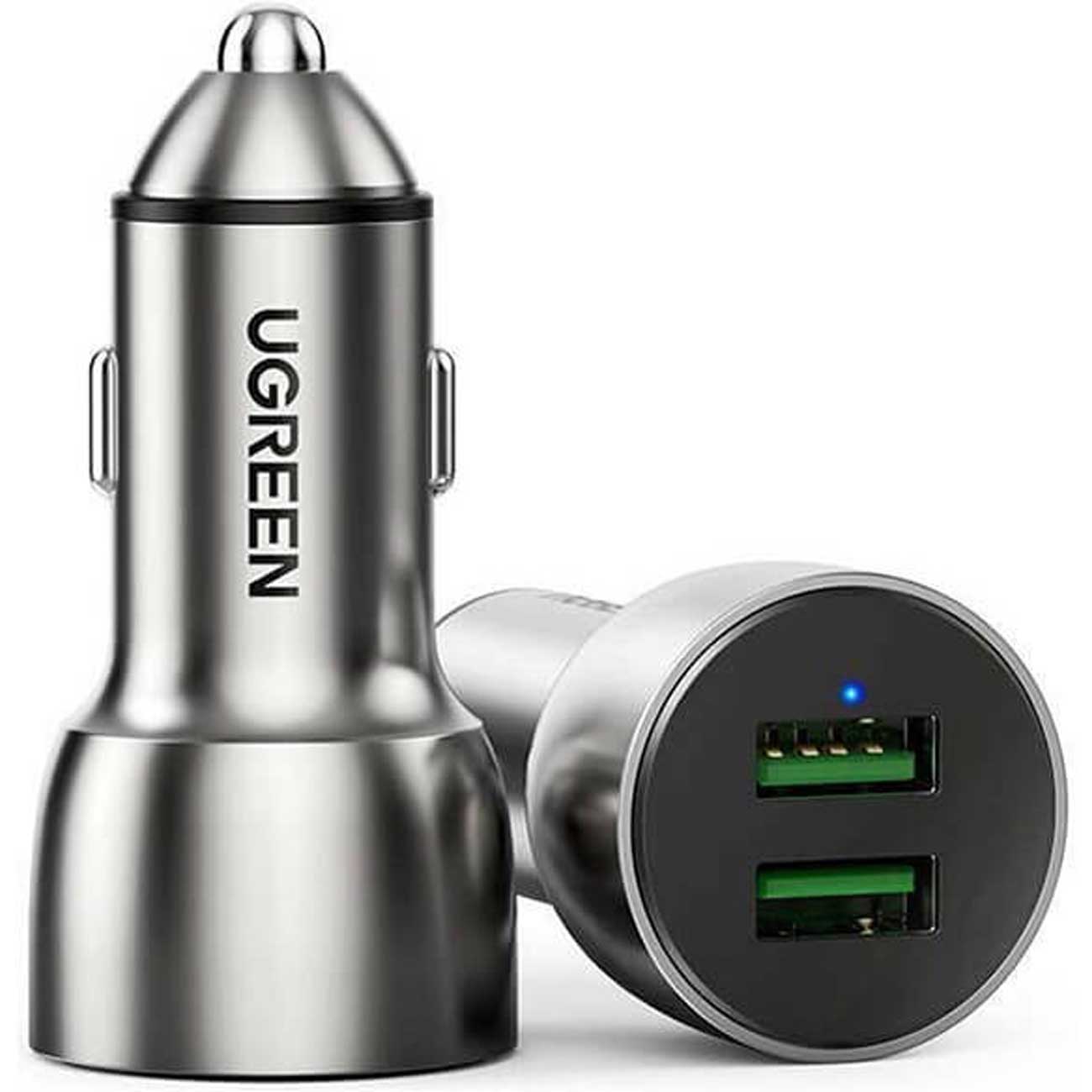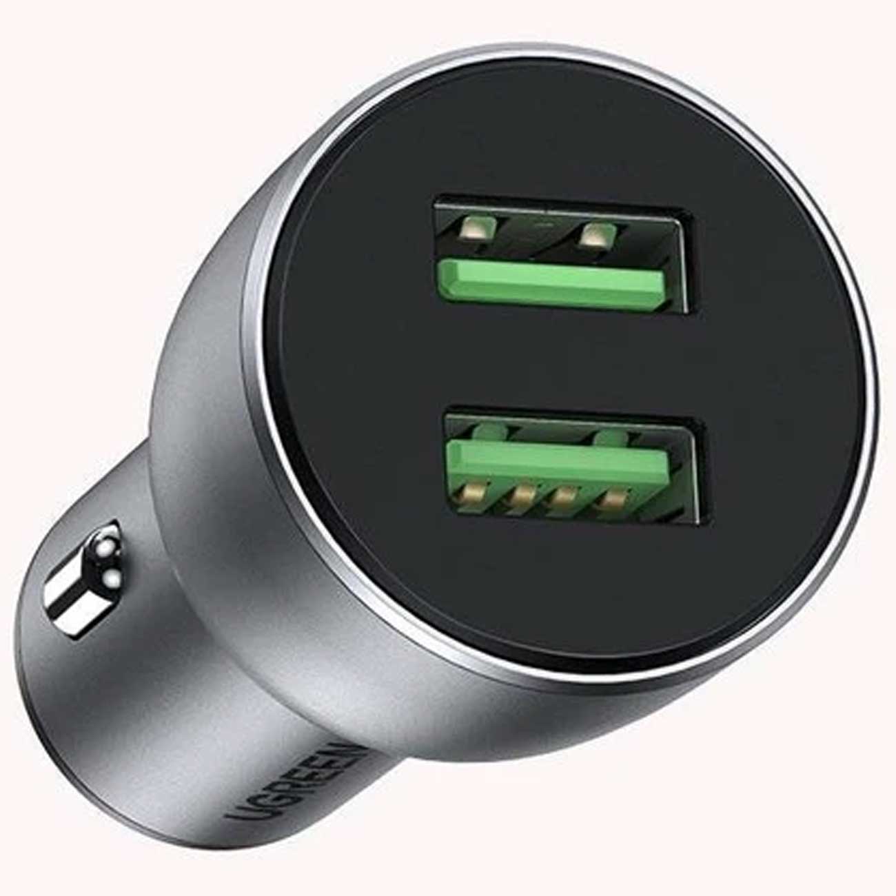 شارژر فندکی فست شارژ ۳۶ وات یوگرین Ugreen CD213 10144 با دو پورت USB، پشتیبانی از Quick Charge 3.0 و PD، ولتاژ ورودی ۱۲–۲۴ ولت، بدنه فلزی مقاوم و ایمنی چندلایه؛ مناسب شارژ سریع همزمان دو دستگاه.
