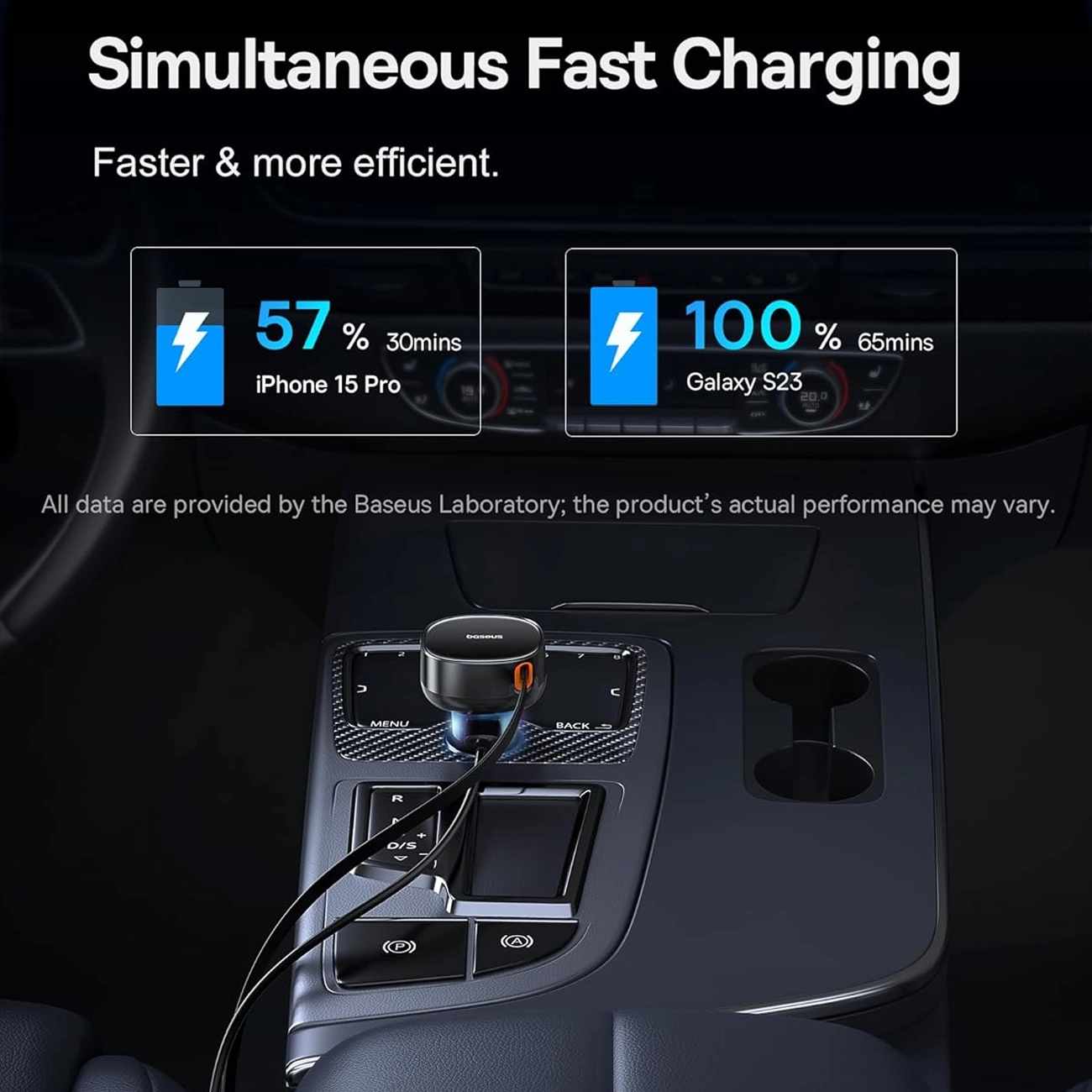 ترکیب یک پورت USB-A + یک پورت Type-C، توان کلی تا ۶۰ وات و پشتیبانی از چند پروتکل شارژ سریع، باعث میشه همزمان بتونی دو دستگاه رو با سرعت بالا و ایمن شارژ کنی؛ بدون اینکه جا فندکی ماشین رو شلوغ یا بدمنظر کنه.