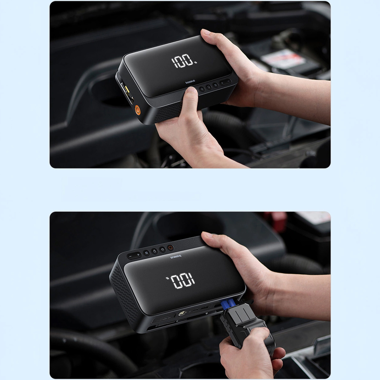 | امکانات و قابلیتها | جامپ استارتر 600 آمپر، کمپرسور 150 PSI، پاوربانک، چراغ قوه با حالتهای ثابت/SOS/استروب، 12 حفاظت ایمنی، نمایشگر دیجیتال، محفظه نگهداری لوازم |