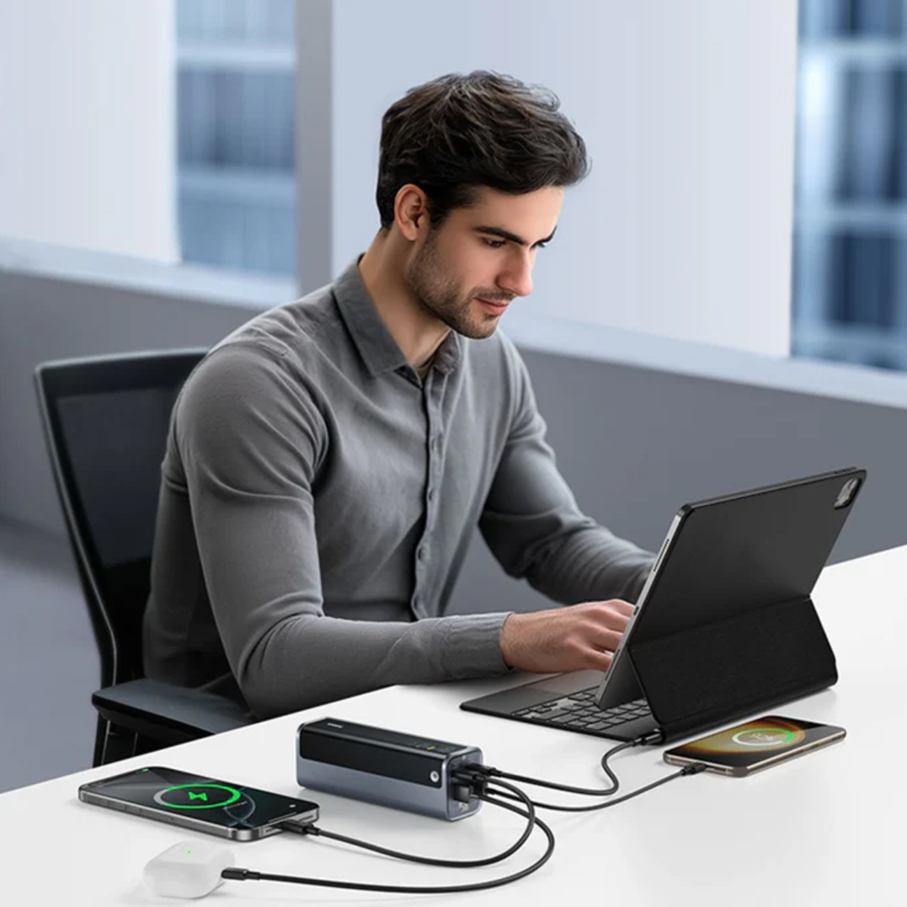 | امکانات و قابلیتها | شارژ همزمان 4 دستگاه، نمایشگر دیجیتال هوشمند، حفاظتهای 9گانه ایمنی، کابل 100W همراه، TSA-approved |