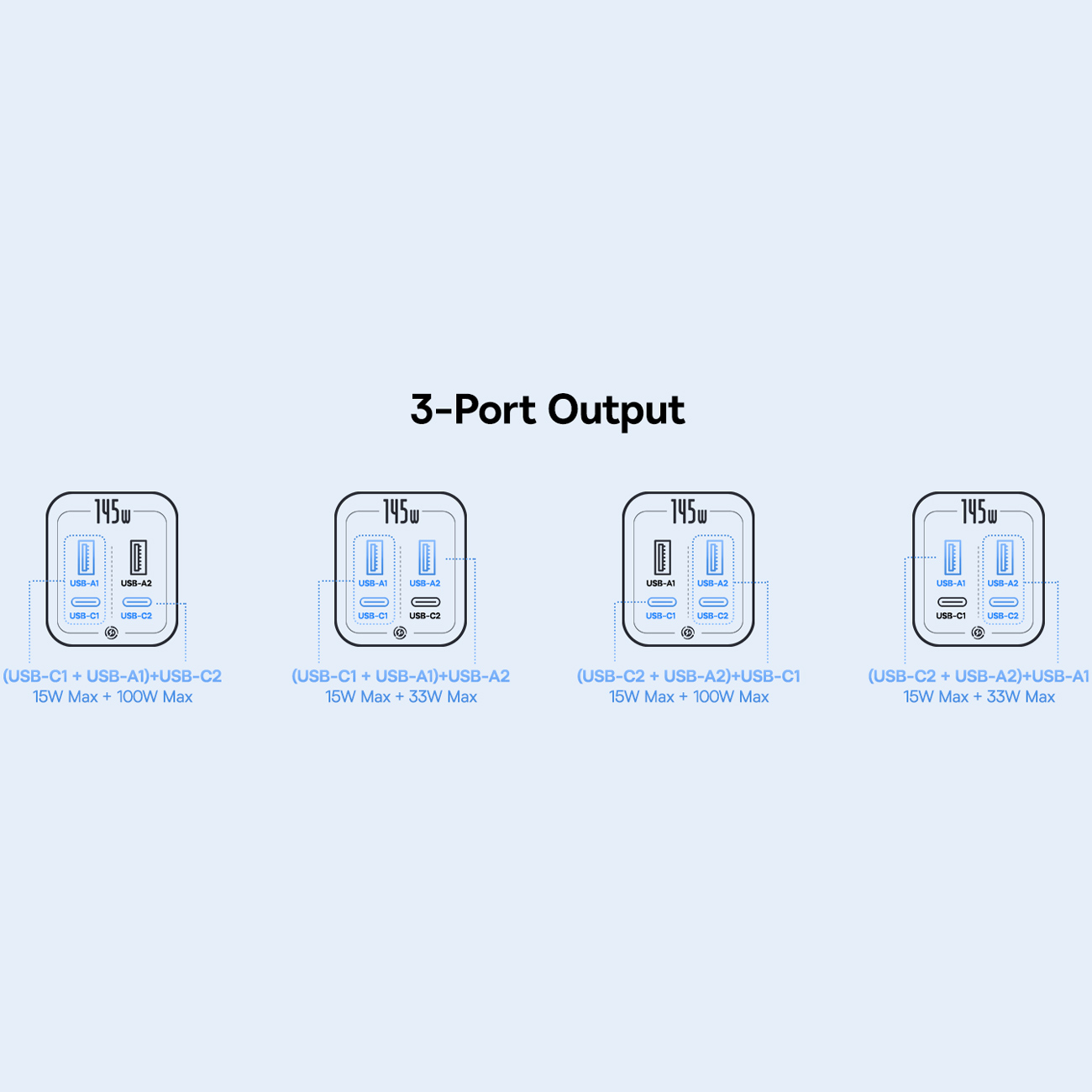 | خروجی USB-C1 + USB-A2 | 100W Max + 33W Max |