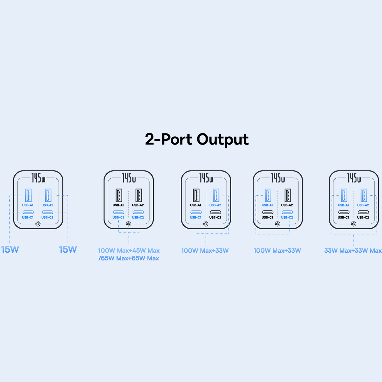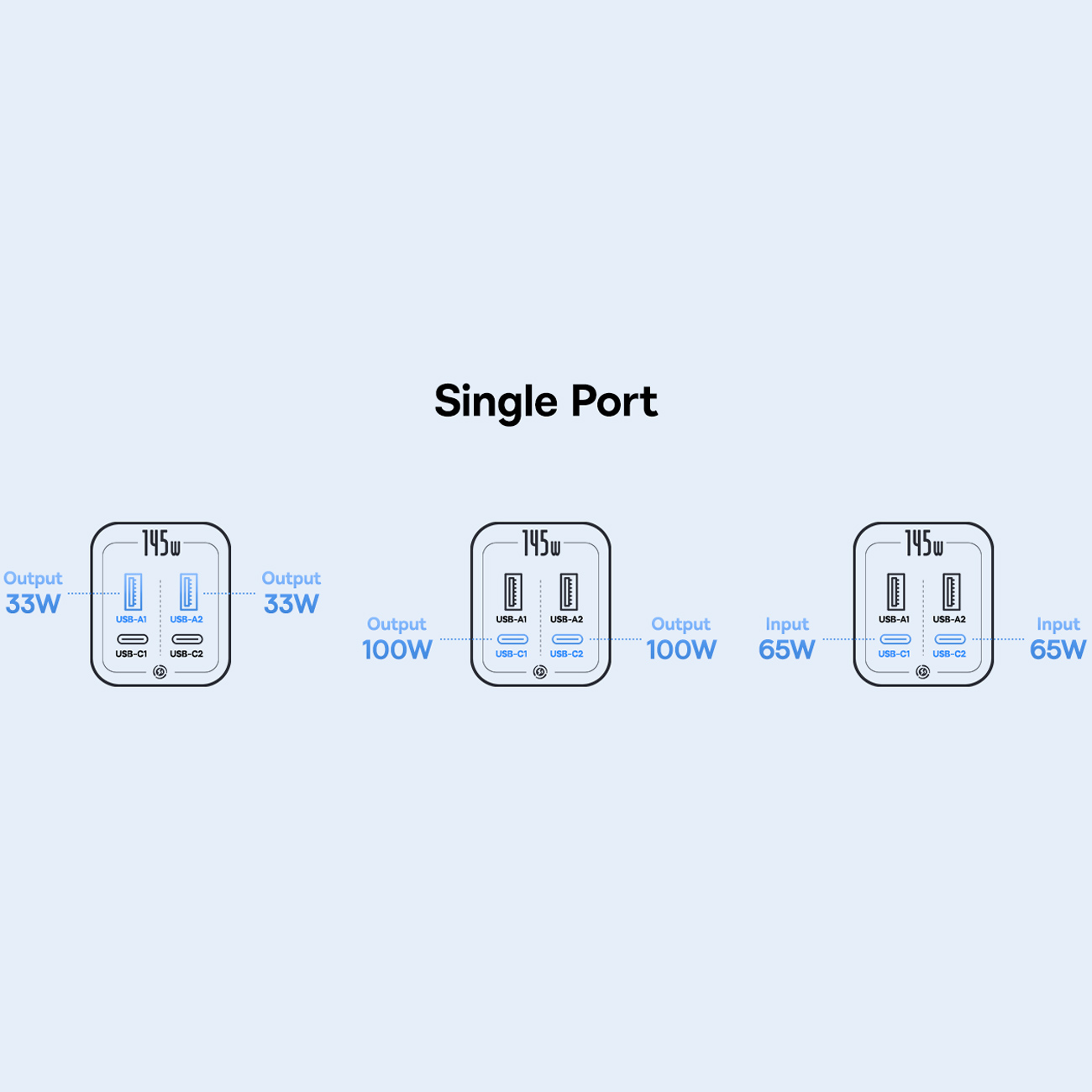 | حداکثر توان خروجی | 145 وات (توزیعشده بین پورتها) |
