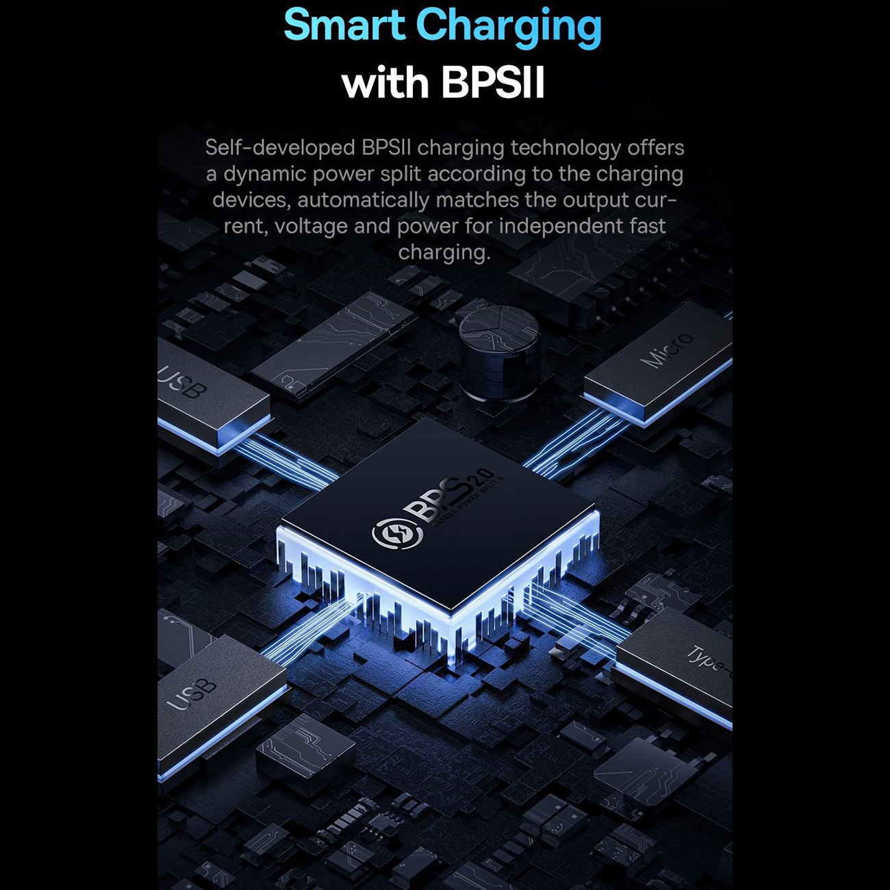 توان خروجی Type-C: 5V/3A; 9V/3A; 12V/2.5A; 15V/2A; 20V/1.5A USB-1/USB-2: 5V/3A; 9V/2A; 12V/1.5A; 10V/2.25A (SCP)