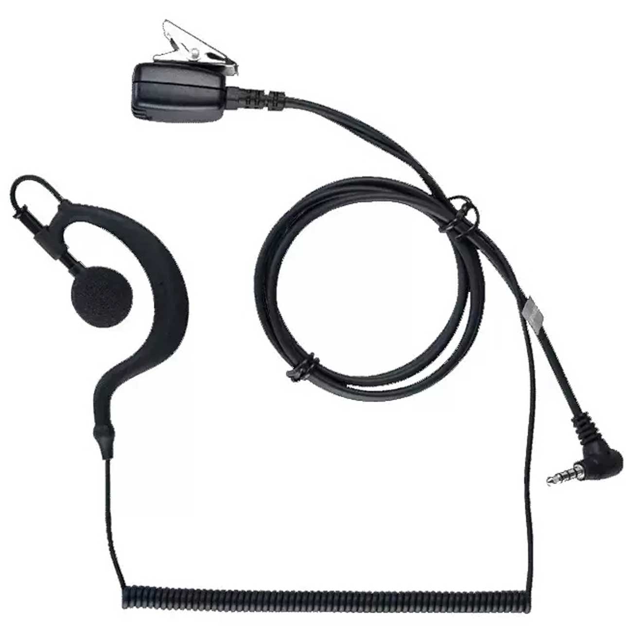 هدست سیمی تکگوش واکیتاکی H1 با طراحی Ear-Hook، کابل فنری 1.57 متر، سیم ضخیم 3 میلیمتر، میکروفون با دکمه تماس سریع، اتصال جک ۳٫۵ میلیمتری؛ مناسب امنیت، هتلداری، طبیعتگردی.