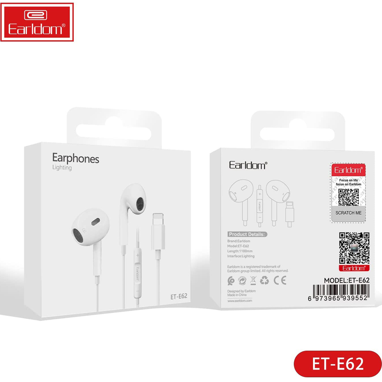هندزفری لایتنینگ ارلدام E62 با صدای شفاف، بیس مناسب و میکروفون باکیفیت، مخصوص آیفون طراحی شده. مناسب موسیقی، مکالمه و استفاده روزمره—بدون نیاز به تبدیل و با اتصال پایدار.
