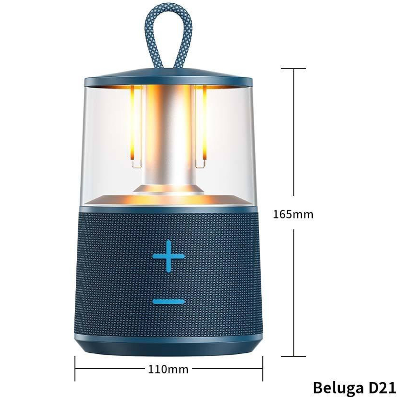 اسپیکر بلوتوثی و چراغ کمپینگ WEKOME BELUGA D21 با بلوتوث 5.3، باتری ۱۸۰۰ mAh، خروجی ۵ وات، چراغ LED چندحالته، ابعاد 110×110×165 میلیمتر، وزن ~۵۰۶ گرم؛ مناسب سفر