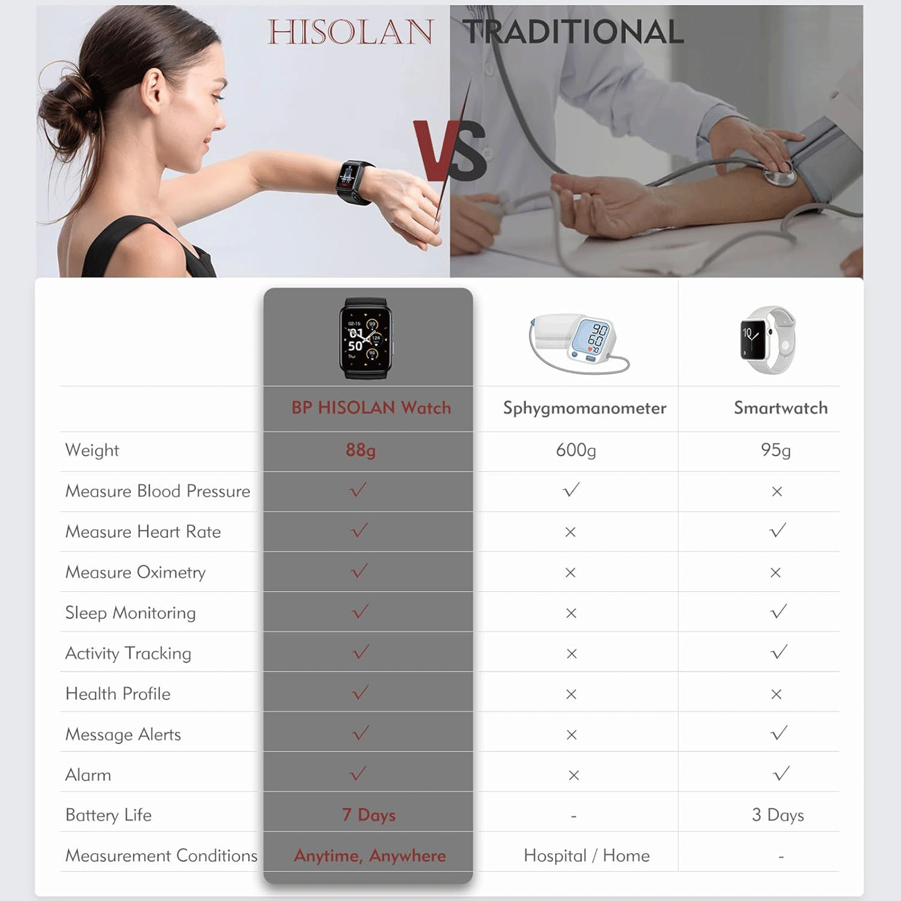 HISOLAN Smart Blood Pressure Monitor Watch - Accurate Health Tracking, Blood Oxygen Monitoring and Heart Rate