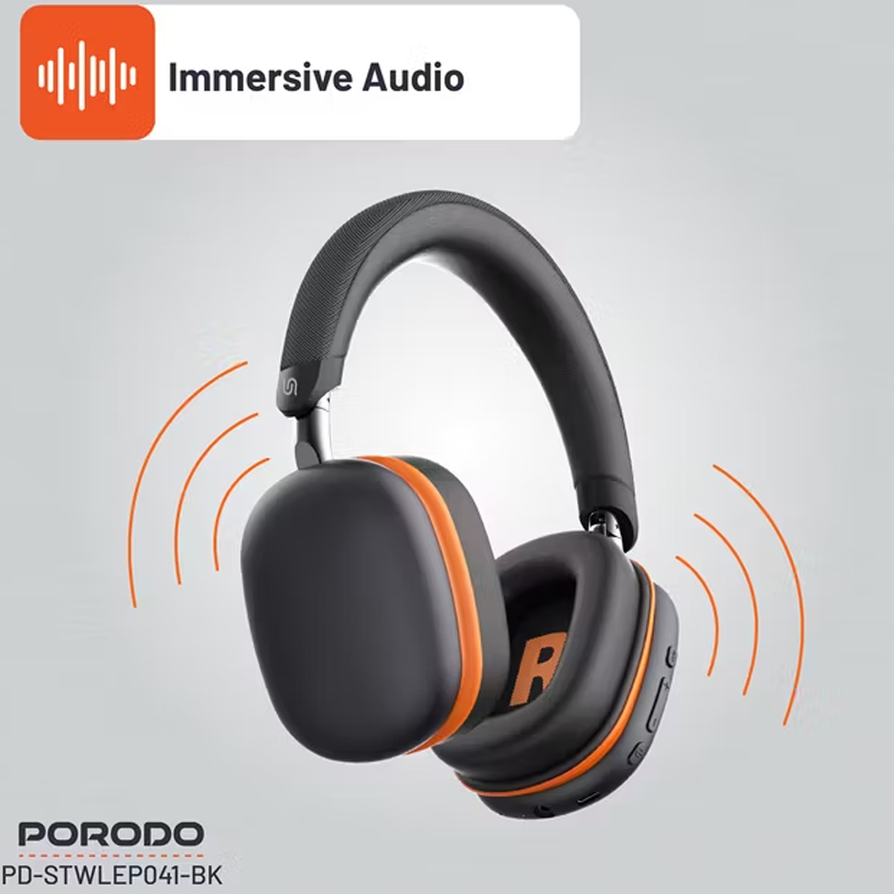هدفون بلوتوثی 5.3 پورودو Porodo PD-STWLEP041-BK (Soundtec Vibe) یک هدفون روگوشی بیسیم با طراحی مدرن و سبک است که برای گوش دادن طولانیمدت به موسیقی، تماشای فیلم، پادکست و مکالمه طراحی شده.