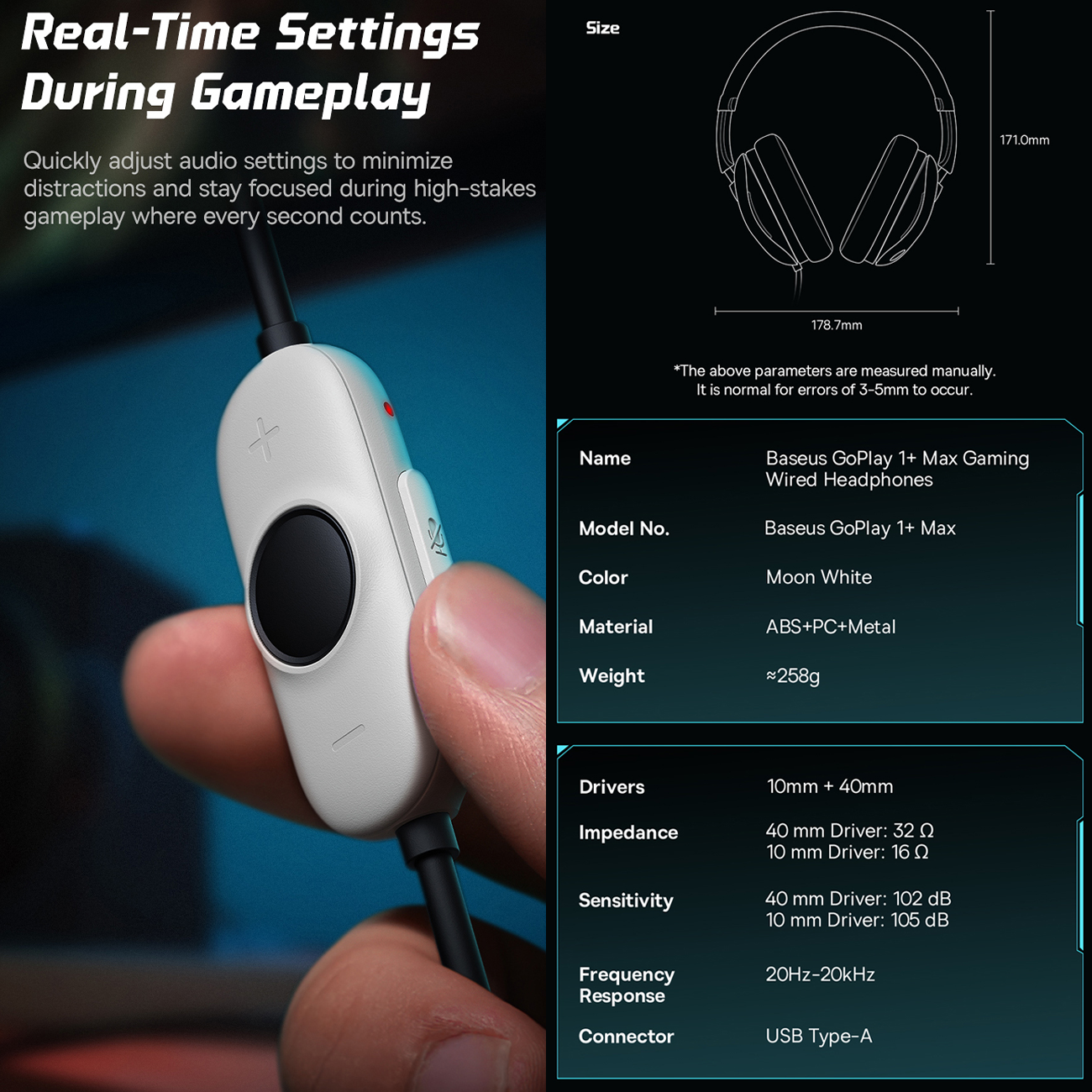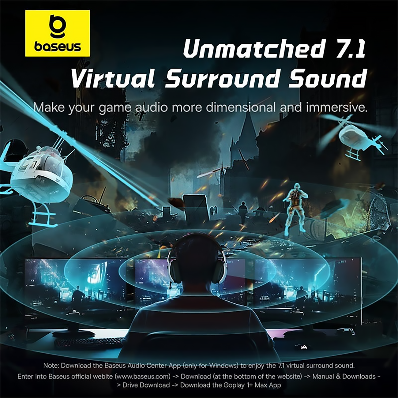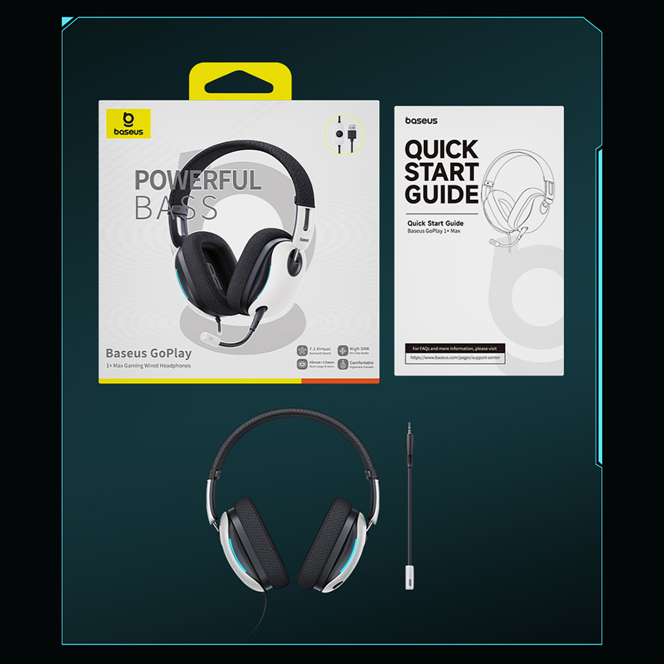 هدست گیمینگ سیمی بیسوس GoPlay 1+ Max با صدای فراگیر 7.1، درایور دوگانه 40+10 میلیمتری، میکروفون جداشدنی با نویزکنسلینگ، اتصال USB و طراحی سبک ۲۵۸ گرمی؛ مناسب گیم، استریم و چت صوتی.