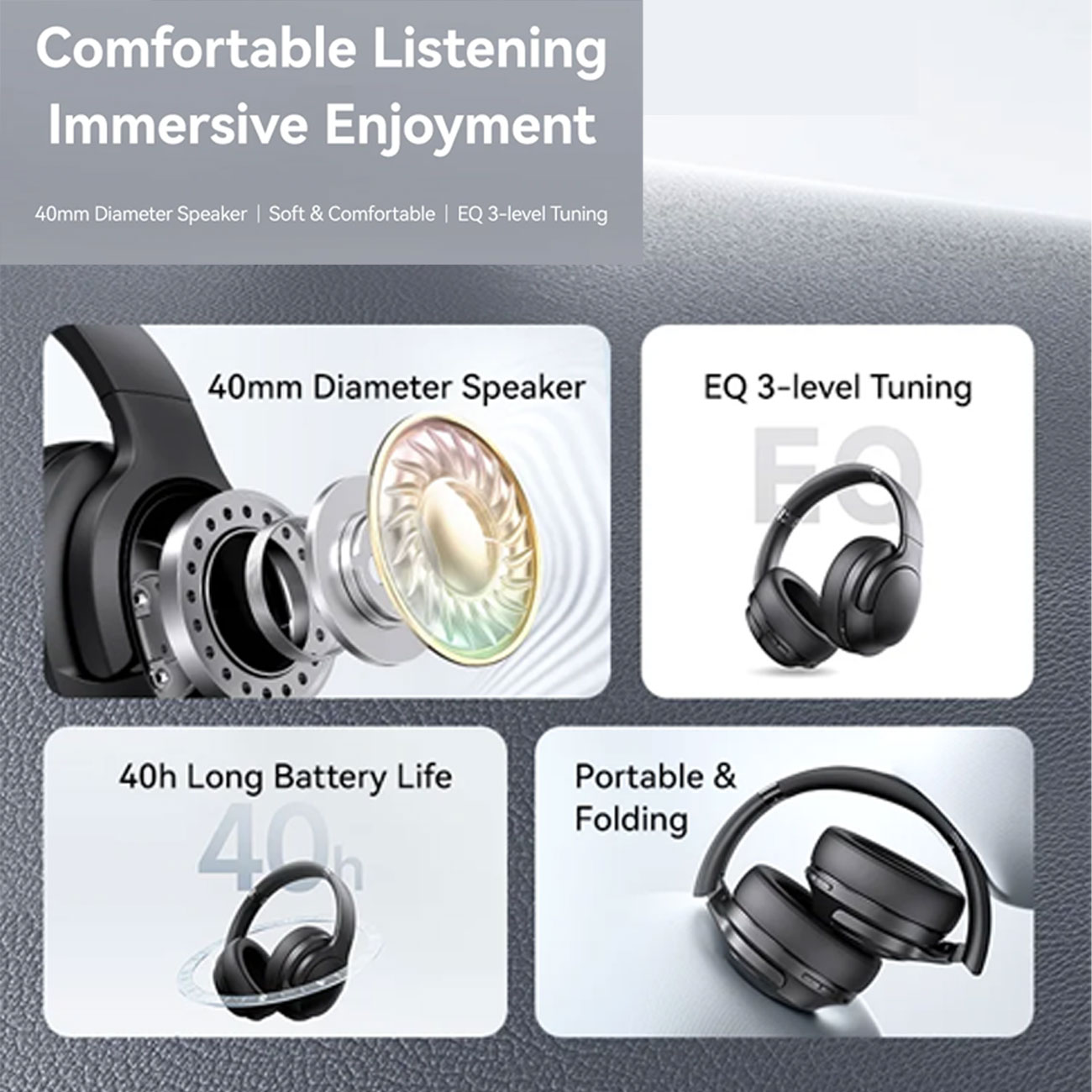 هدفون Usams UJ29 با اتصال بیسیم و سیمی، صدای استریوی شفاف، باس قوی، میکروفون داخلی، باتری بادوام، طراحی تاشو و راحت؛ مناسب موسیقی، فیلم و مکالمه روزانه.