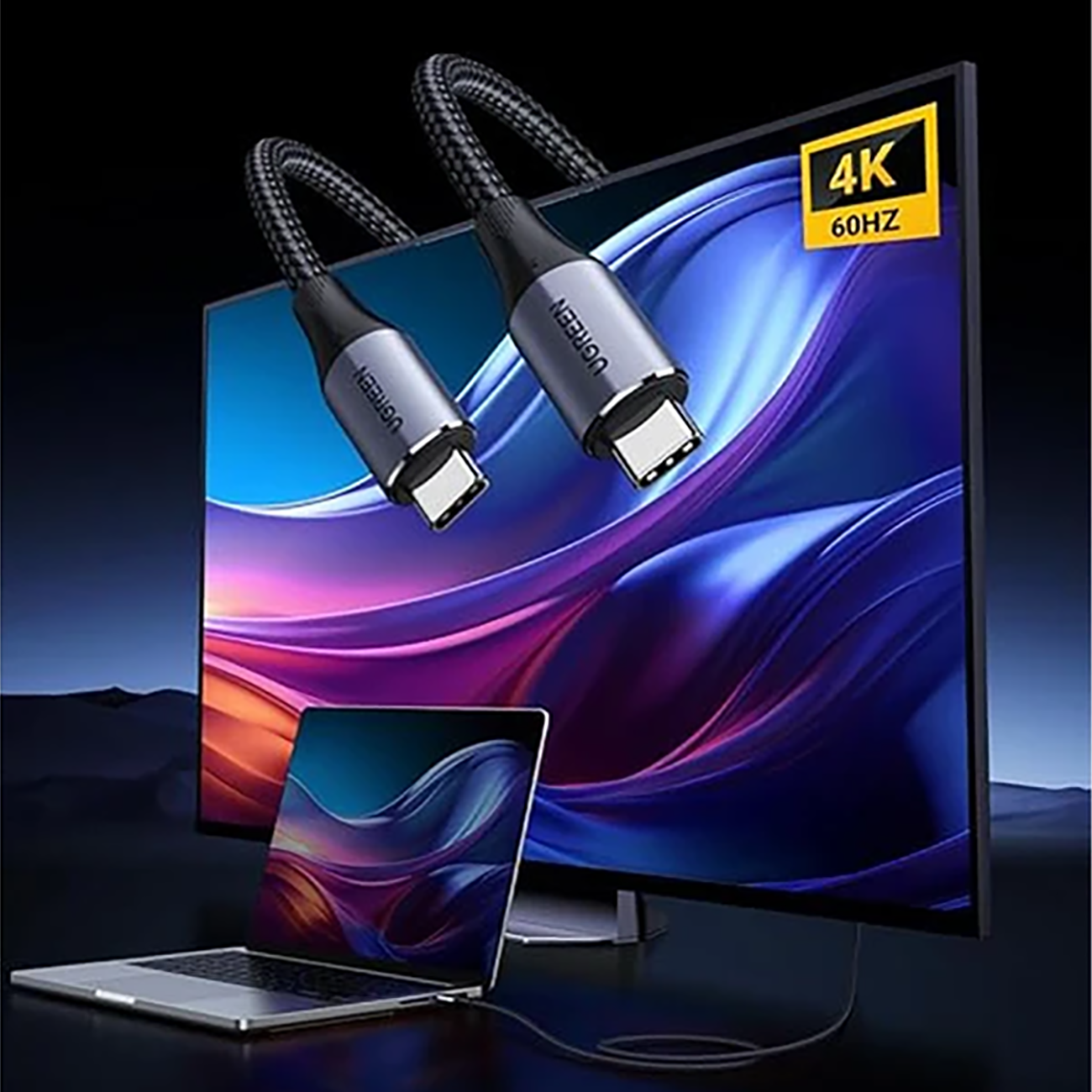 کابل USB-C به USB-C یوگرین US355 طول ۱ متر، توان شارژ تا ۱۰۰ وات (۵ آمپر)، انتقال داده تا ۱۰ گیگابیتبرثانیه، پشتیبانی از تصویر 4K@60Hz