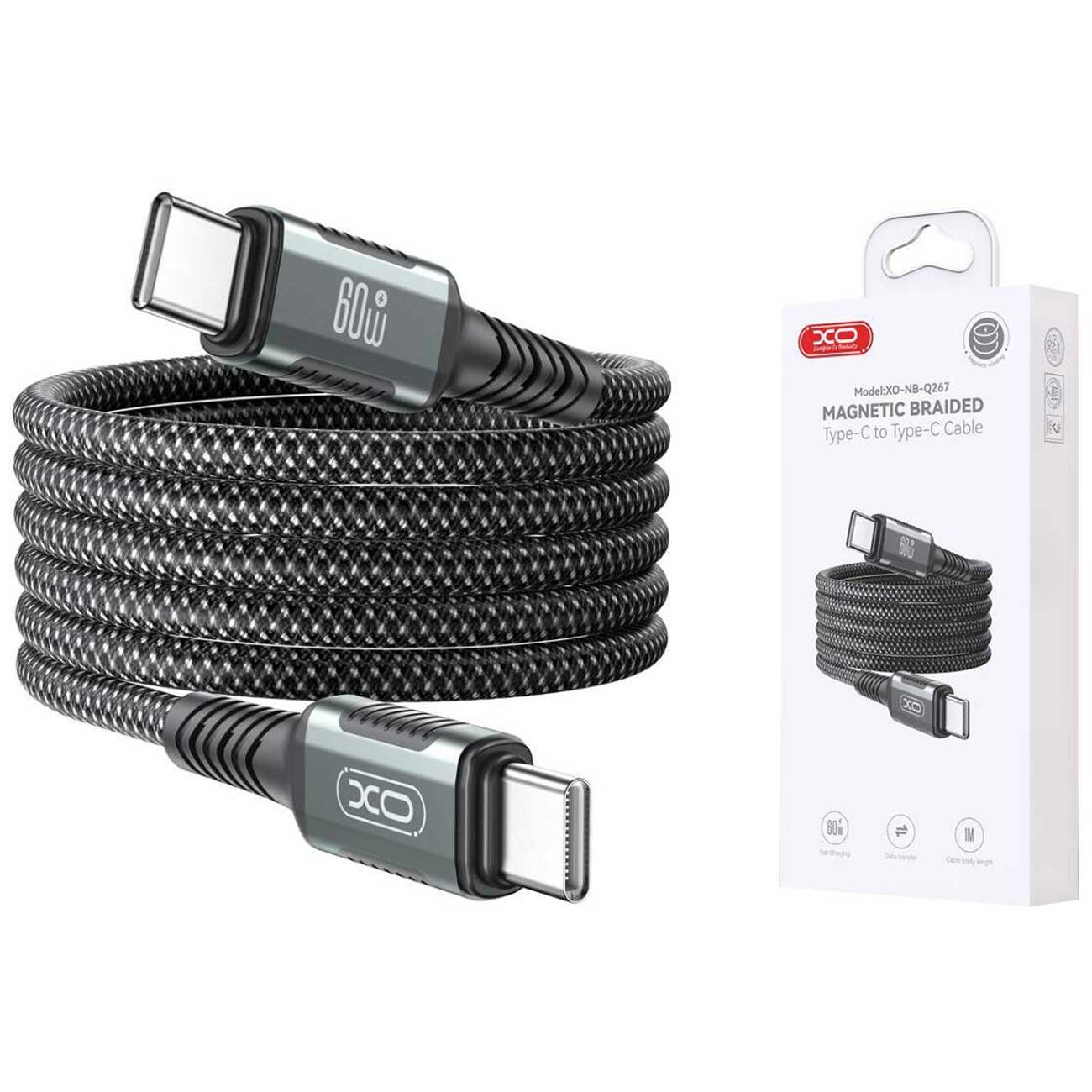 کابل مگنتی تایپسی XO NB-Q267 با توان 100 وات، اتصال سریع و ایمن، سر مگنتی جداشونده، چیپ هوشمند و طول 1 متر؛ مناسب شارژ سریع گوشی، تبلت و لپتاپهای USB-C.