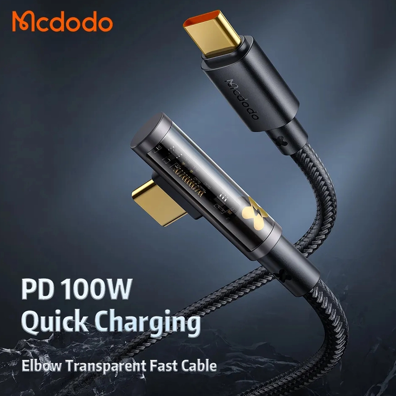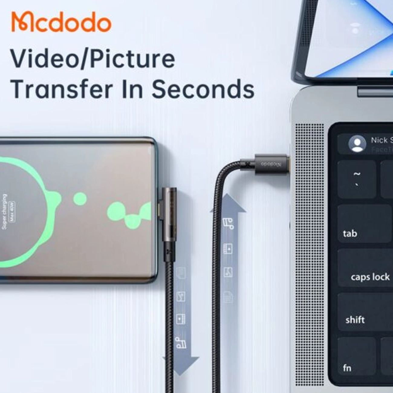 کابل شارژ تایپسی به تایپسی 100 واتی مکدودو Mcdodo CA-3400 با انتقال داده، پشتیبانی از شارژ PD 100W، روکش نایلون بافته، طول 1 متر؛ مناسب مکبوک، لپتاپ، گوشی و تبلت با شارژ سریع.
