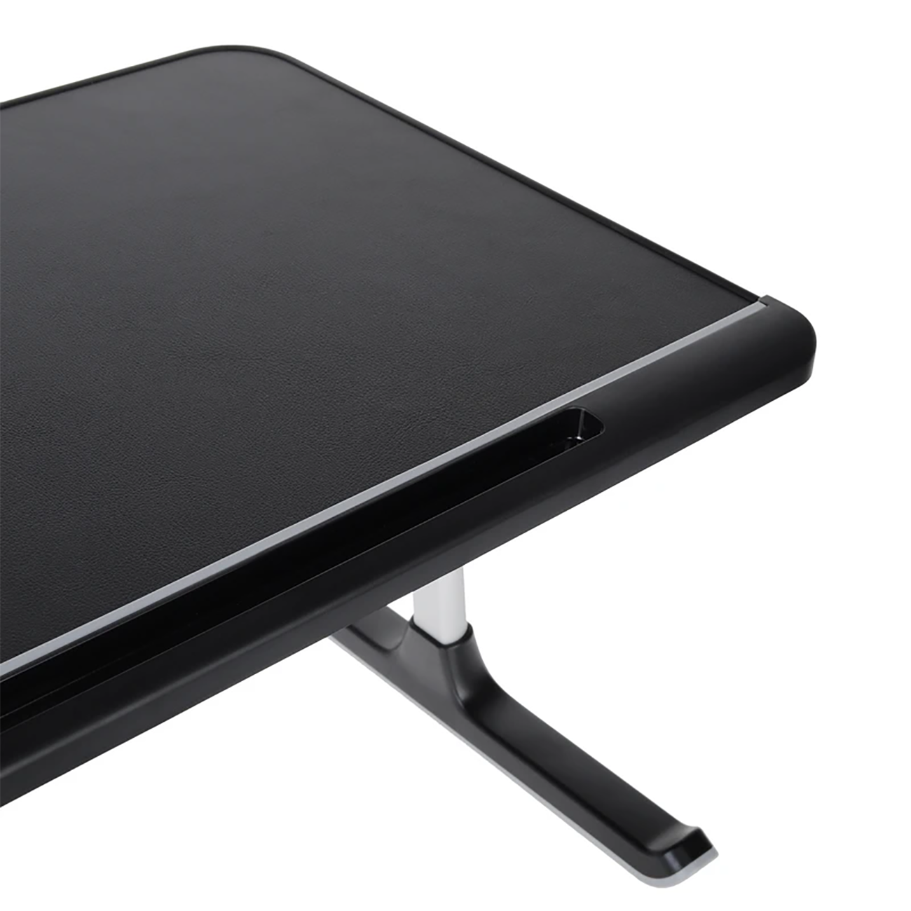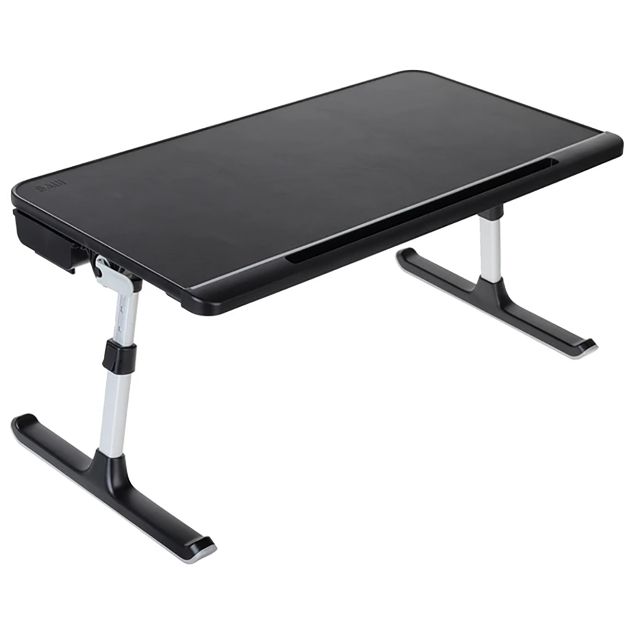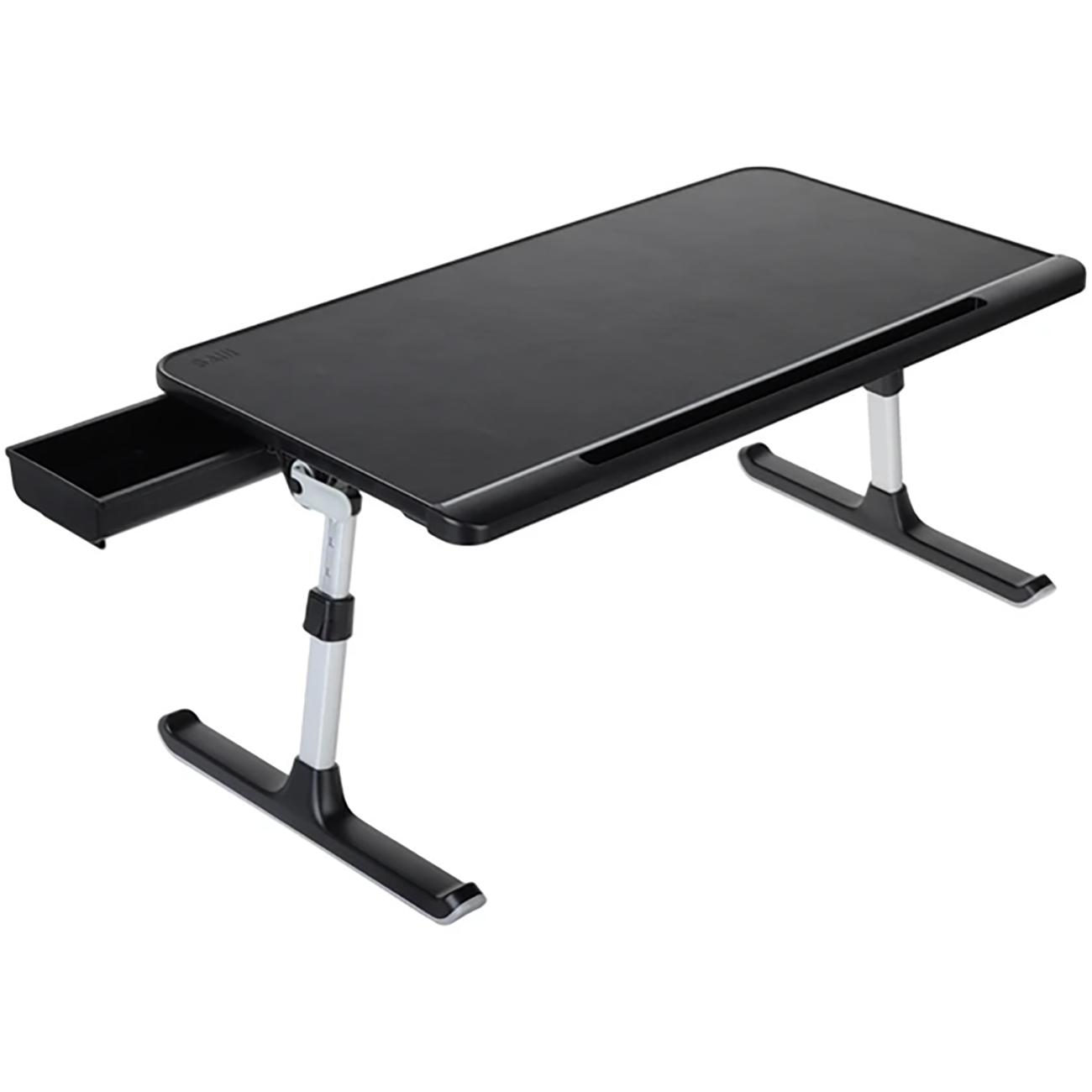 ترکیب بدنه آلیاژ آلومینیوم، MDF و چرم PU، ارتفاع قابل تنظیم تا 38.4 سانتیمتر، زاویهپذیری صفحه تا 36 درجه، کشوی جانبی و پایههای ضدلغزش باعث شده این مدل هم برای کار پشت میز، هم روی تخت و مبل، هم برای مطالعه و نوشتن عالی باشه.