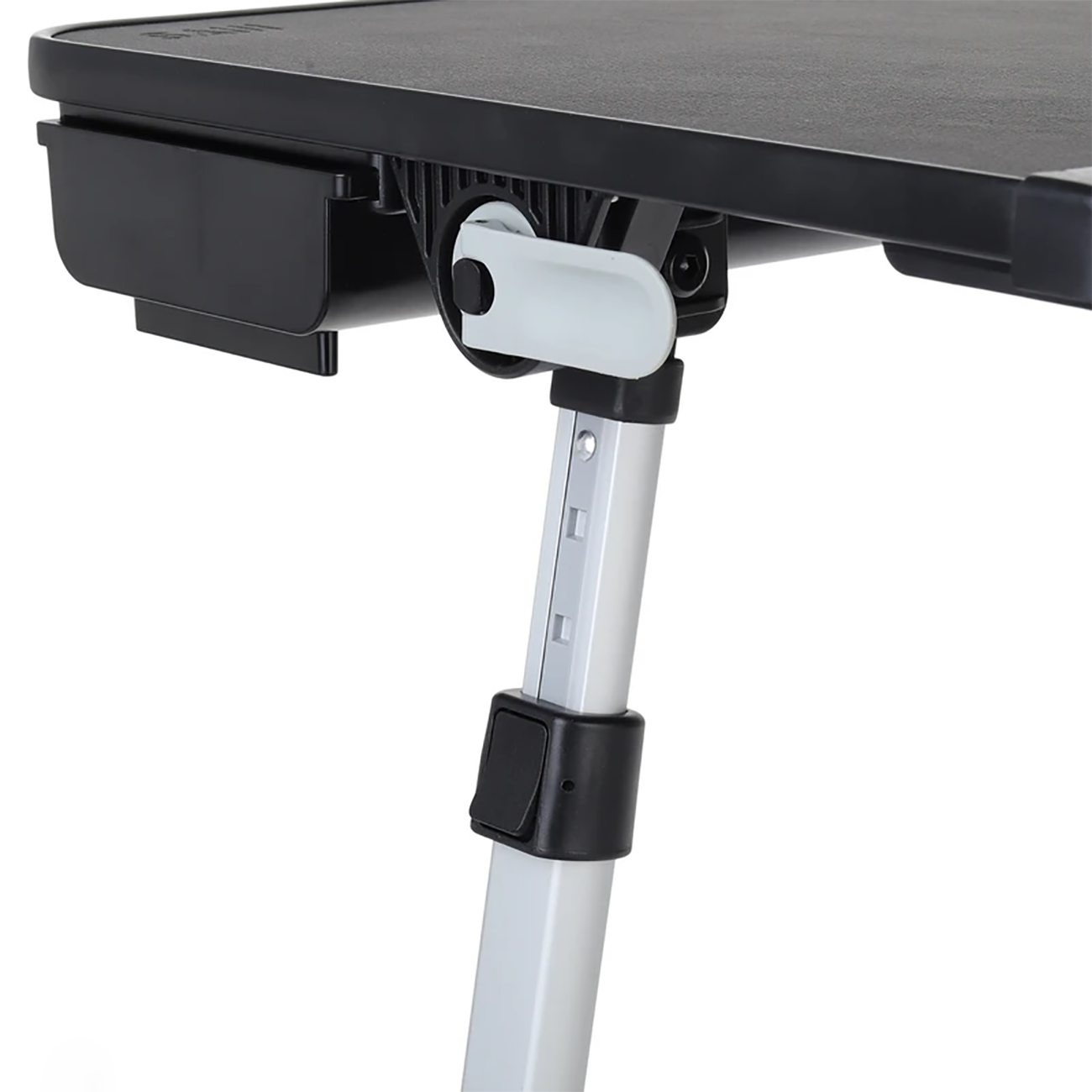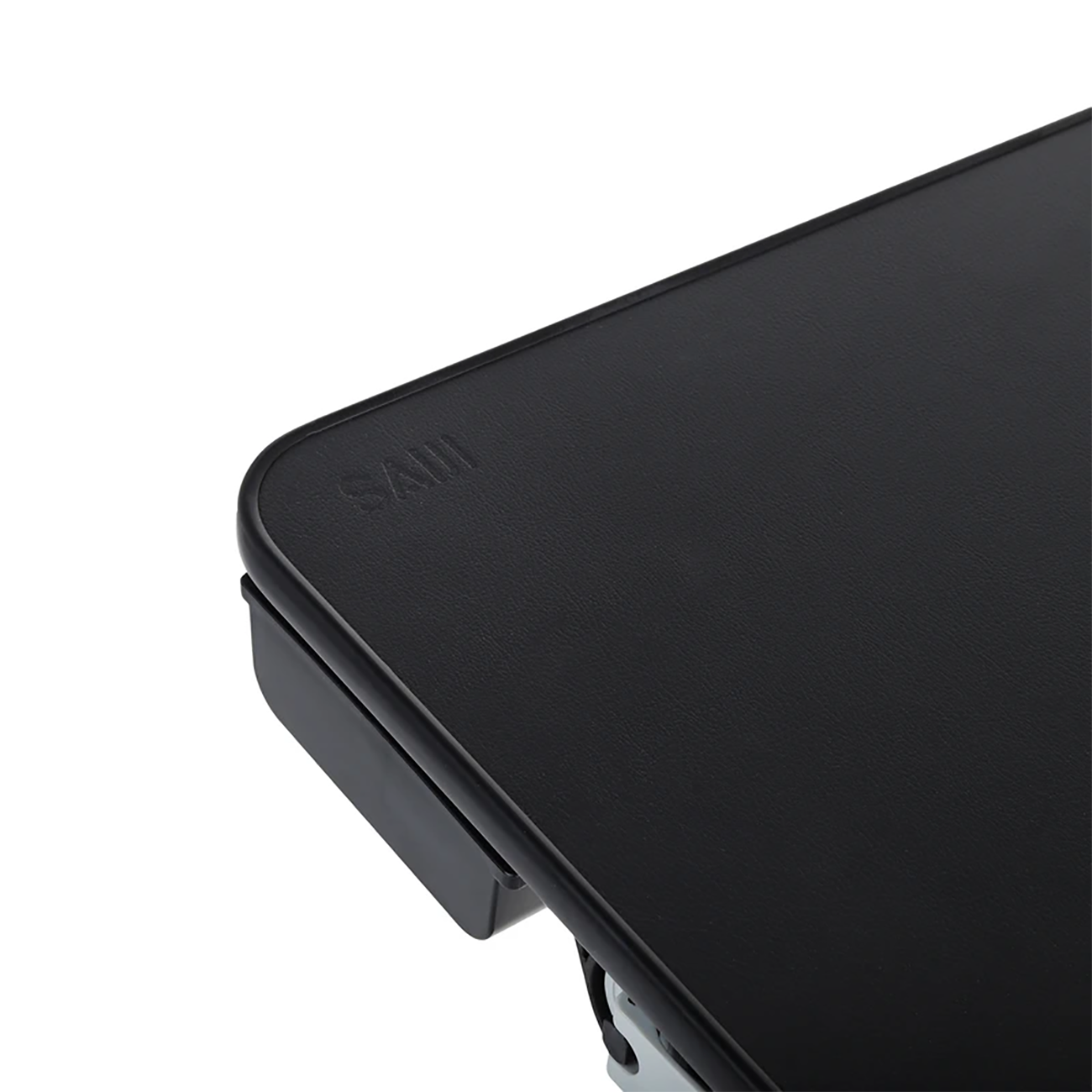میز و پایه نگهدارنده لپتاپ 16 تا 17 اینچ سایجی K7-M با بدنه آلومینیوم، MDF و چرم PU، ارتفاع قابل تنظیم تا 38.4 سانتیمتر، تنظیم زاویه تا 36 درجه، کشوی جانبی، پایههای ضدلغزش، طراحی تاشو و قابل حمل؛ مناسب کار، مطالعه و لپتاپ