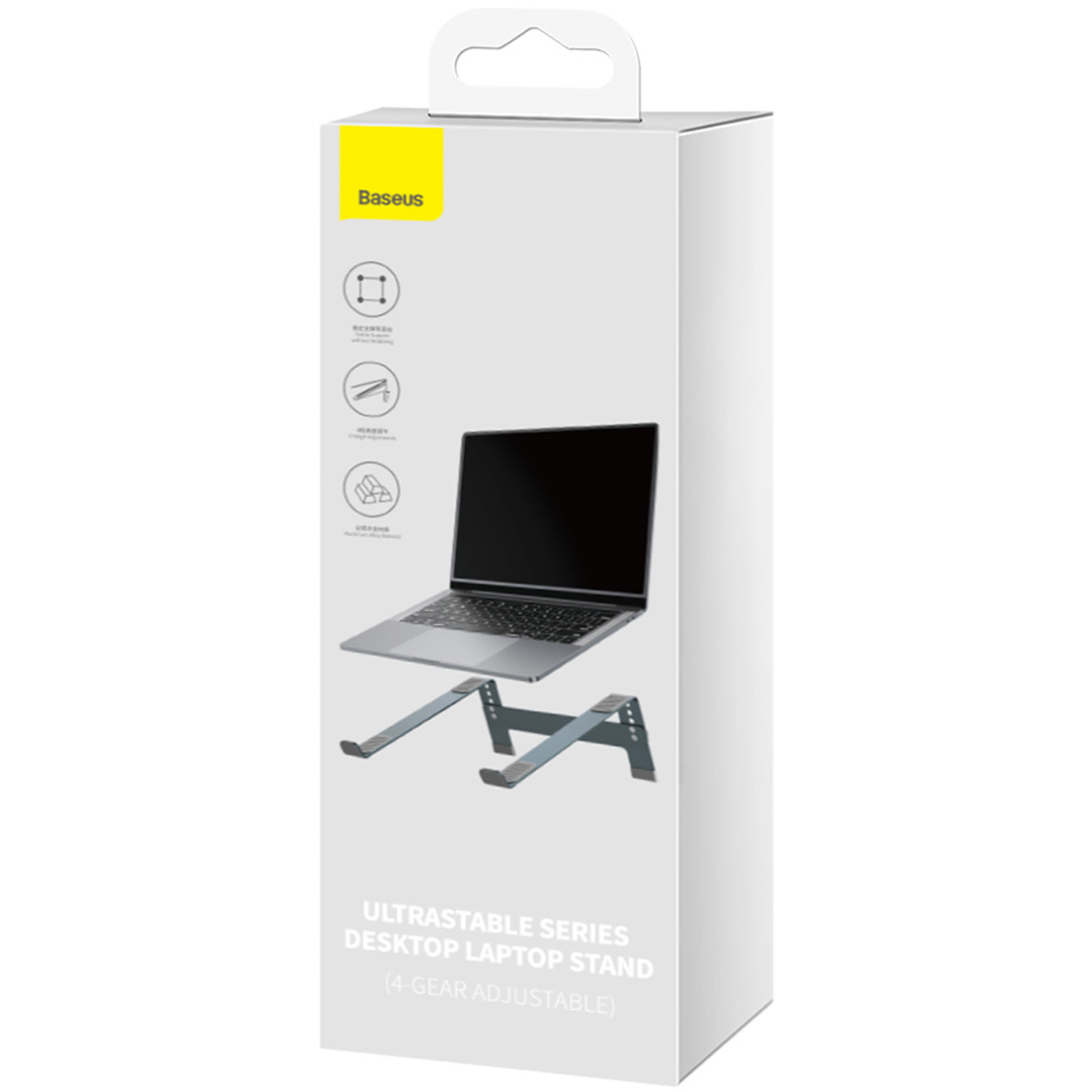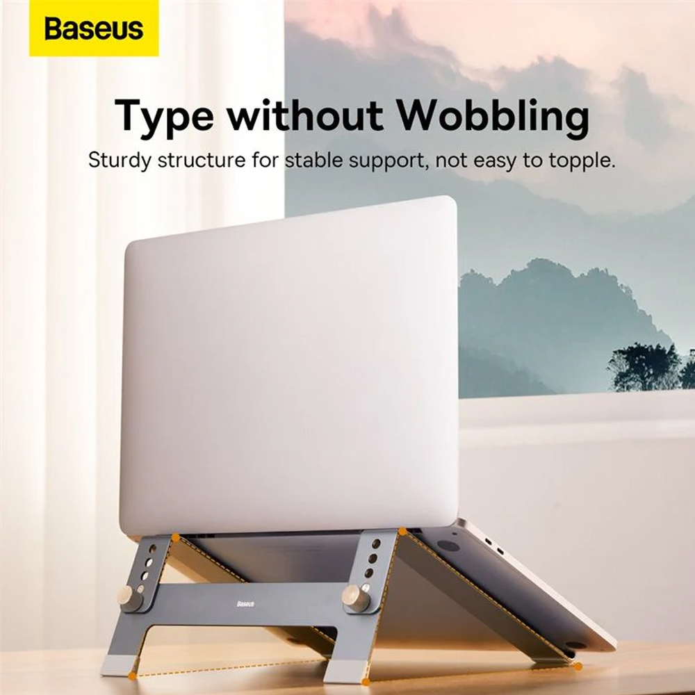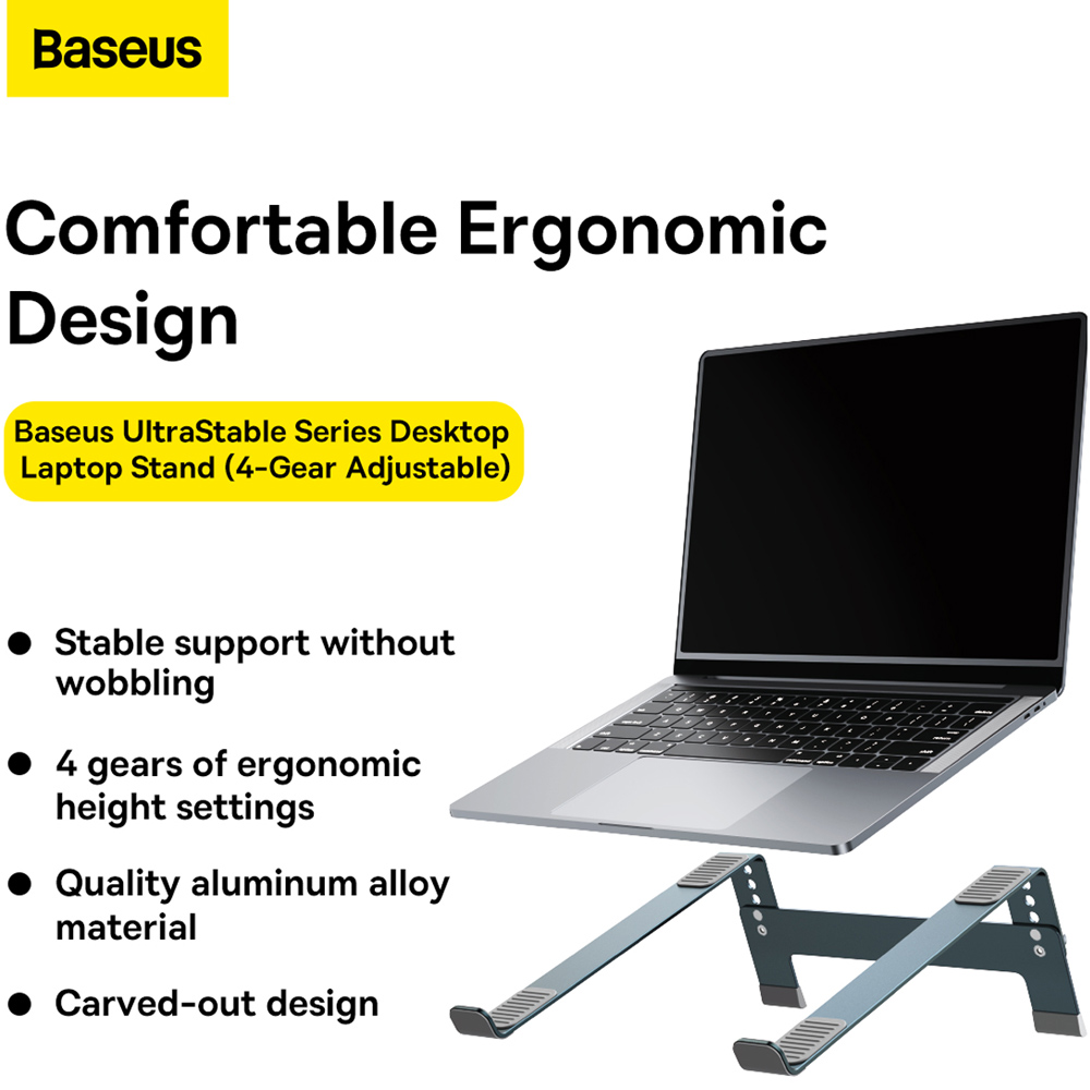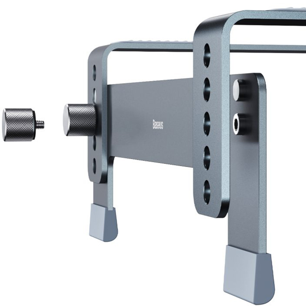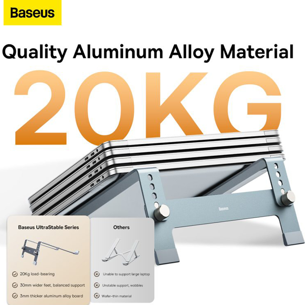 پایه نگهدارنده لپتاپ بیسوس BS-HN005 سری UltraStable با بدنه آلیاژ آلومینیوم، تحمل وزن تا 20 کیلوگرم، تنظیم ارتفاع در 4 سطح، طراحی ارگونومیک و تهویه بهینه؛ مناسب لپتاپ تا 17 اینچ.