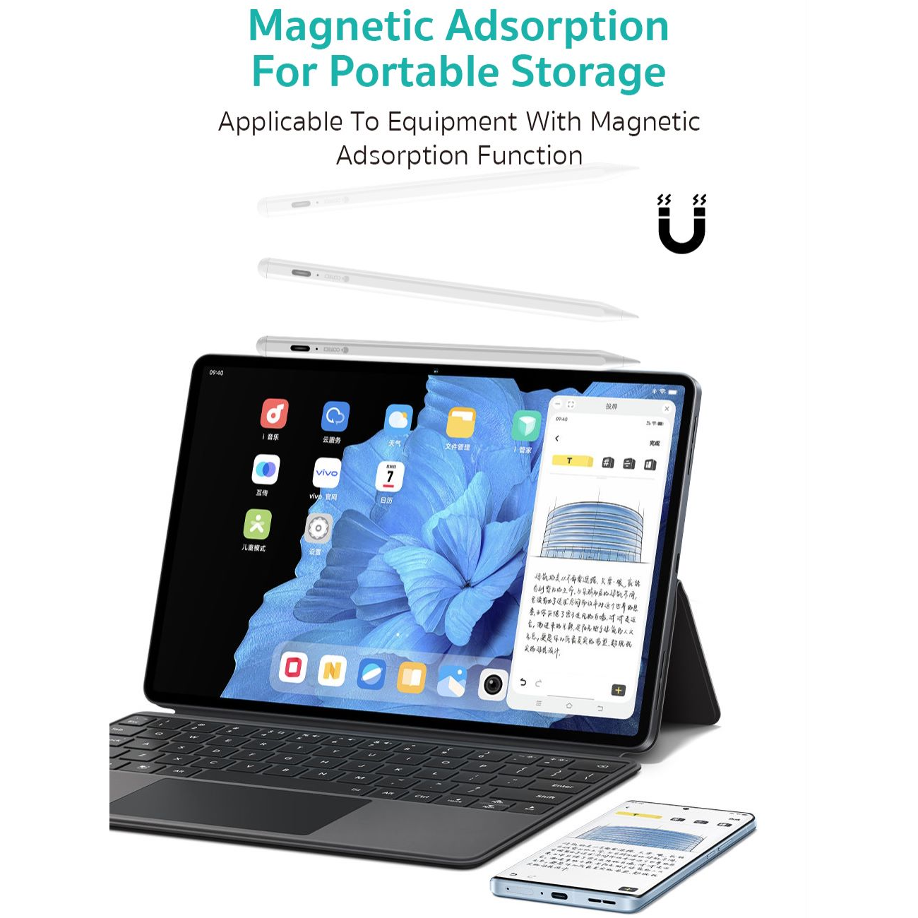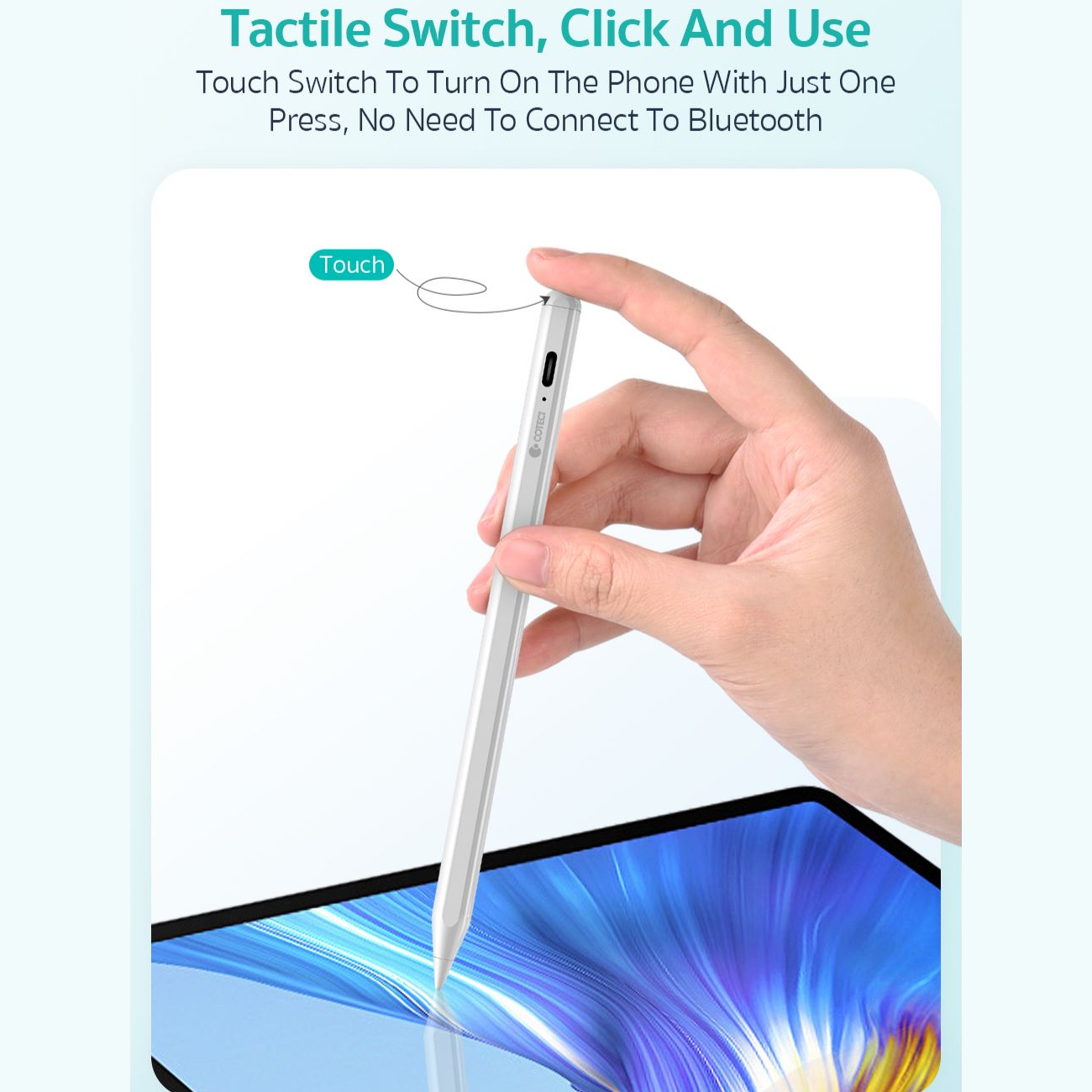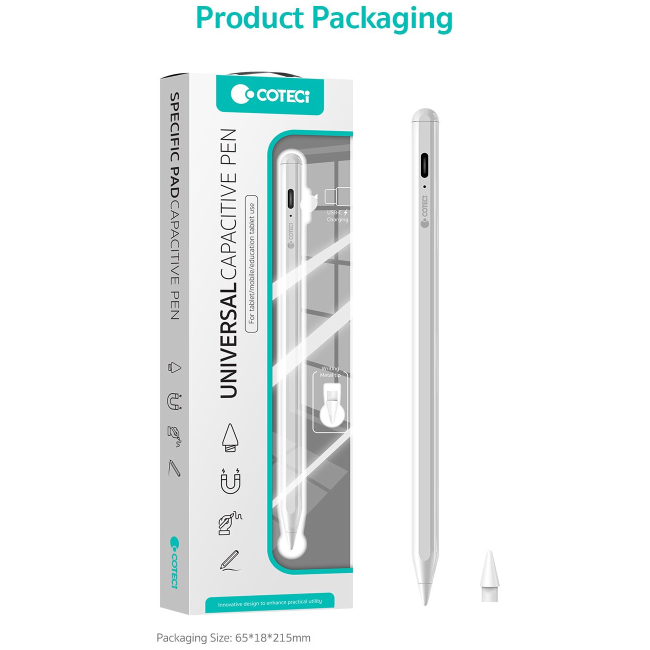 > قلم لمسی شارژی کوتسی iP-020 با بدنه آلومینیومی سبک، نوک بسیار دقیق قابلتعویض، تشخیص زاویه (Tilt)، ضد لمس اشتباه، مگنتی، باتری 130mAh با 8–10 ساعت استفاده و شارژ Type-C؛ مناسب اندروید، iOS و آیپد.