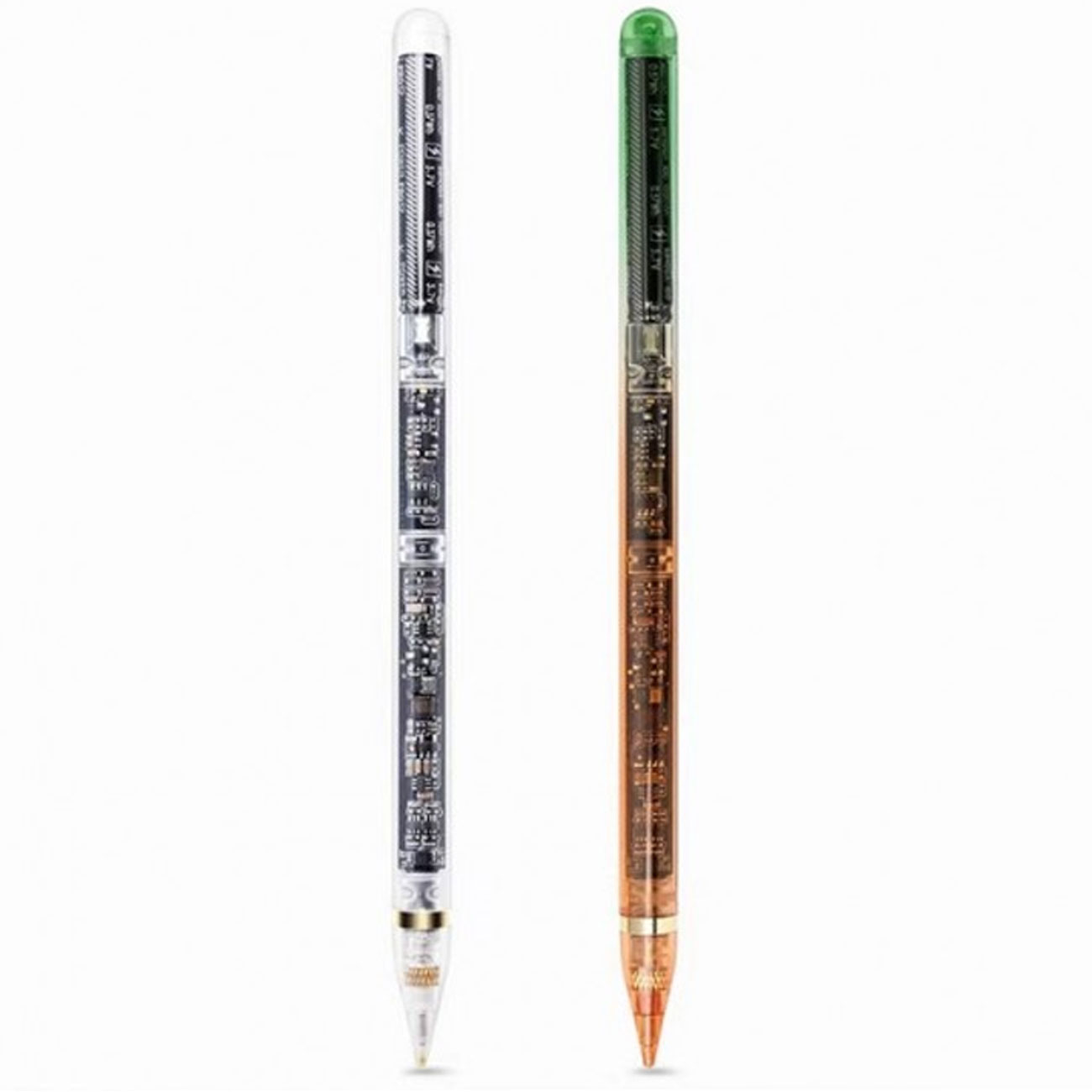 - طراحی شفاف (Transparent / Punk Design) که داخل قلم و مدارها دیده میشن و ظاهر خیلی خاصی روی میز و کنار آیپد بهش میده.