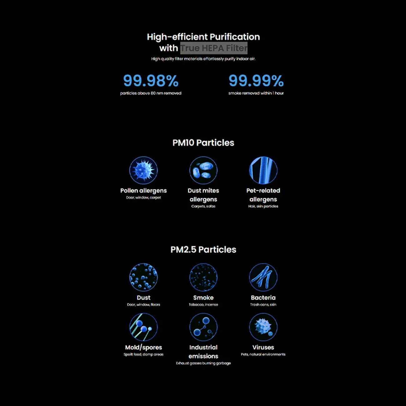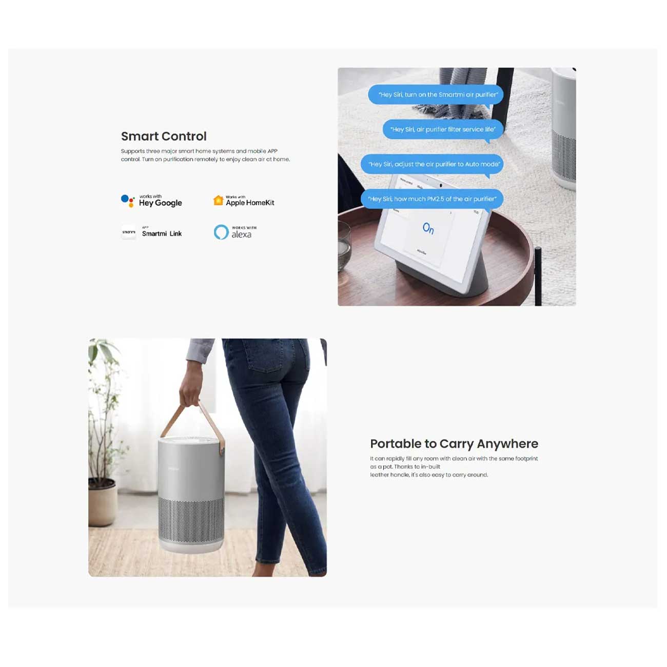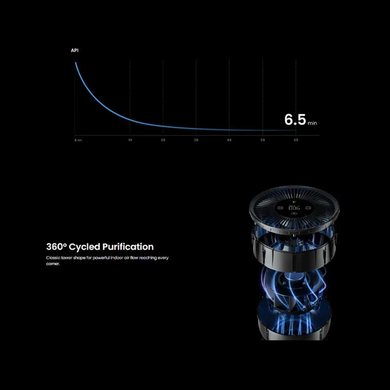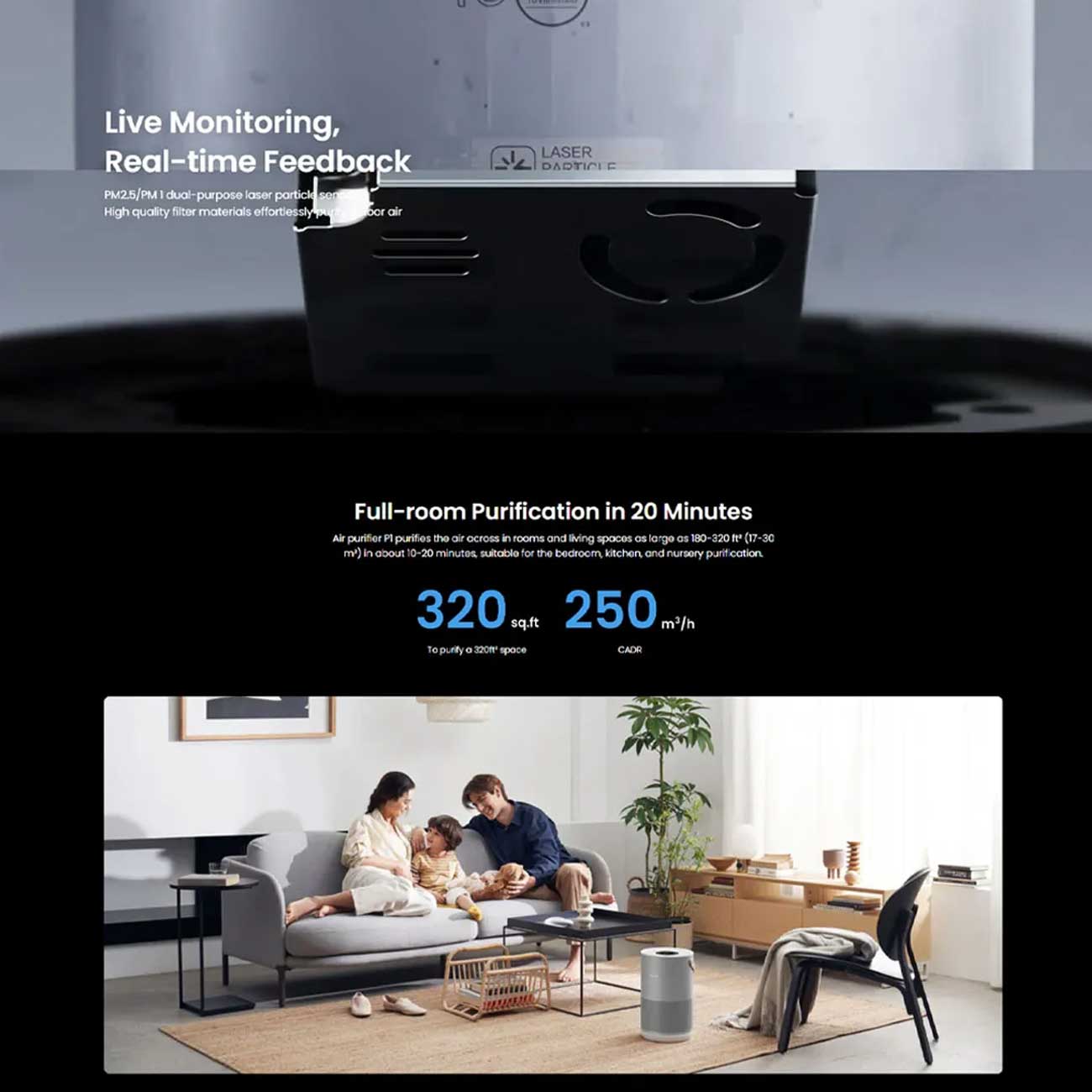 این مدل با فیلتر ترکیبی HEPA + کربن فعال، سنسور لیزری دوگانه PM2.5/PM10، CADR حدود ۲۵۰ مترمکعب بر ساعت و کنترل هوشمند از طریق اپ و دستیارهای صوتی، هوای اتاق رو بهصورت خودکار پایش و تصفیه میکنه.