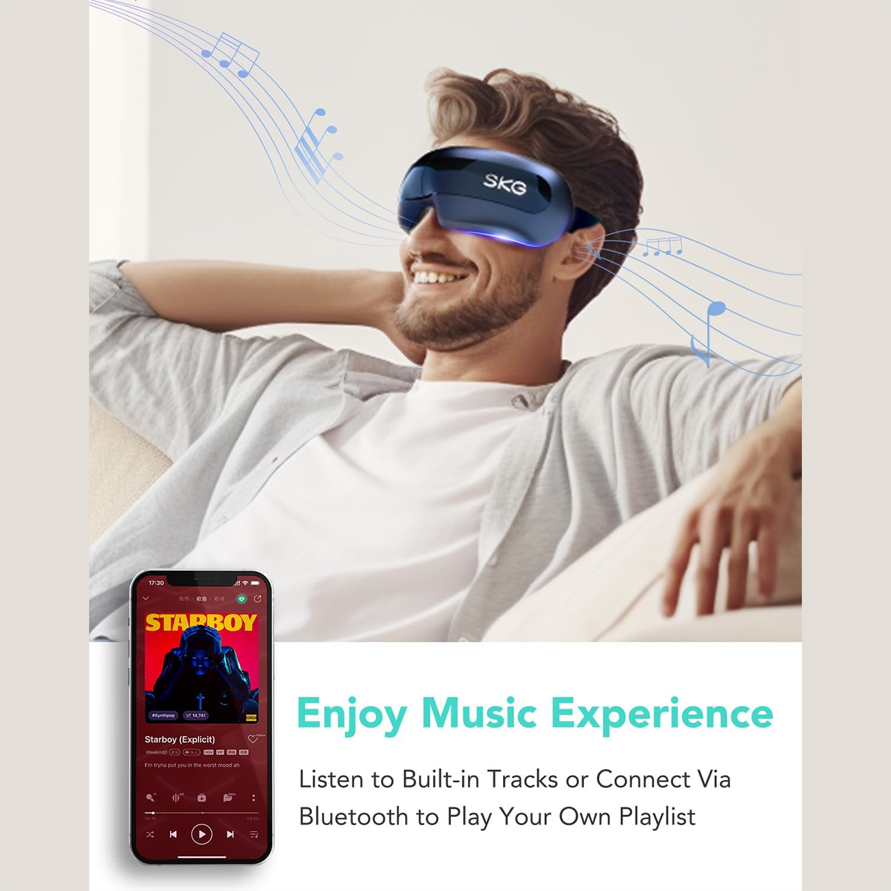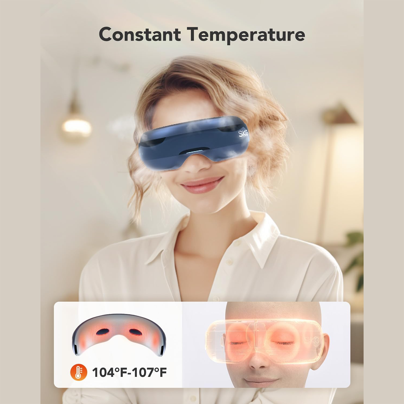 این دستگاه با ترکیب کمپرس گرم، ماساژ فشاری (Air Compression)، لرزش ملایم و موسیقی بلوتوثی، یک پکیج کامل ریلکسیشن دور چشم بهت میده.