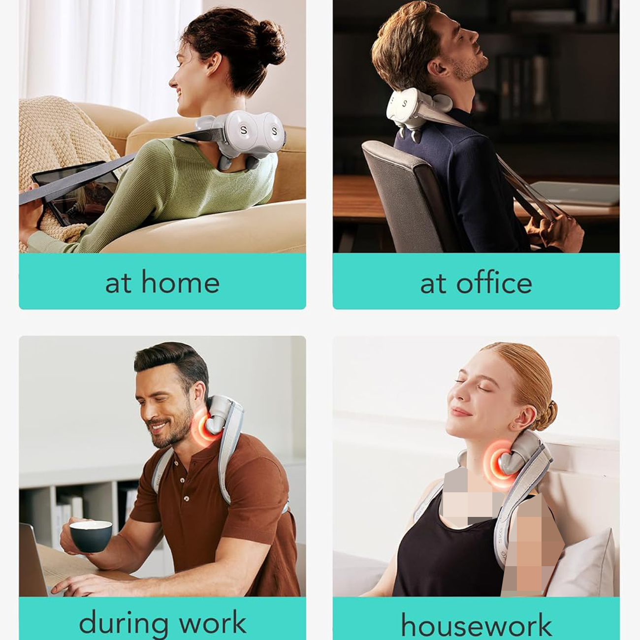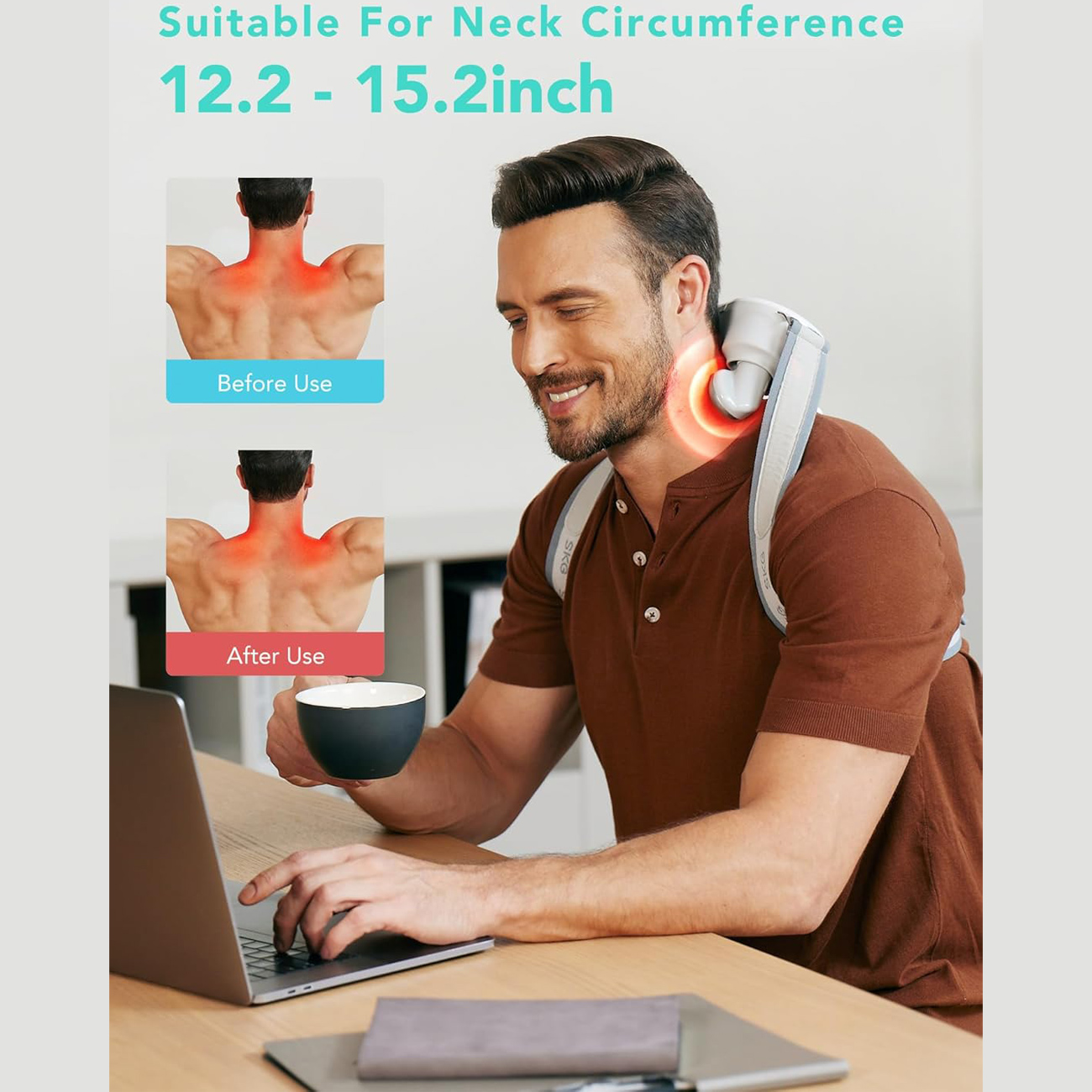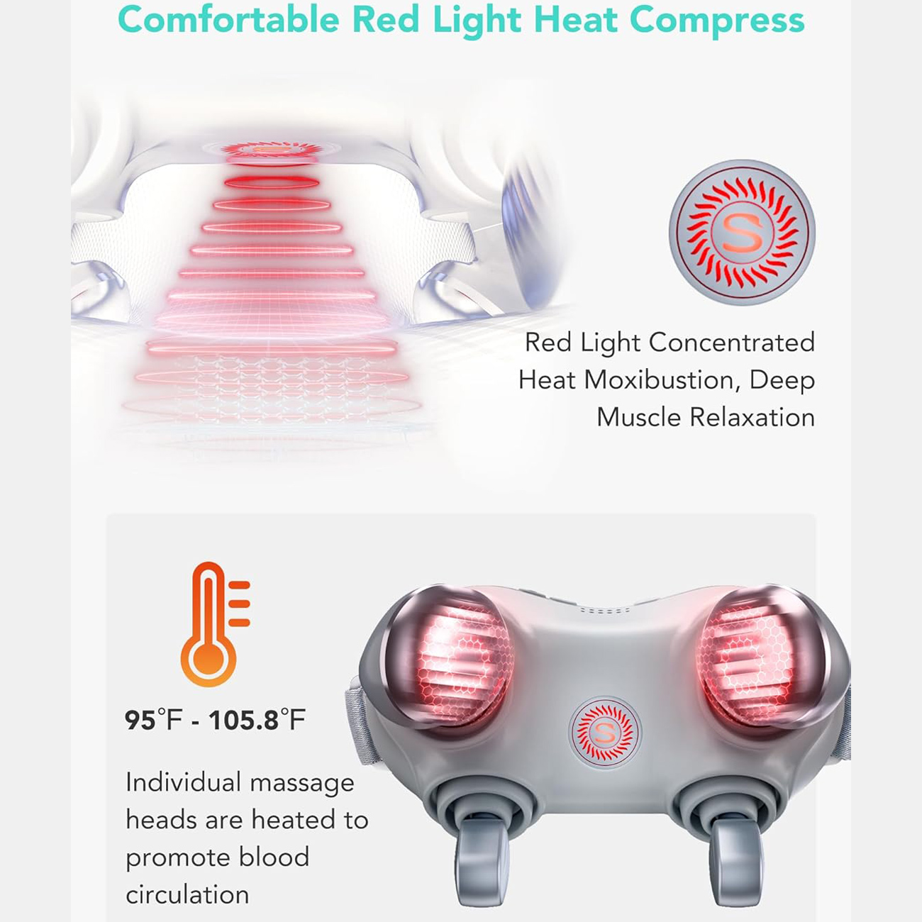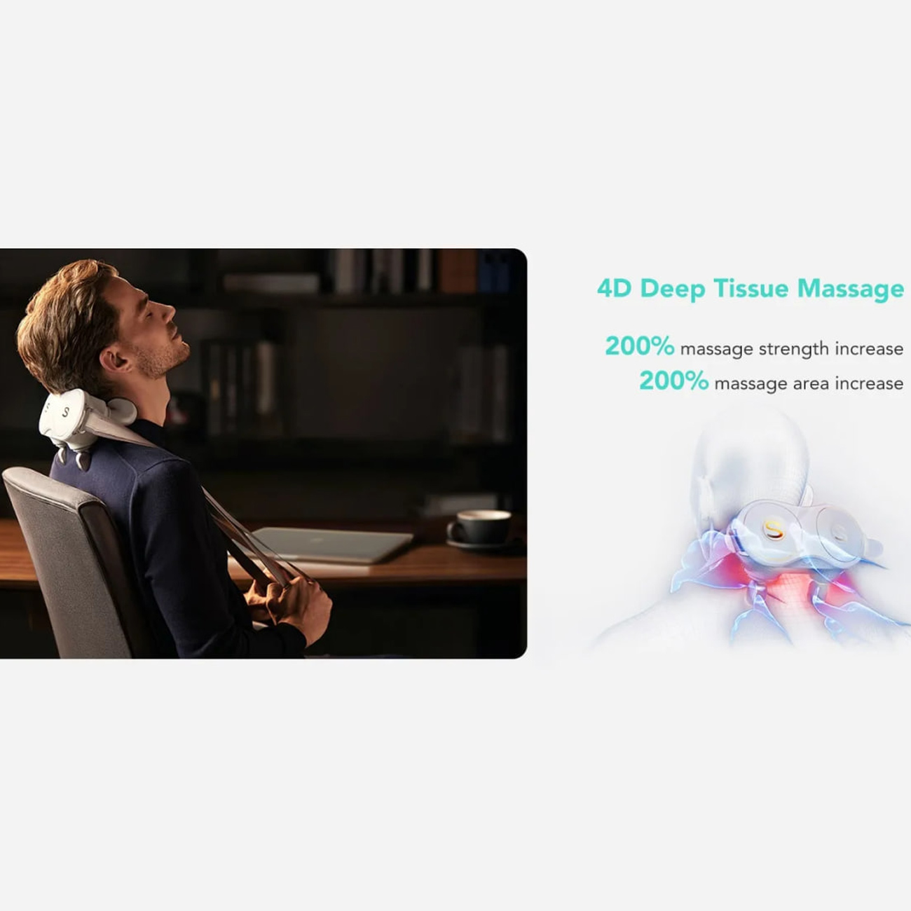 این ماساژور از ویبرهی چندحالته همراه با گرمایش ملایم استفاده میکند تا گرفتگی، خشکی و درد عضلات ناشی از کار زیاد، استفاده طولانی از موبایل و نشستنهای طولانی را کاهش دهد.