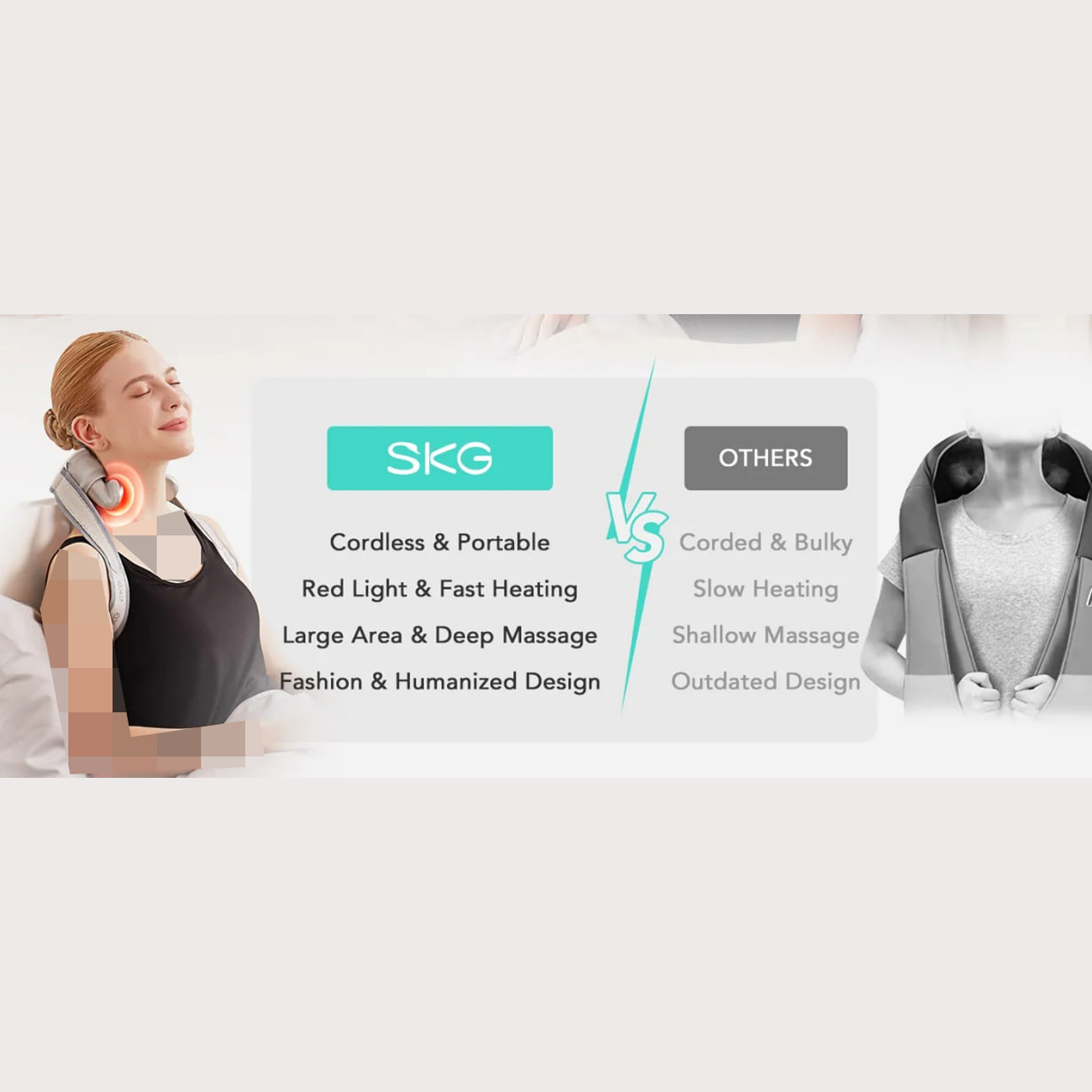 ماساژور گردن و شانه SKG H7 Max با گرمایش ملایم، ویبره چندحالته، طراحی سبک و قابلحمل؛ مناسب رفع خستگی گردن، شانه، پشت و عضلات بالاتنه در خانه، محل کار و سفر.