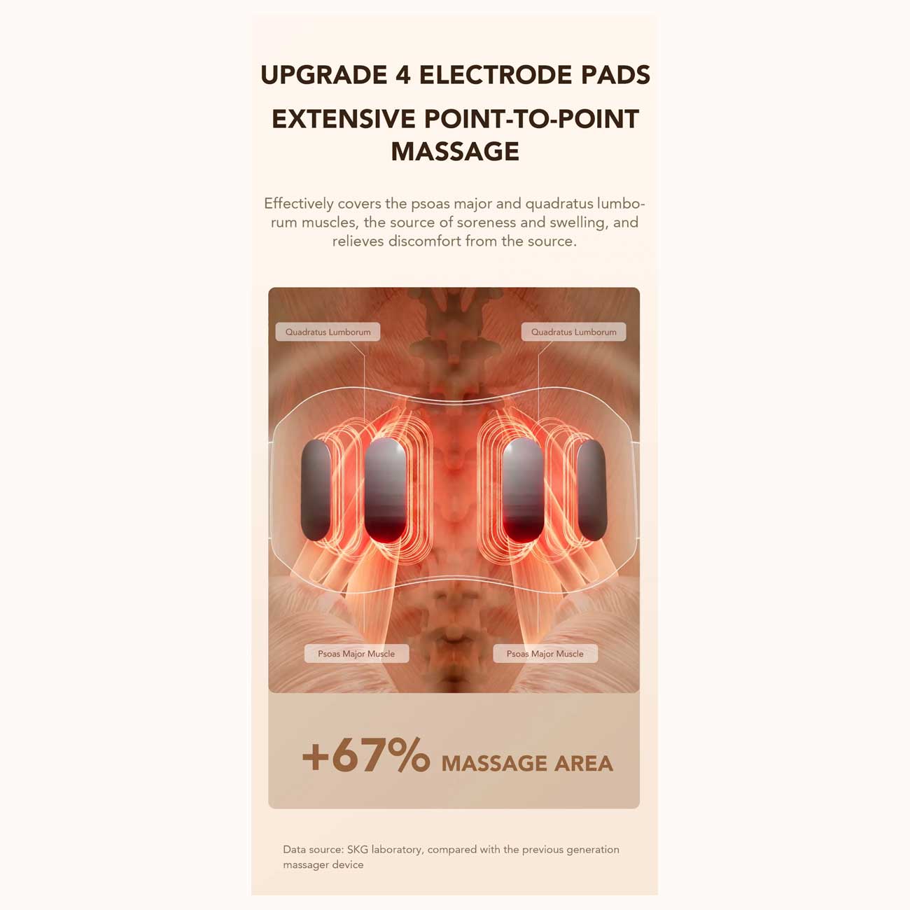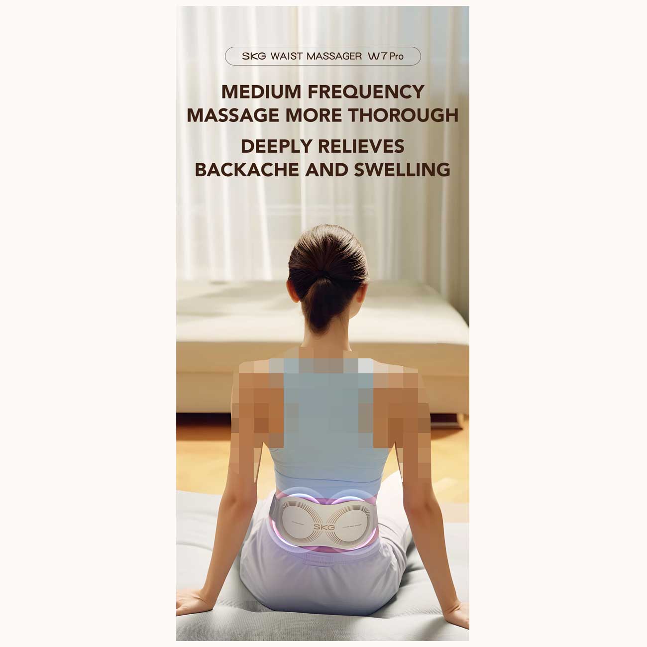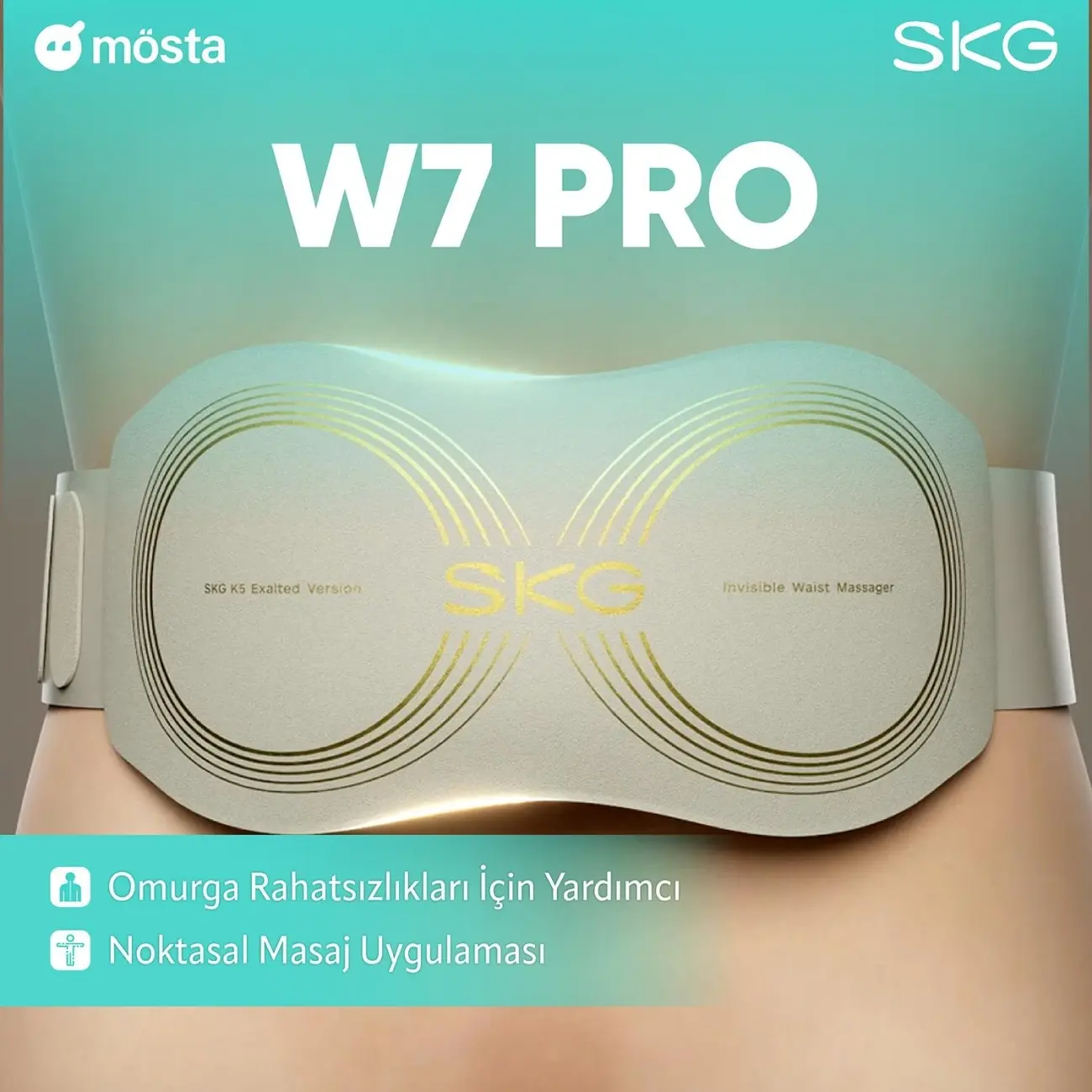 ماساژور کمر شارژی SKG W7 Pro با ویبرهی قوی، گرمایش موضعی، طراحی ارگونومیک و استفاده بیسیم؛ مناسب کاهش خستگی، درد عضلات پایین کمر و استفاده روزمره و مسافرتی.