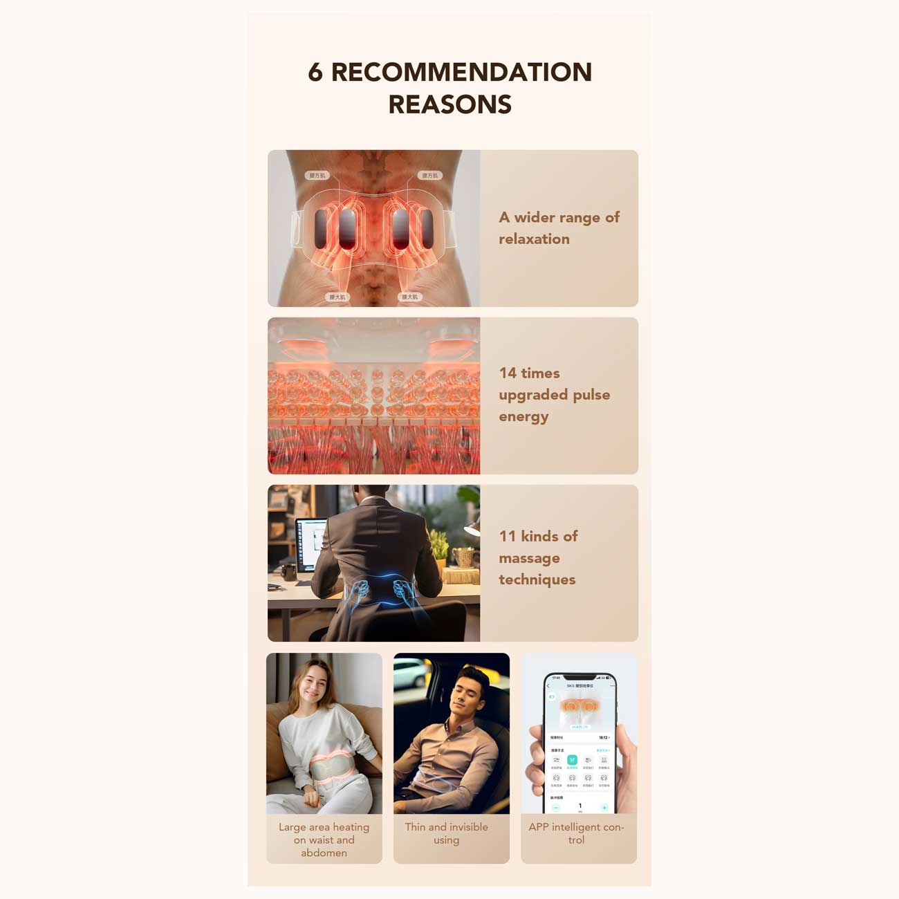 یک دستگاه سبک و قابلحمل است که برای کاهش درد، خستگی و گرفتگی عضلات ناحیهی کمر طراحی شده. این ماساژور با ویبرهی چندحالته و گرمایش ملایم کمک میکند جریان خون بهتر شود و عضلات پایین کمر سریعتر ریلکس کنند.
