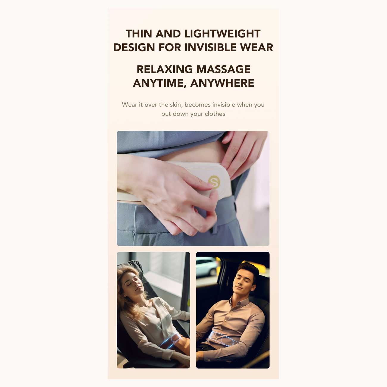 طراحی منحنی و ارگونومیک بدنه باعث میشود دستگاه بهخوبی روی کمر بنشیند و هنگام کار، جابهجا نشود. استفاده از آن کاملاً بیسیم است و باتری قابل شارژ باعث میشود بتوانی در خانه، محل کار، رانندگی یا حتی سفر از آن استفاده کنی.