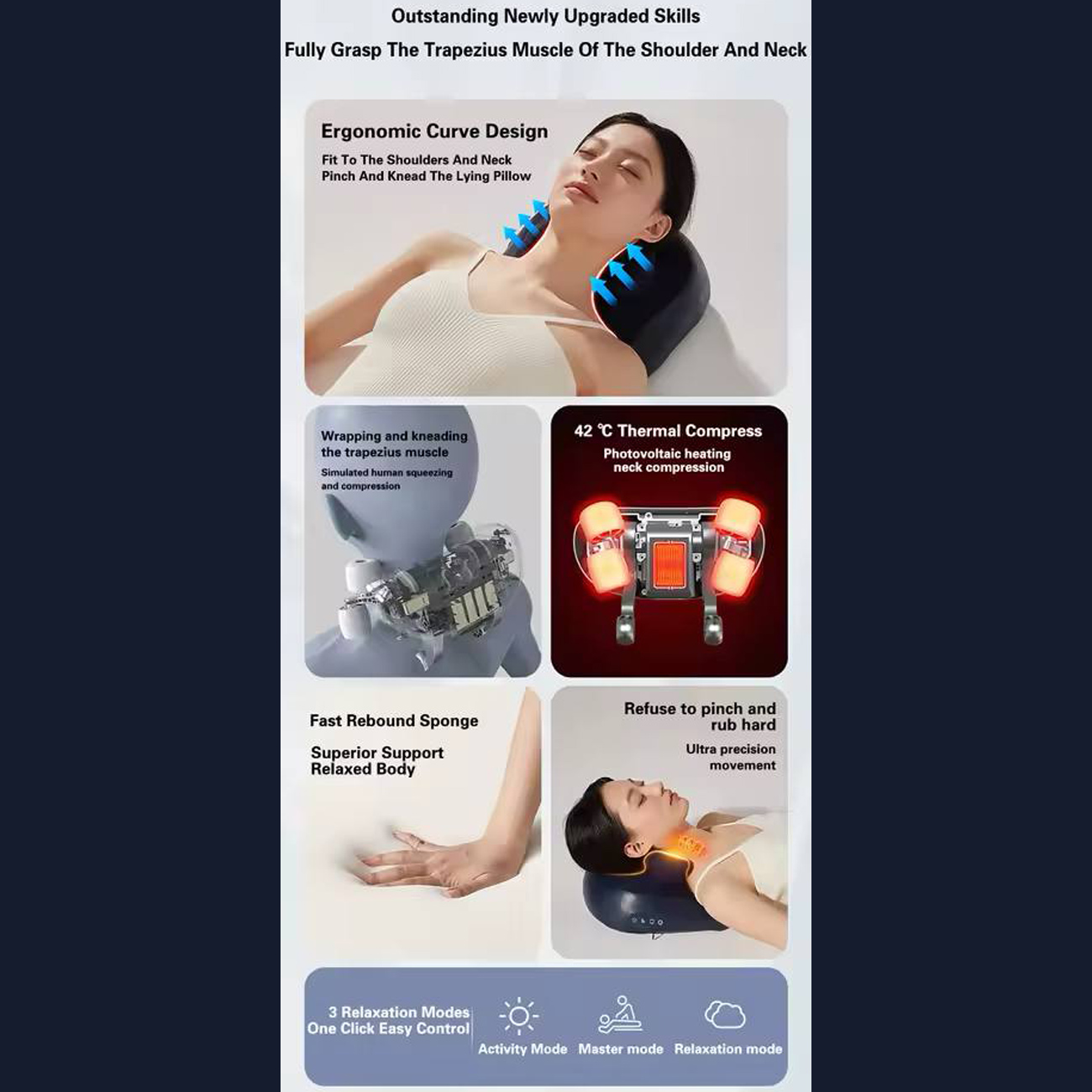 یک ماساژور کوسنی هوشمند است که برای رفع خستگی و گرفتگی عضلات در گردن، کمر، شانه، پا و حتی شکم طراحی شده.