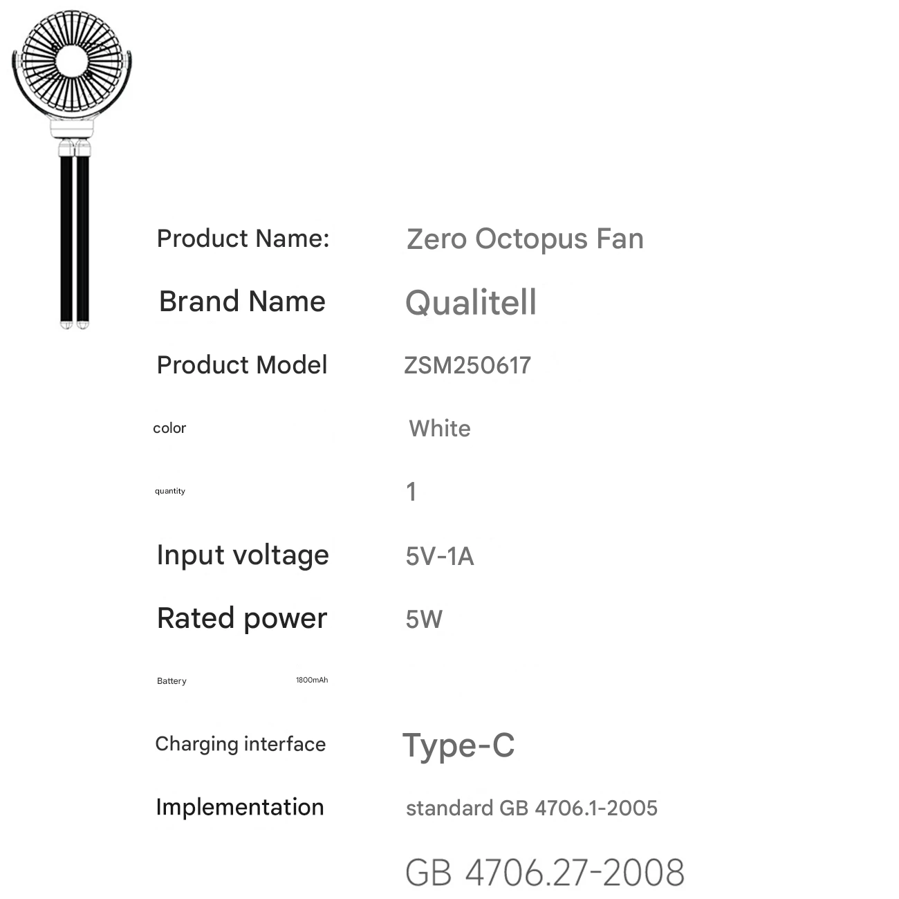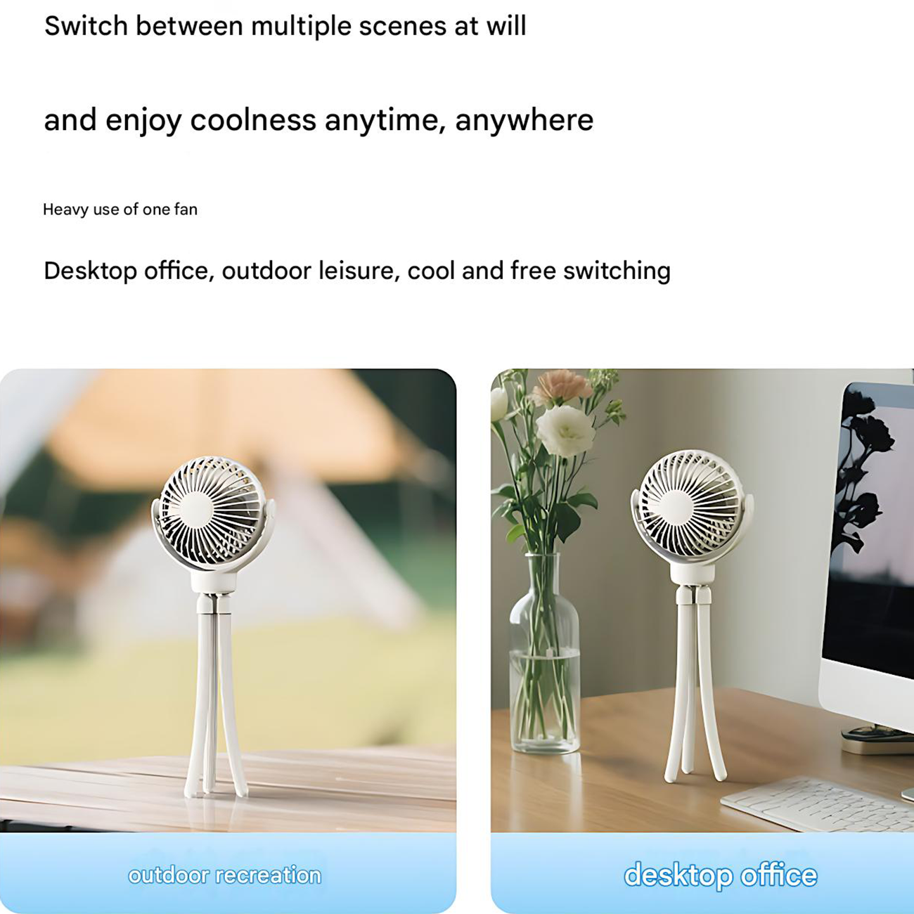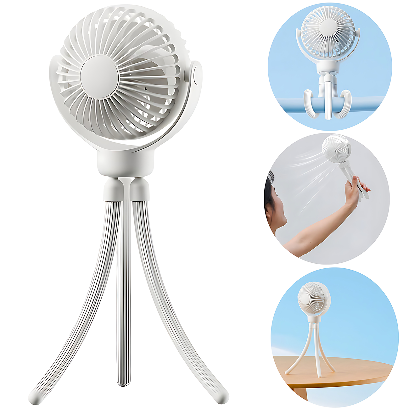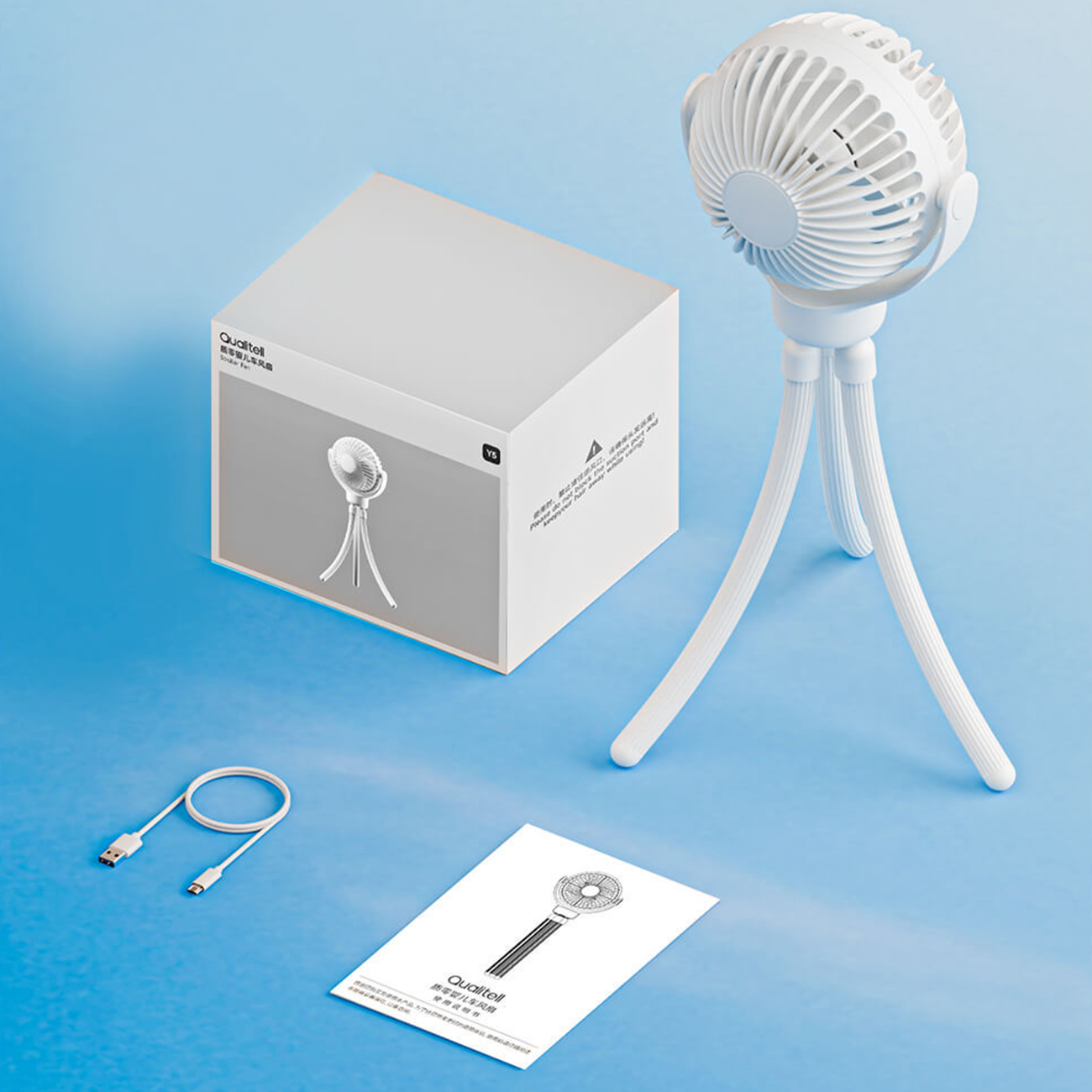 پنکه شارژی رومیزی، دستی و آویز قابل چرخش کوالیتل Qualitell Y5 ZSM250617 یک پنکهی کوچک و هوشمند با طراحی اختاپوسی و ۳۶۰ درجه است که میتونی هم بهصورت رومیزی، هم دستی و هم با پایهی منعطفش بهصورت آویز استفادهاش کنی.