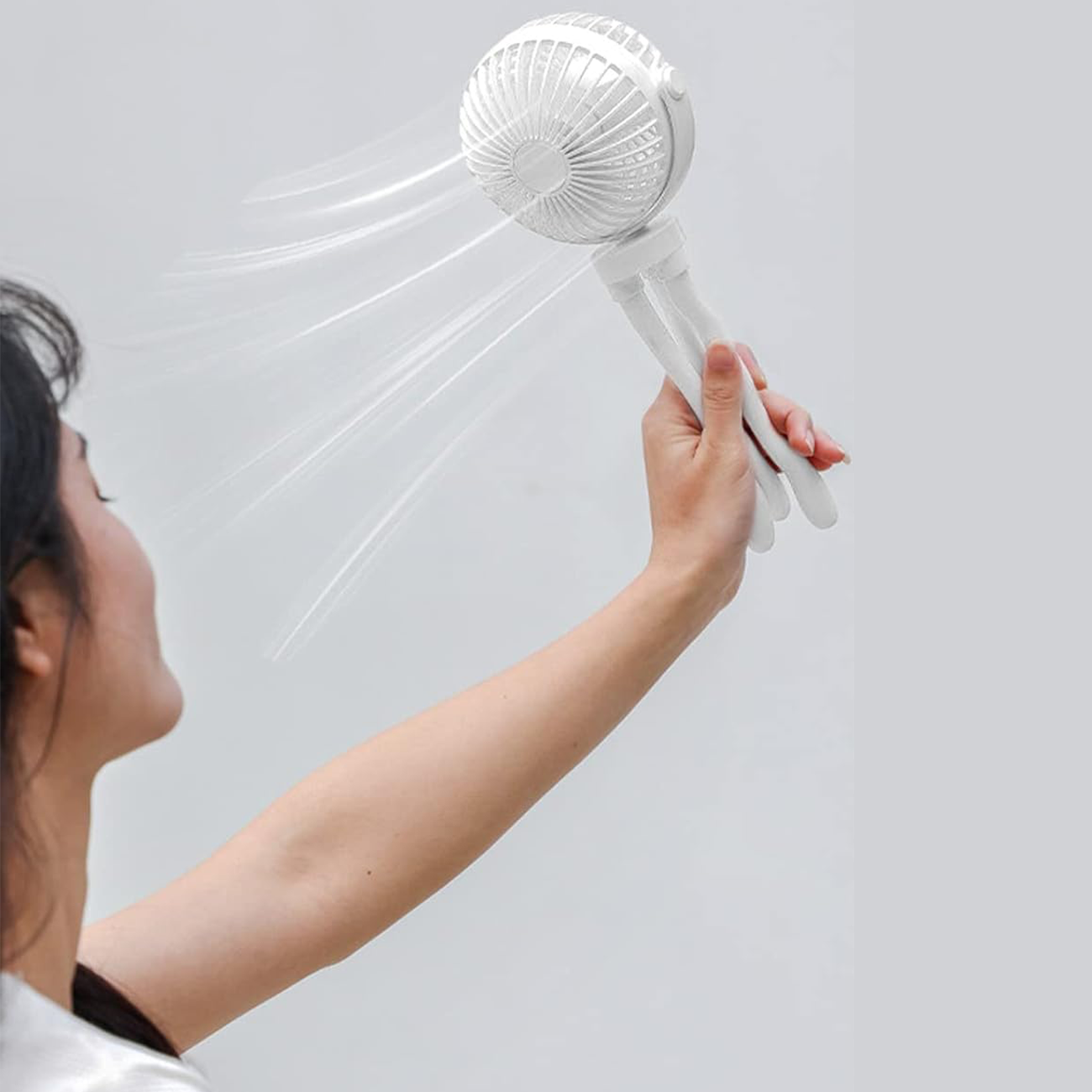 پنکه شارژی رومیزی، دستی و آویز قابل چرخش کوالیتل Qualitell Y5 با طراحی اختاپوسی ۳۶۰ درجه، سه سرعت باد، باتری 1800mAh، شارژ Type-C و نور LED؛ مناسب خانه، خودرو، سفر و کنار تخت.