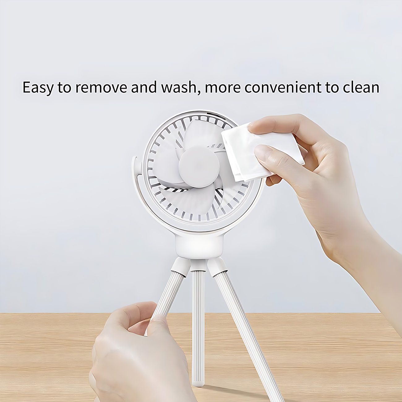 اگر دنبال یک پنکهی شارژی هستی که هم روی میز کار و کنار تخت به کارت بیاد، هم روی کالسکه، میله تخت یا داخل ماشین آویزون بشه و در عین حال کمصدا و جمعوجور باشه،