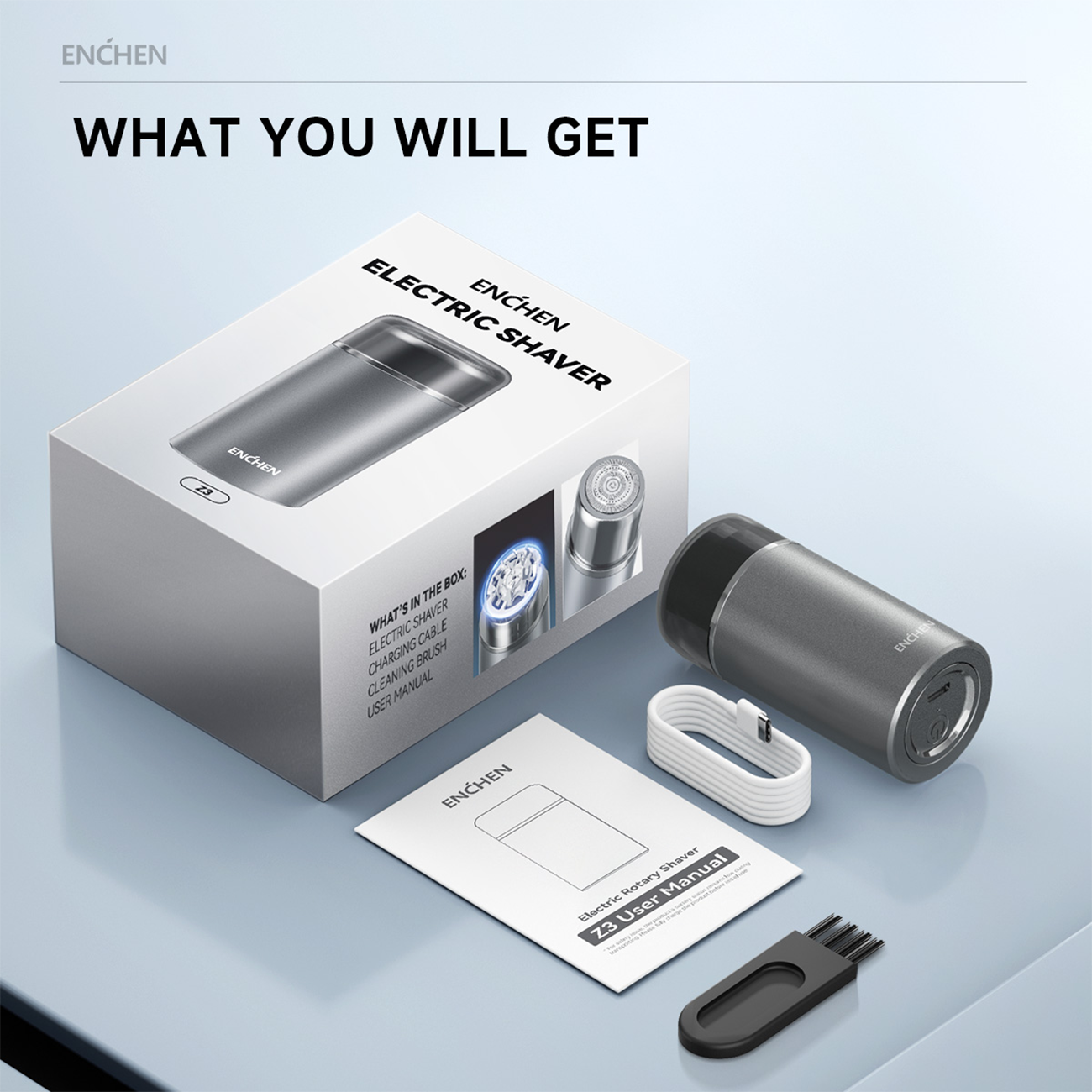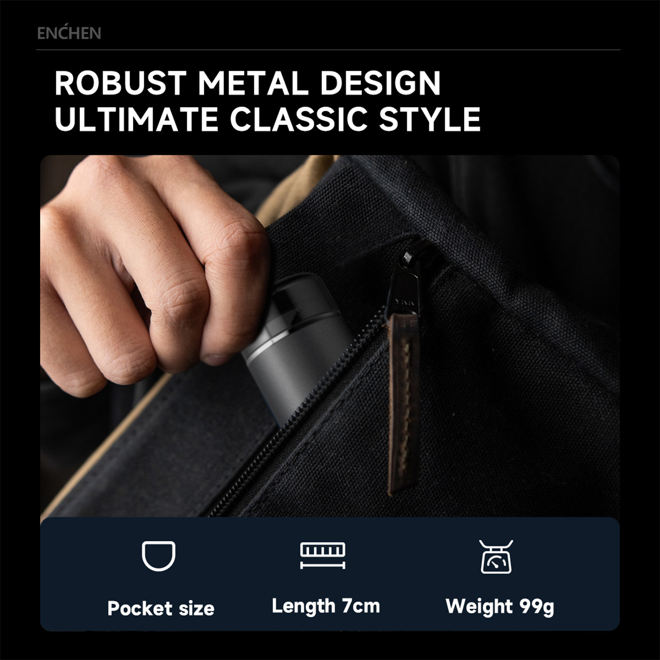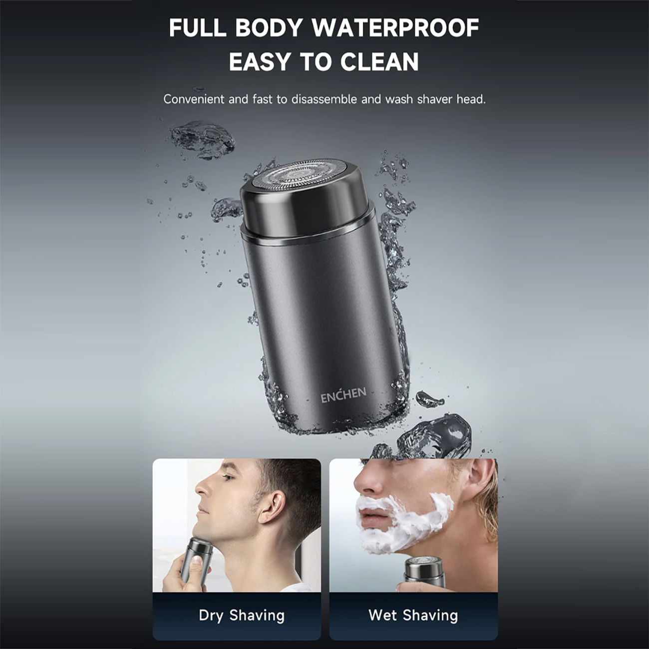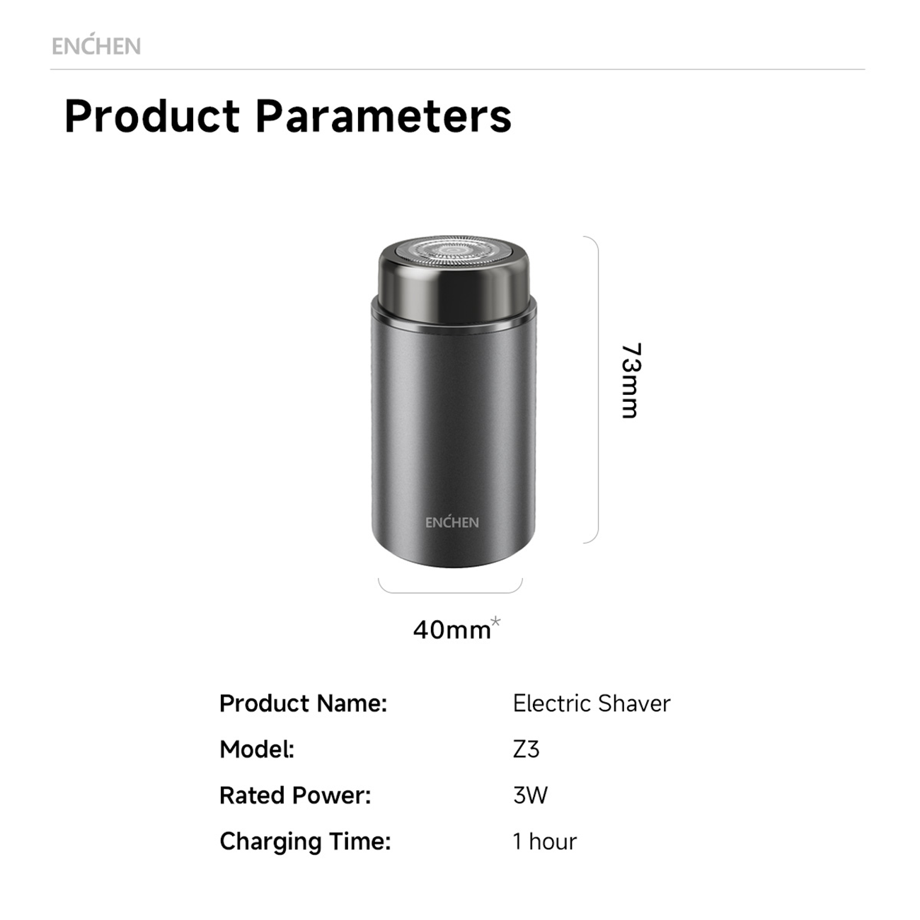 مینی ریشتراش شارژی مسافرتی ضدآب انچن شیائومی ENCHEN Z3 با طراحی فلزی جمعوجور، موتور پرقدرت، تیغه استیل خودتیزشونده، استاندارد ضدآب IPX6 و شارژ Type-C؛ مناسب استفاده روزمره و سفر.