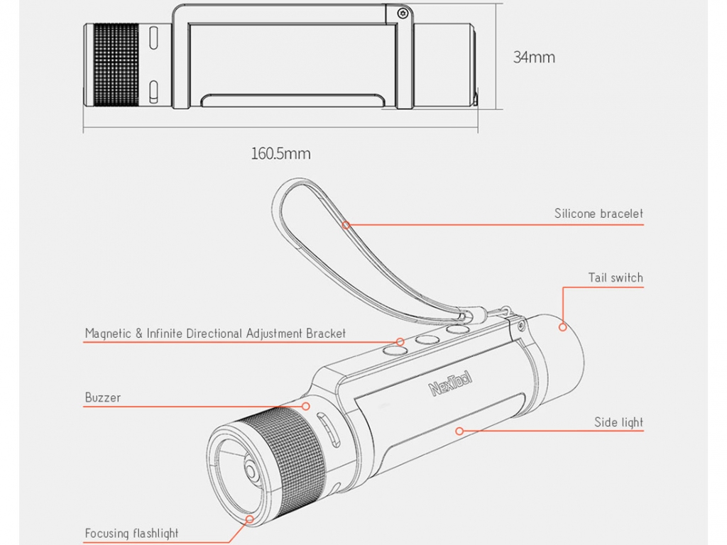 - با نگهداشتن دکمه پشت چراغ به مدت حدود ۲٫۵ ثانیه، آژیر هشدار ۹۰ تا ۱۱۰ دسیبل فعال میشود؛ برای کمکخواستن یا دورکردن حیوانات و جلب توجه در موقعیت خطر.