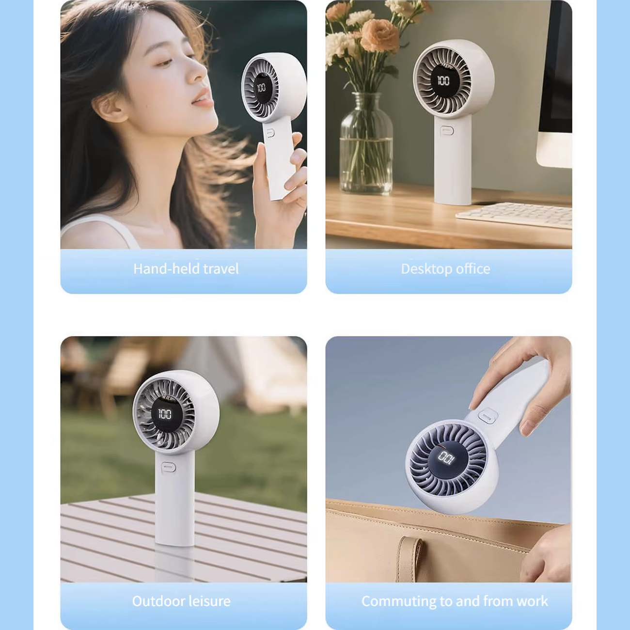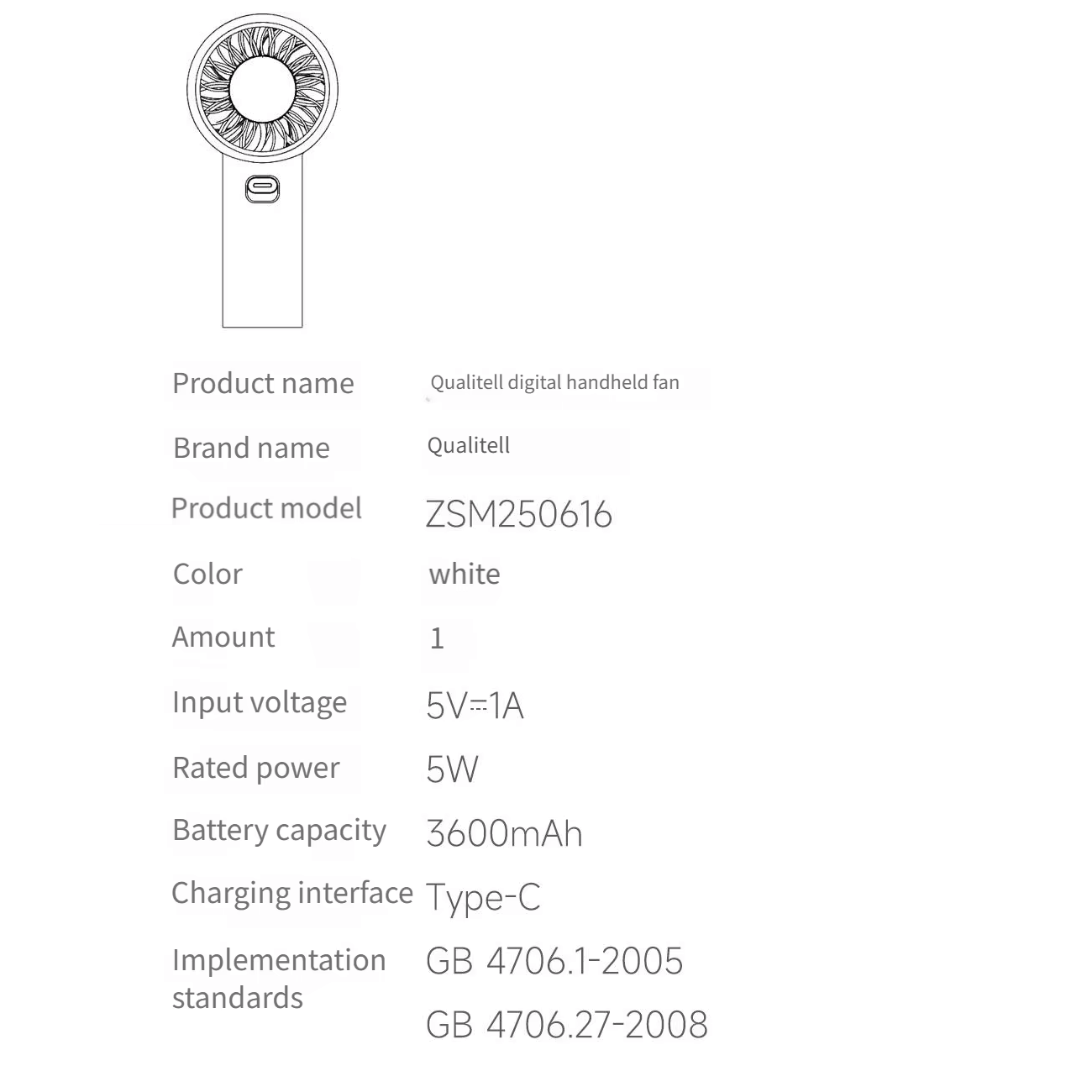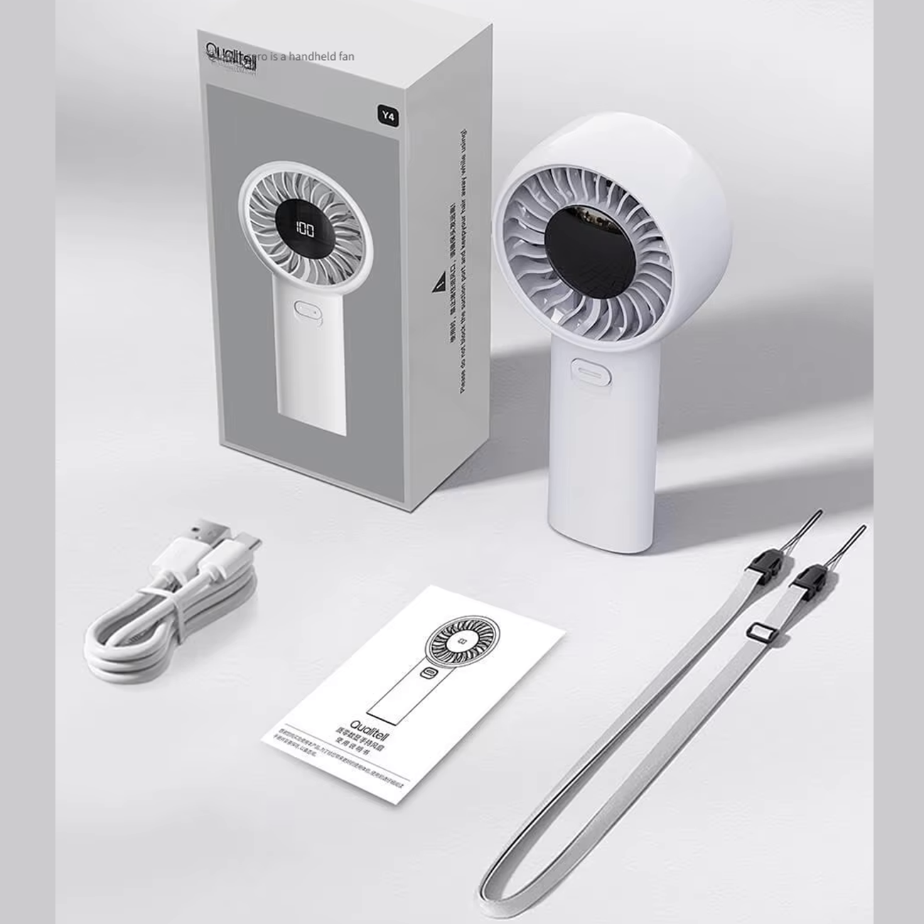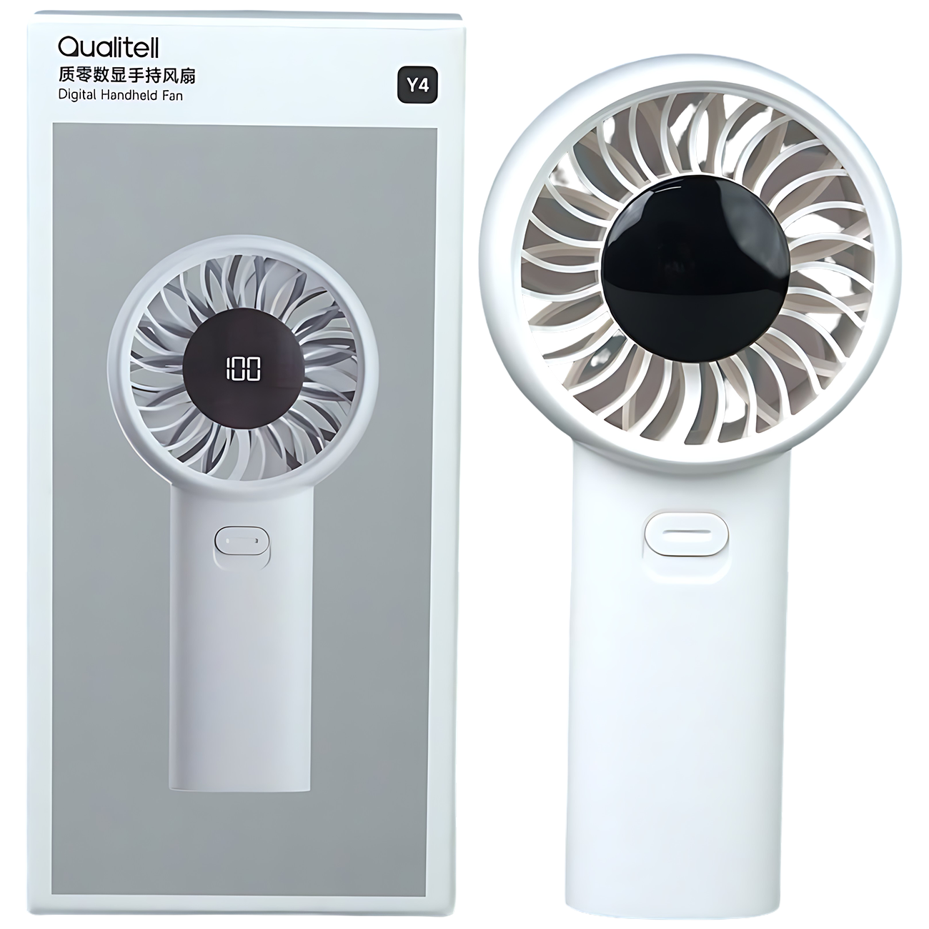 پنکه شارژی دستی دیجیتالی کوالیتل Qualitell Y4 با نمایشگر دیجیتال، چند سطح سرعت باد، باتری شارژی، طراحی سبک و قابل حمل و امکان استفاده دستی و رومیزی؛ مناسب خانه، محل کار، سفر و مترو.