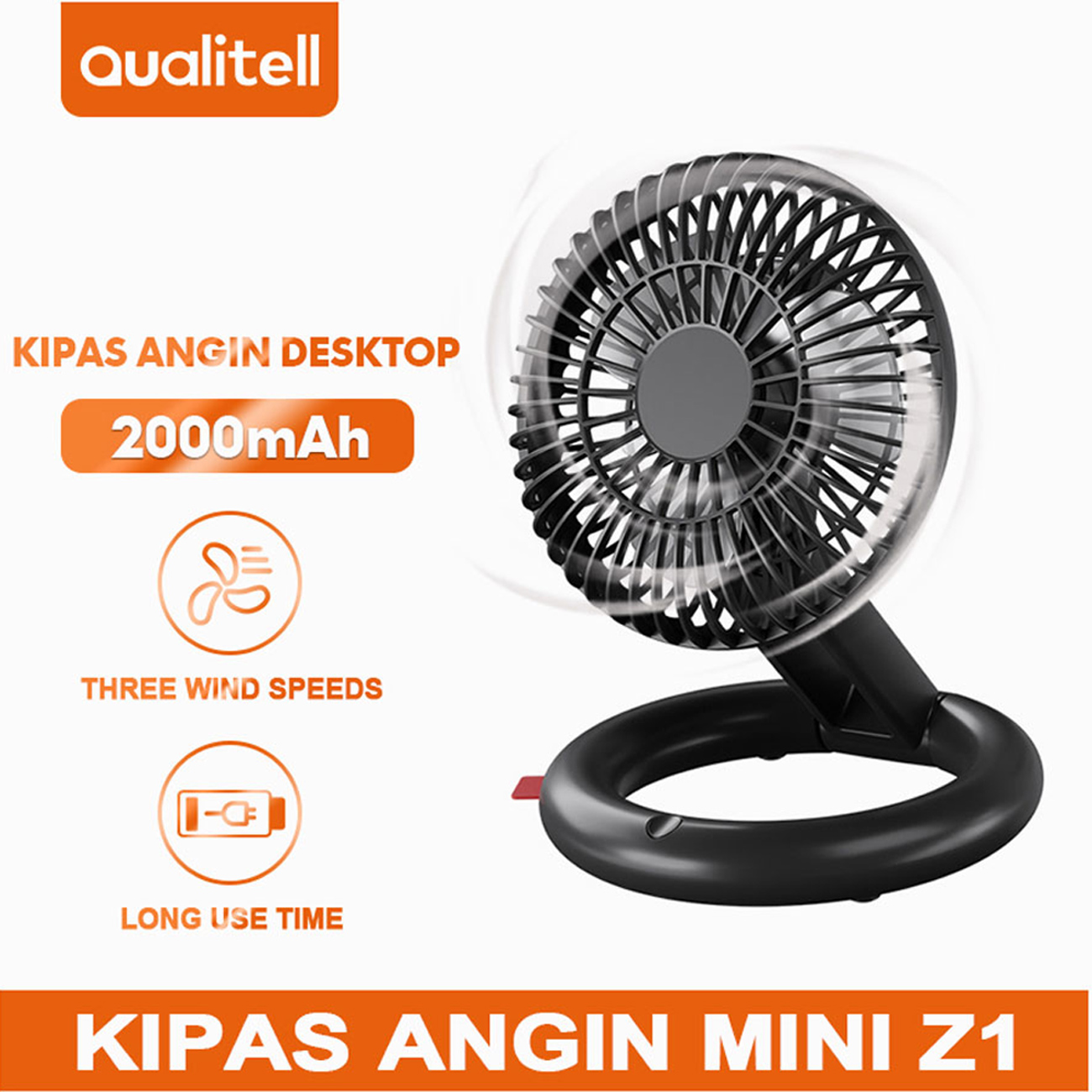 پنکه شارژی چند منظوره قابل حمل کوالیتل Z1 با طراحی تاشو رومیزی و دستی، سه سرعت باد، باتری 2000mAh، شارژ Type-C و کارکرد کمصدا؛ مناسب خانه، محل کار، سفر و کنار تخت.