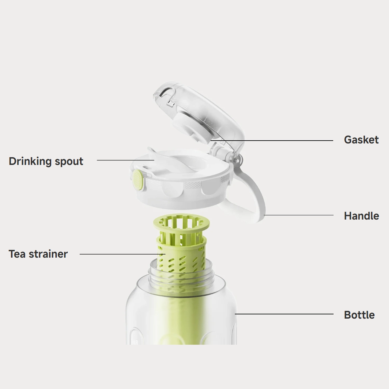 بدنه قمقمه از پلاستیک Tritan (تریتان) گرید غذایی و بدون BPA ساخته شده؛ همون جنسی که برای شیشه شیر بچه و بطریهای باکیفیت استفاده میشه: