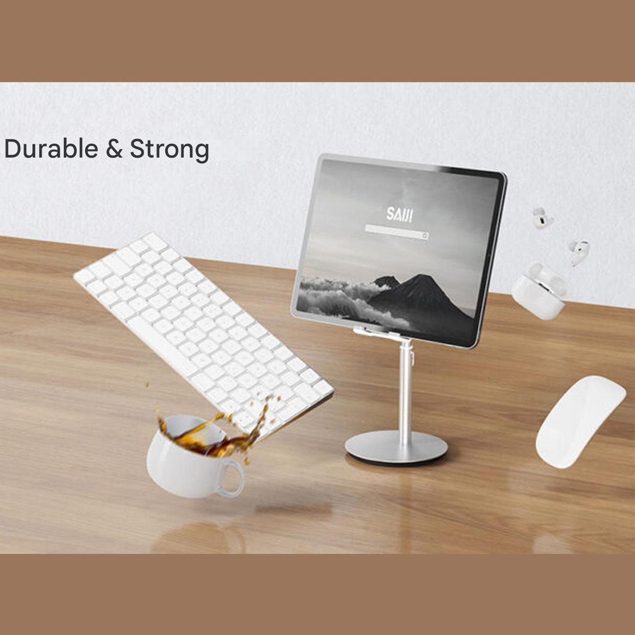 هولدر رومیزی گوشی و تبلت سایجی SAIJI S1 PLUS با بدنه فلزی، قابلیت تنظیم ارتفاع و زاویه، مناسب دستگاههای ۴ تا ۱۵ اینچ، لبههای ضدلغزش، مناسب میز کار، مطالعه و کلاس آنلاین.