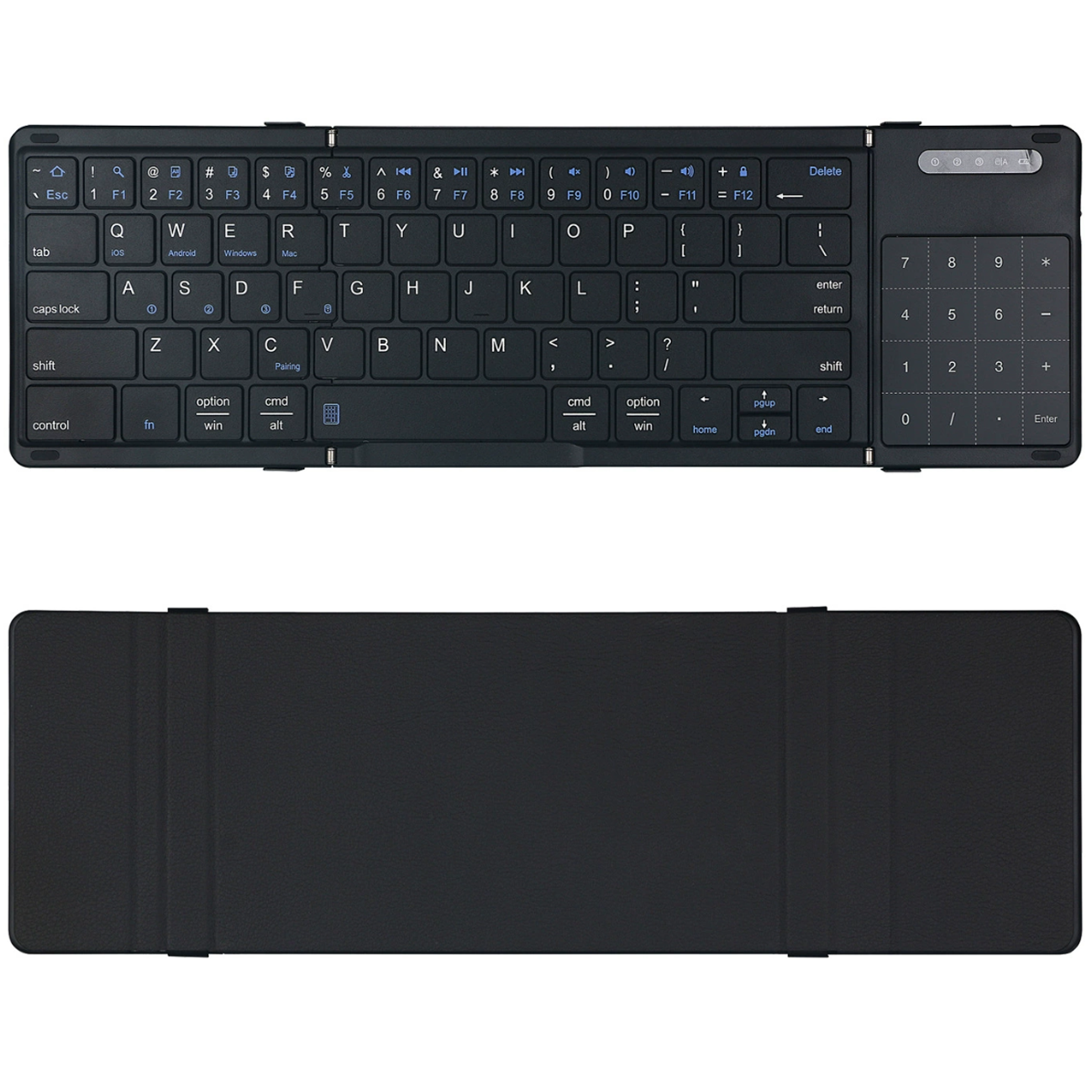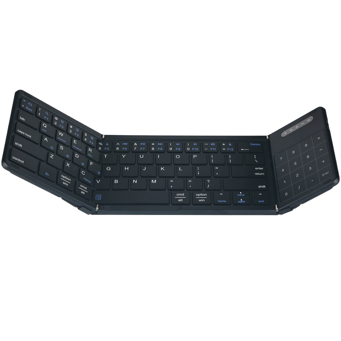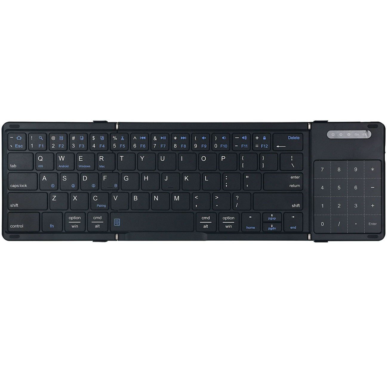 کیبورد بیسیم تاشو شارژی با تاچپد، اتصال بلوتوث، طراحی تاشو و جمعوجور، مناسب لپتاپ، تبلت و موبایل؛ ایدهآل برای سفر، کار بیرون از خانه و تایپ راحت در هرجا.