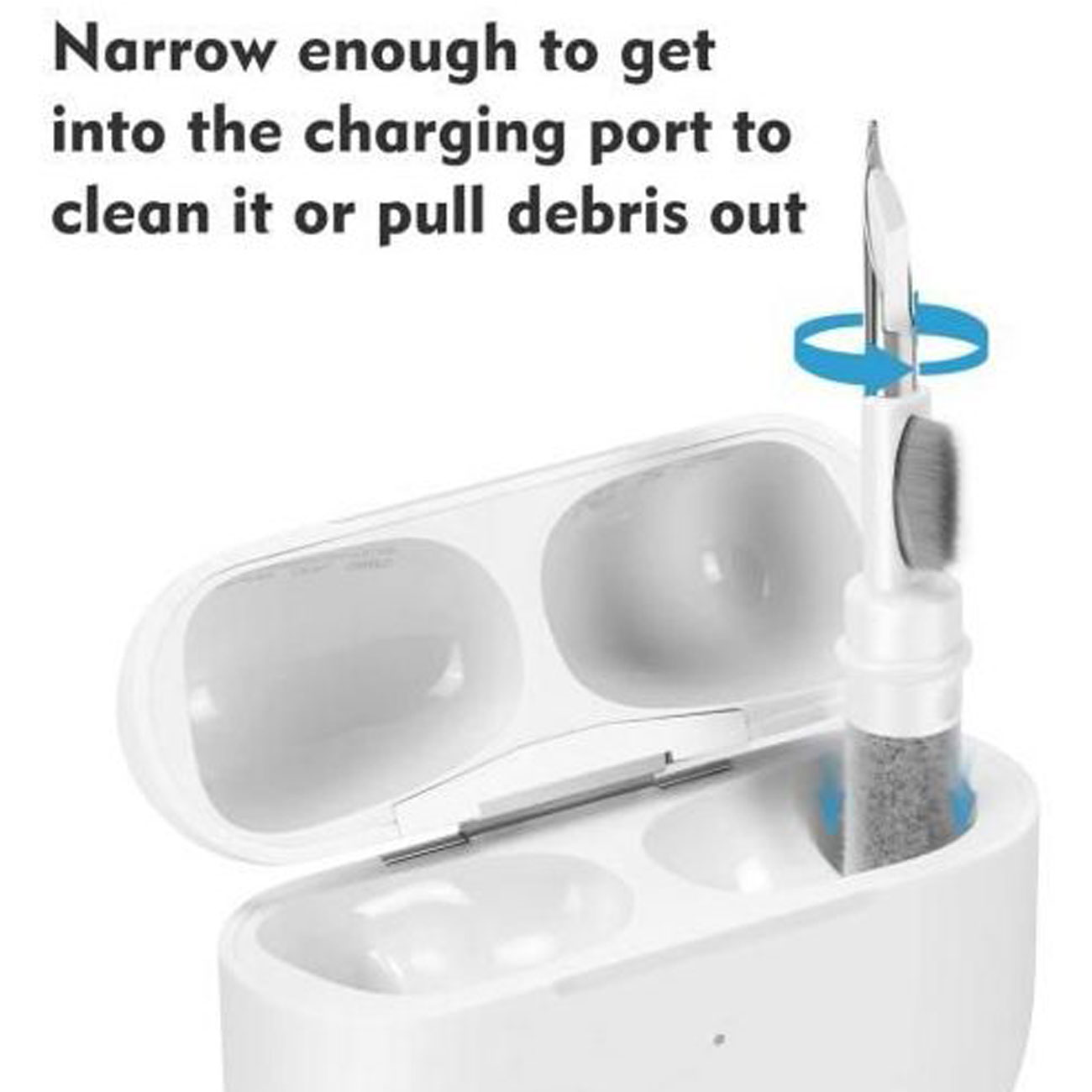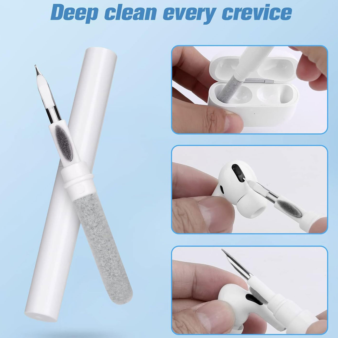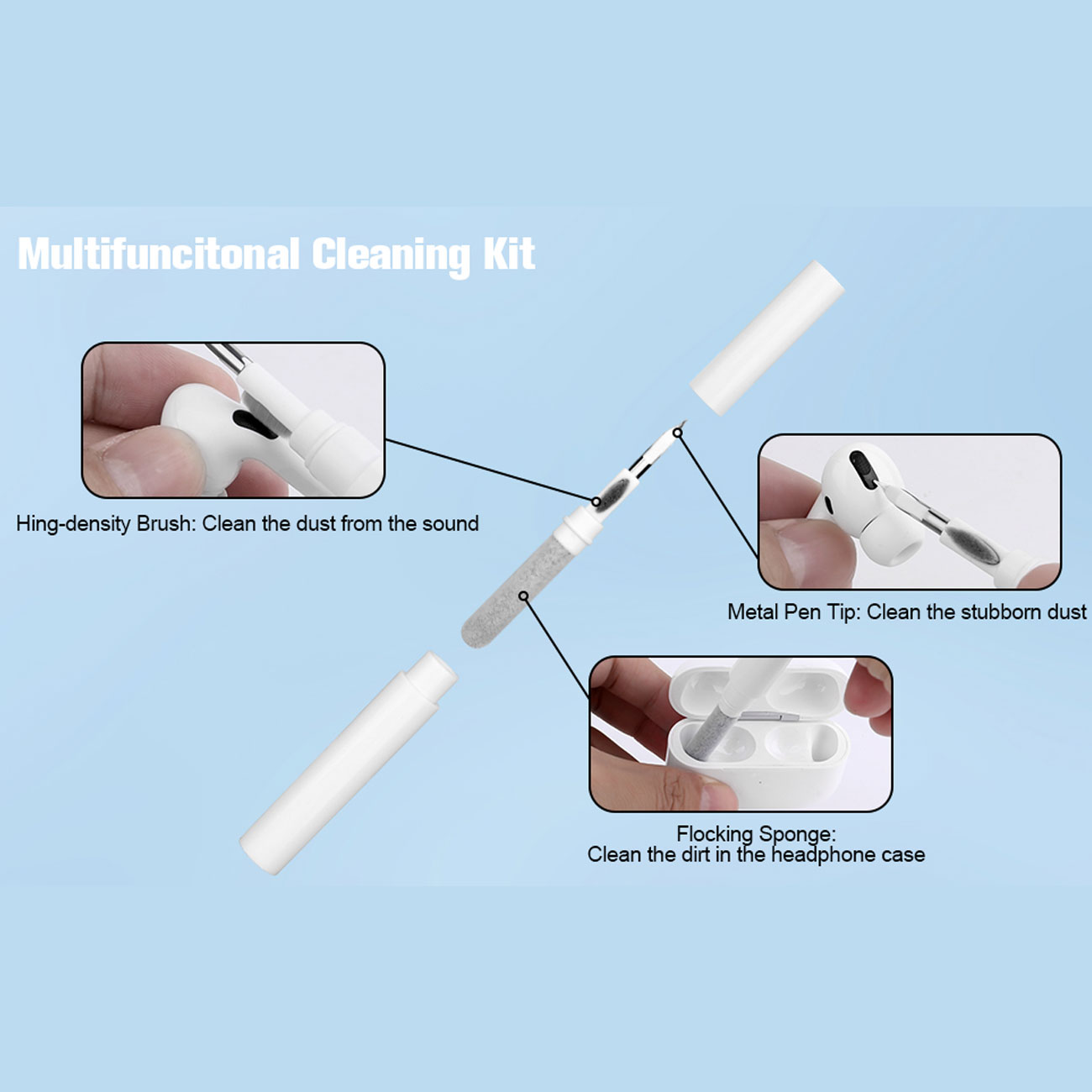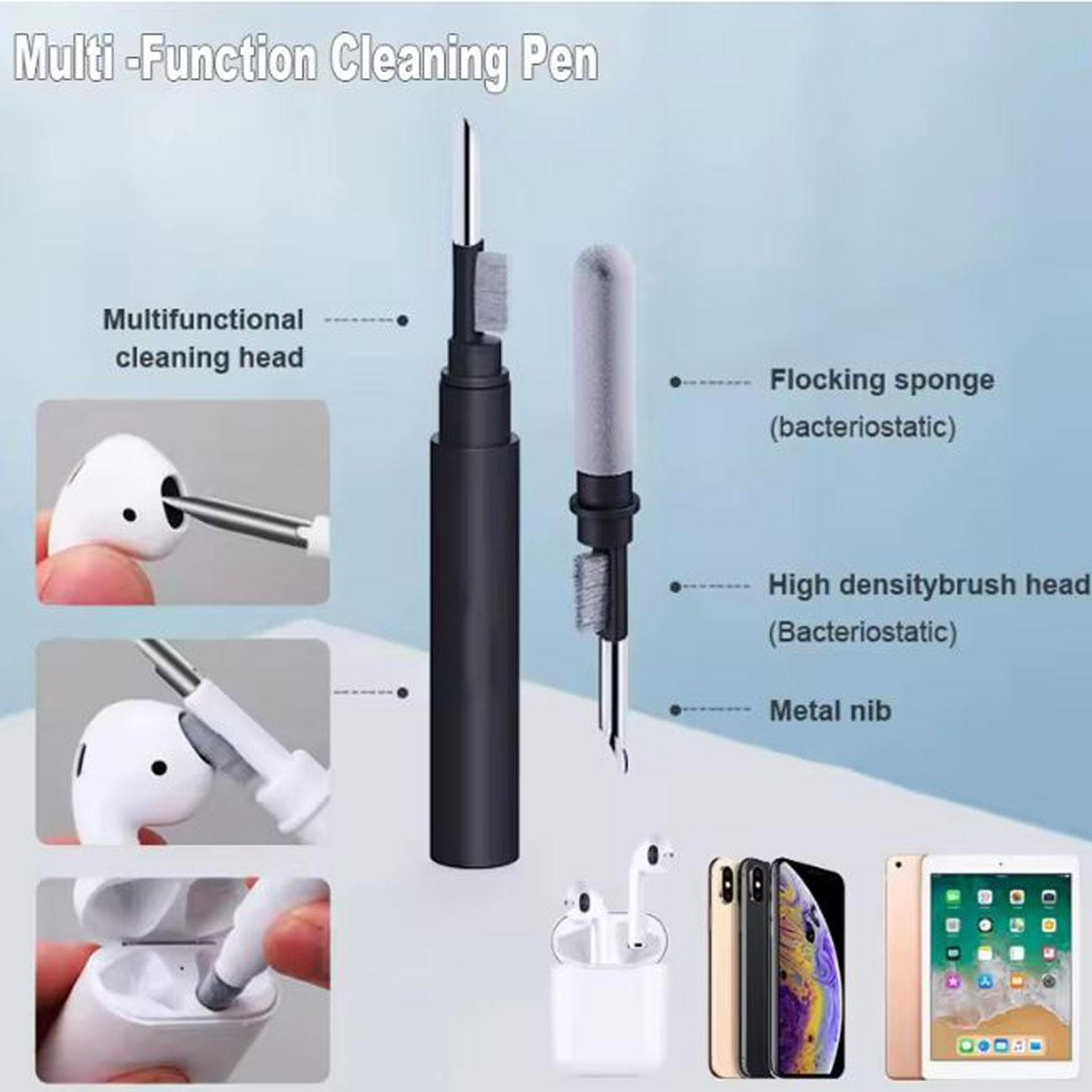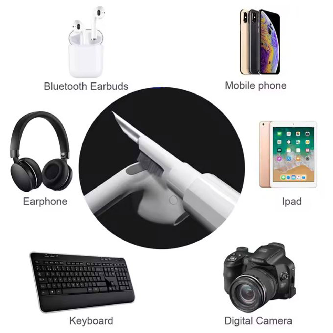 ست نظافت چند کاره دستگاههای الکترونیکی (Multi Cleaning Pen Tool For Headphones And Wireless Earbuds) یک ابزار کوچک و قلمشکل است که برای تمیز کردن هدفون، ایرباد بلوتوثی، کیس شارژ، درگاههای موبایل، کیبورد و حتی دوربین طراحی شده.