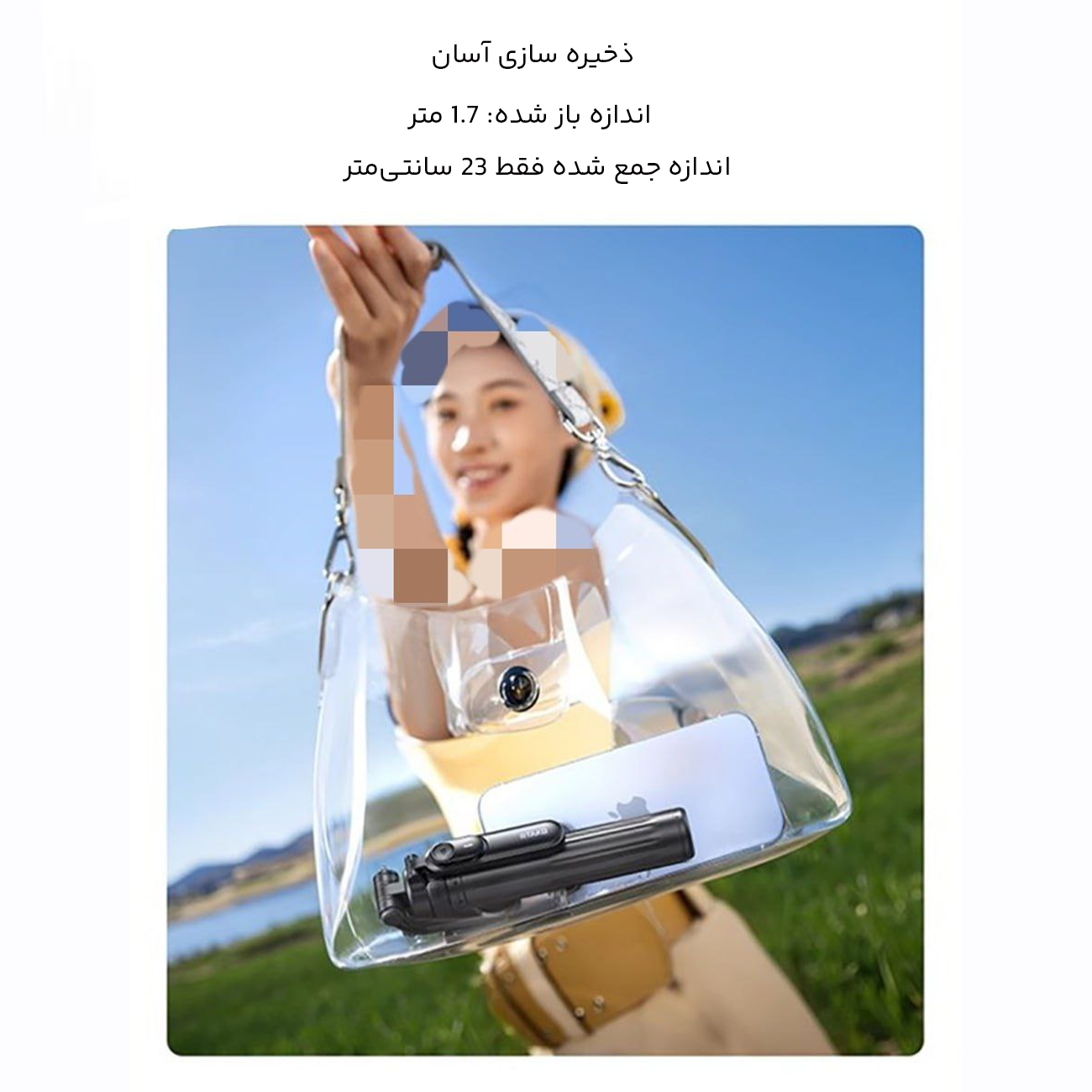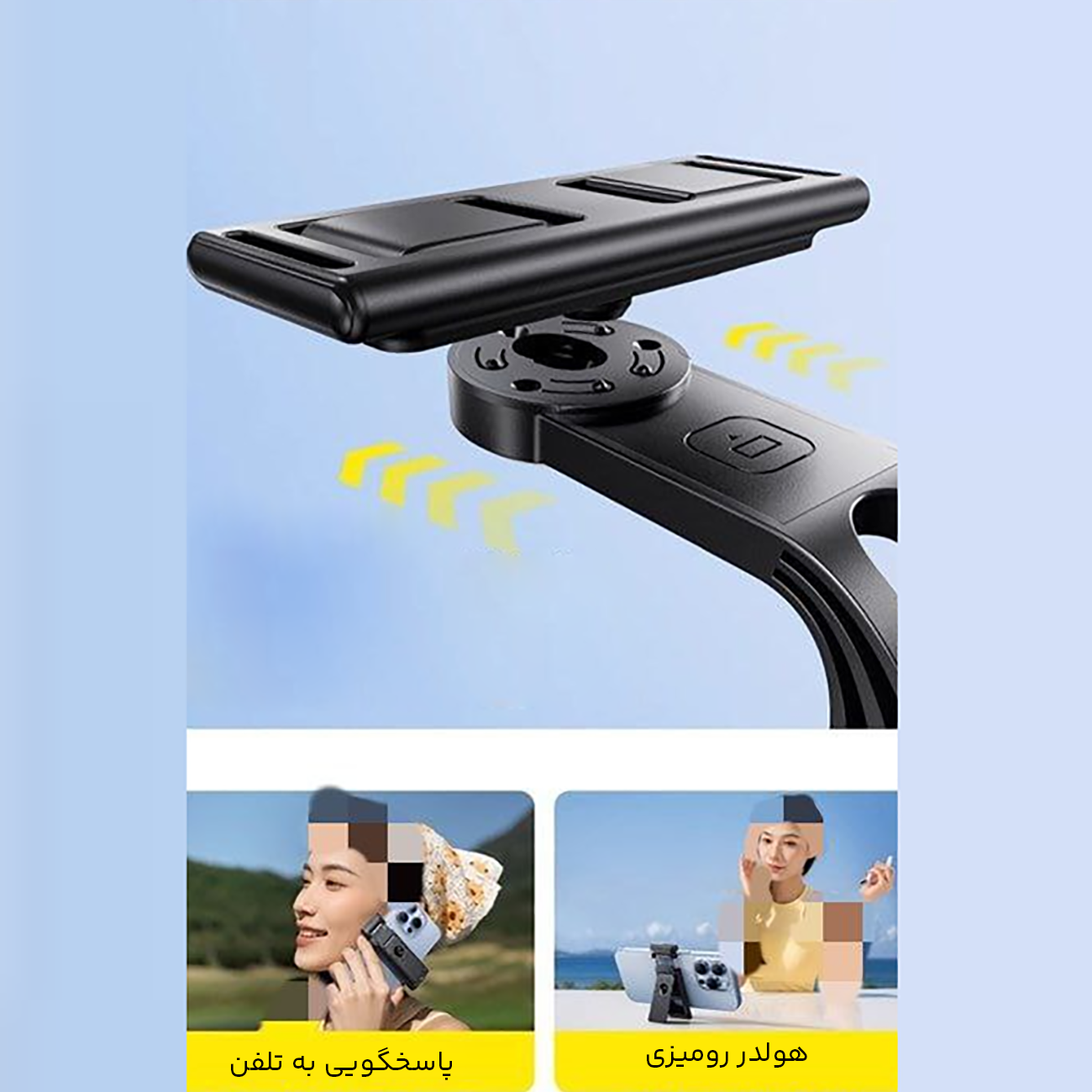 این مدل هم نقش مونوپاد سلفی تلسکوپی را دارد و هم با باز شدن پایهها به یک سهپایهی ثابت تبدیل میشود؛ برای سلفی، لایو اینستاگرام، کلاس آنلاین و ضبط ولاگ گزینهای خیلی کارآمد است.