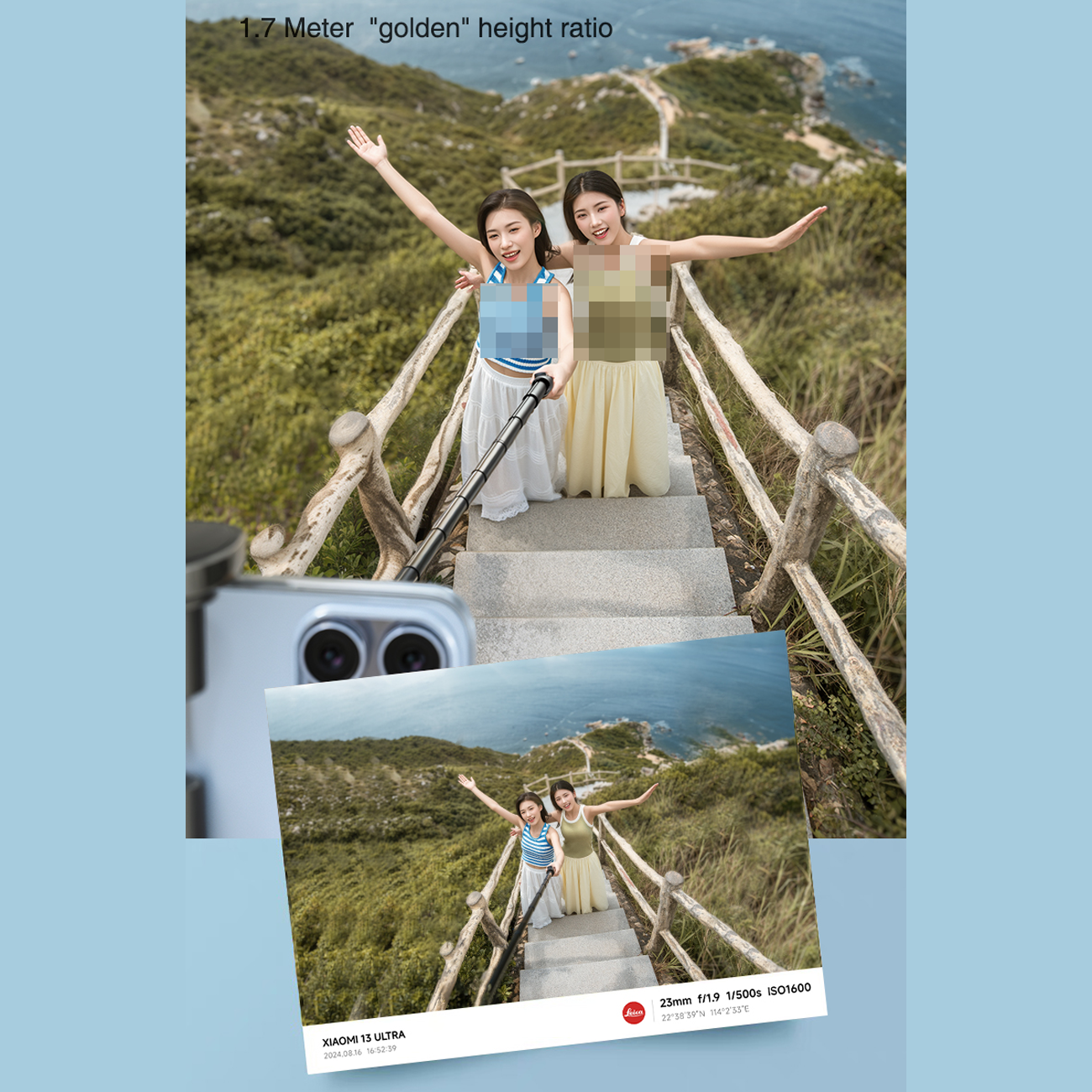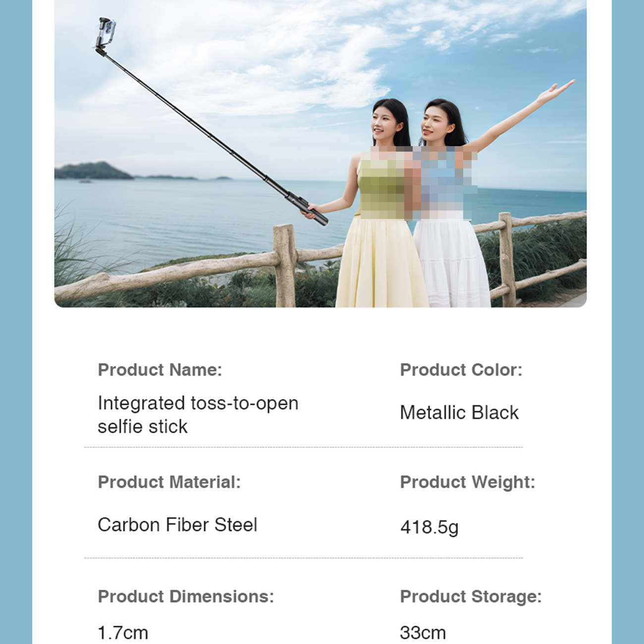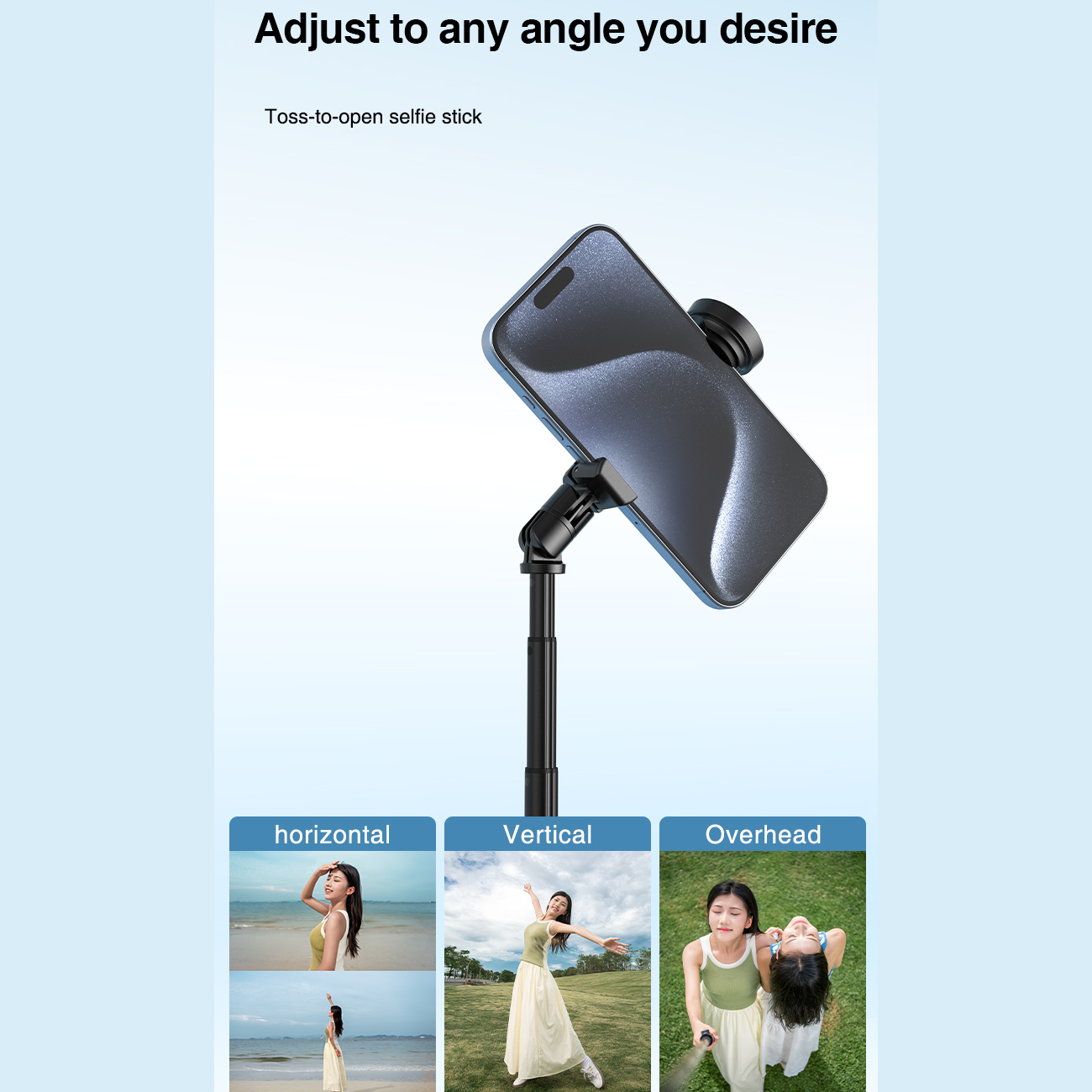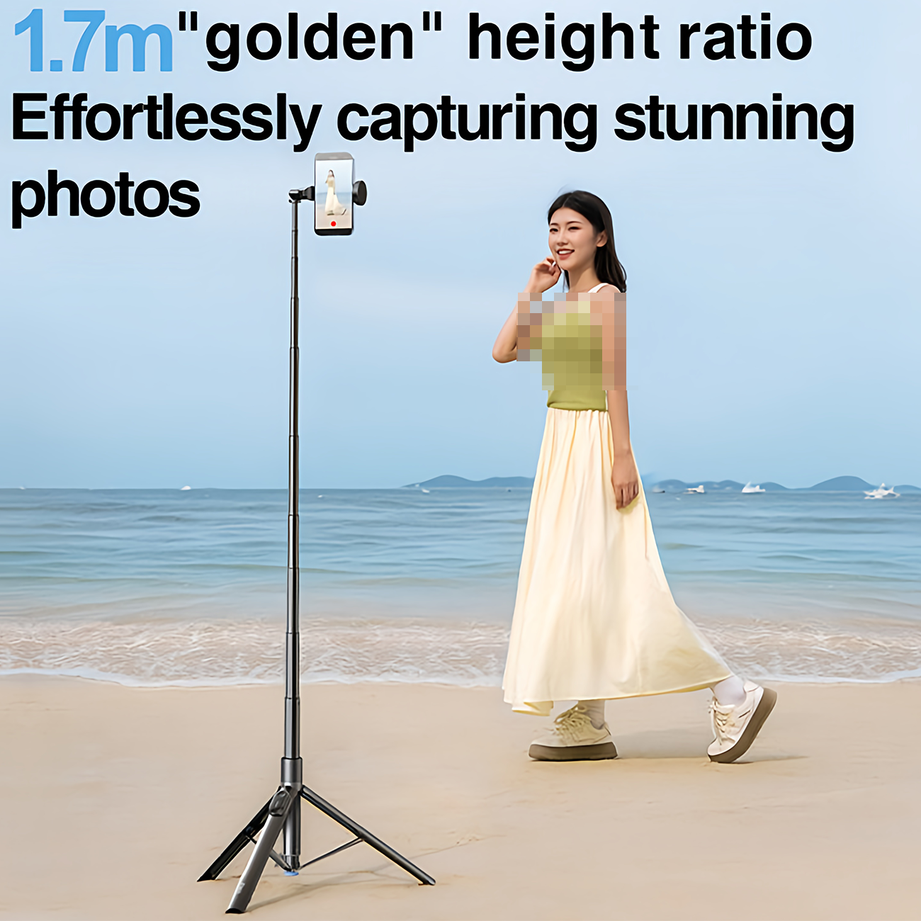 این مدل با ارتفاع حداکثر حدود ۱.۷ متر، باز شدن خودکار پایهها، ریموت بلوتوث مغناطیسی، زاویهپذیری ۷۲۰ درجه و بدنه فیبرکربن+استیل، عملاً یک ست کامل تولید محتوا برای موبایل محسوب میشه.