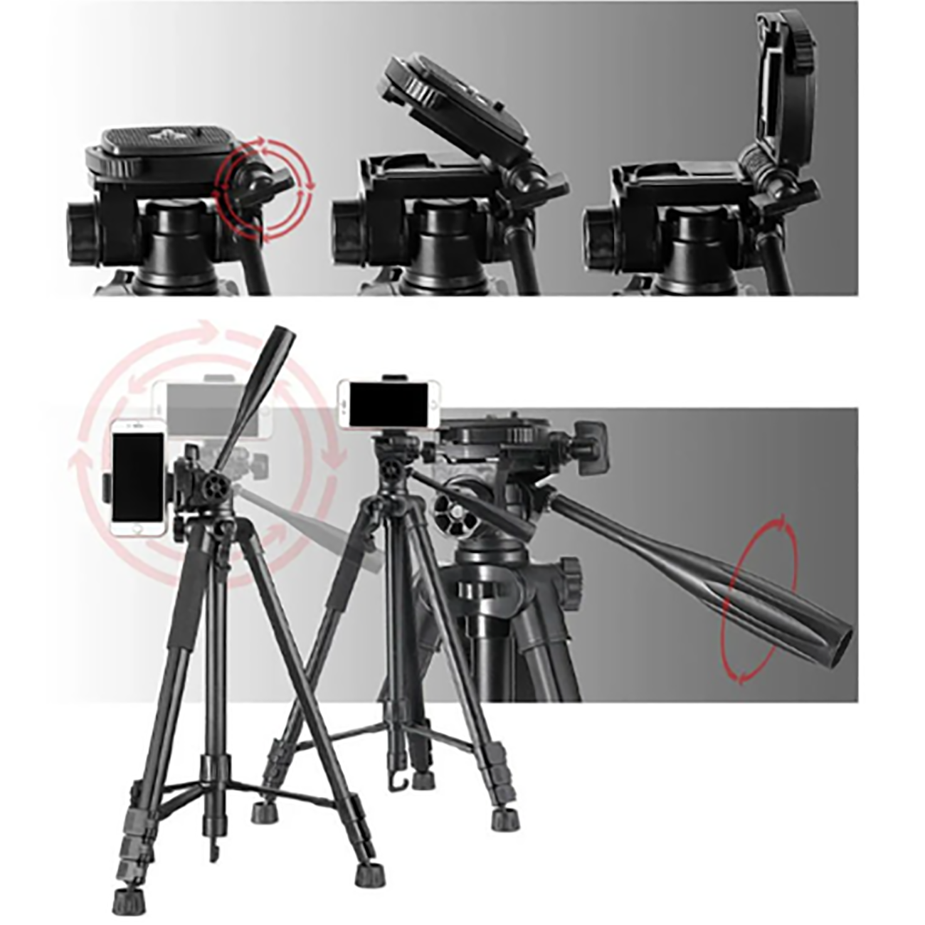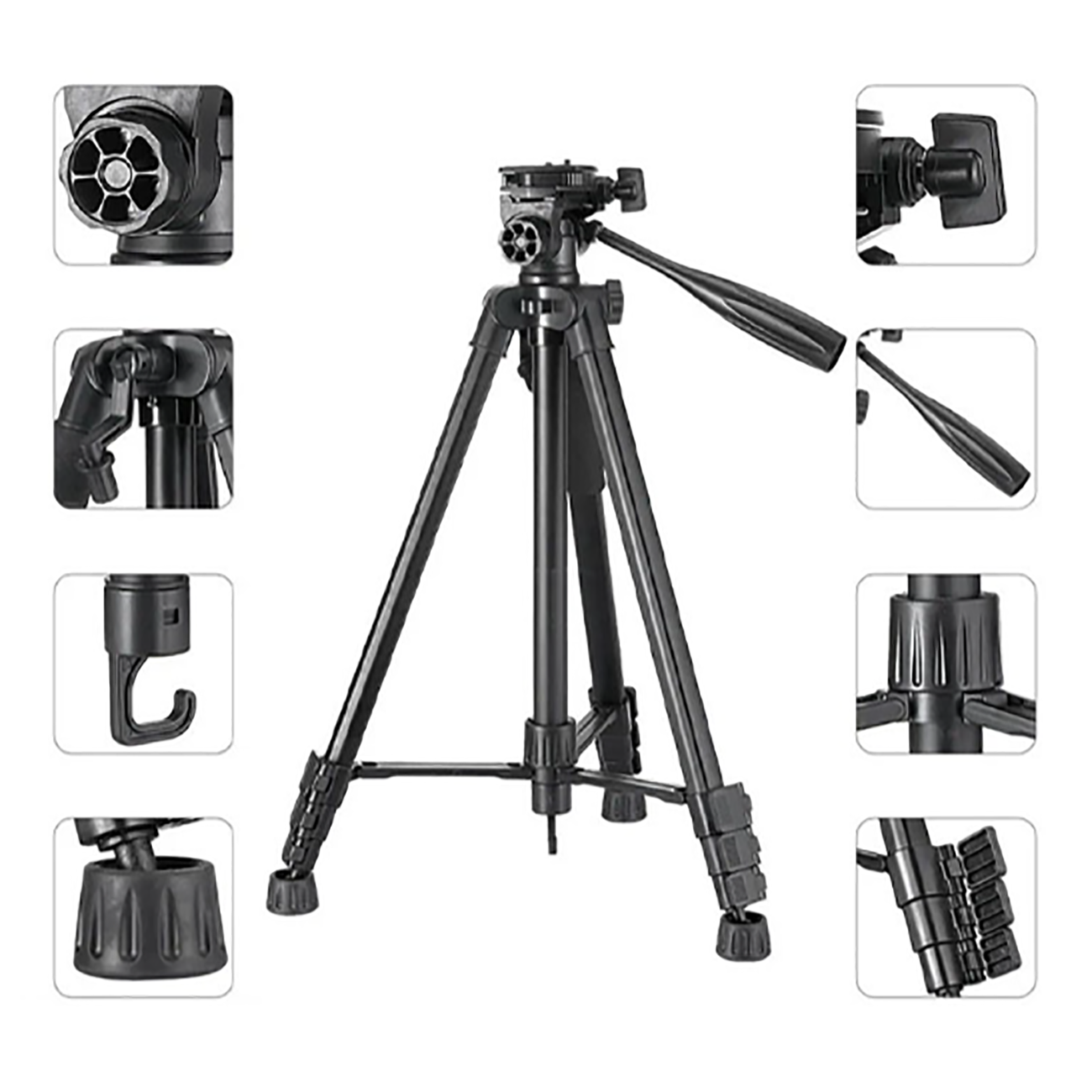 جواب: این مدل تا حدود ۱۷۰ سانتیمتر ارتفاع میگیرد و میتواند تا حدود ۵ کیلوگرم وزن را تحمل کند؛ یعنی برای بیشتر دوربینهای نیمهحرفهای بههمراه لنزهای متوسط و برای موبایل کاملاً مناسب است.