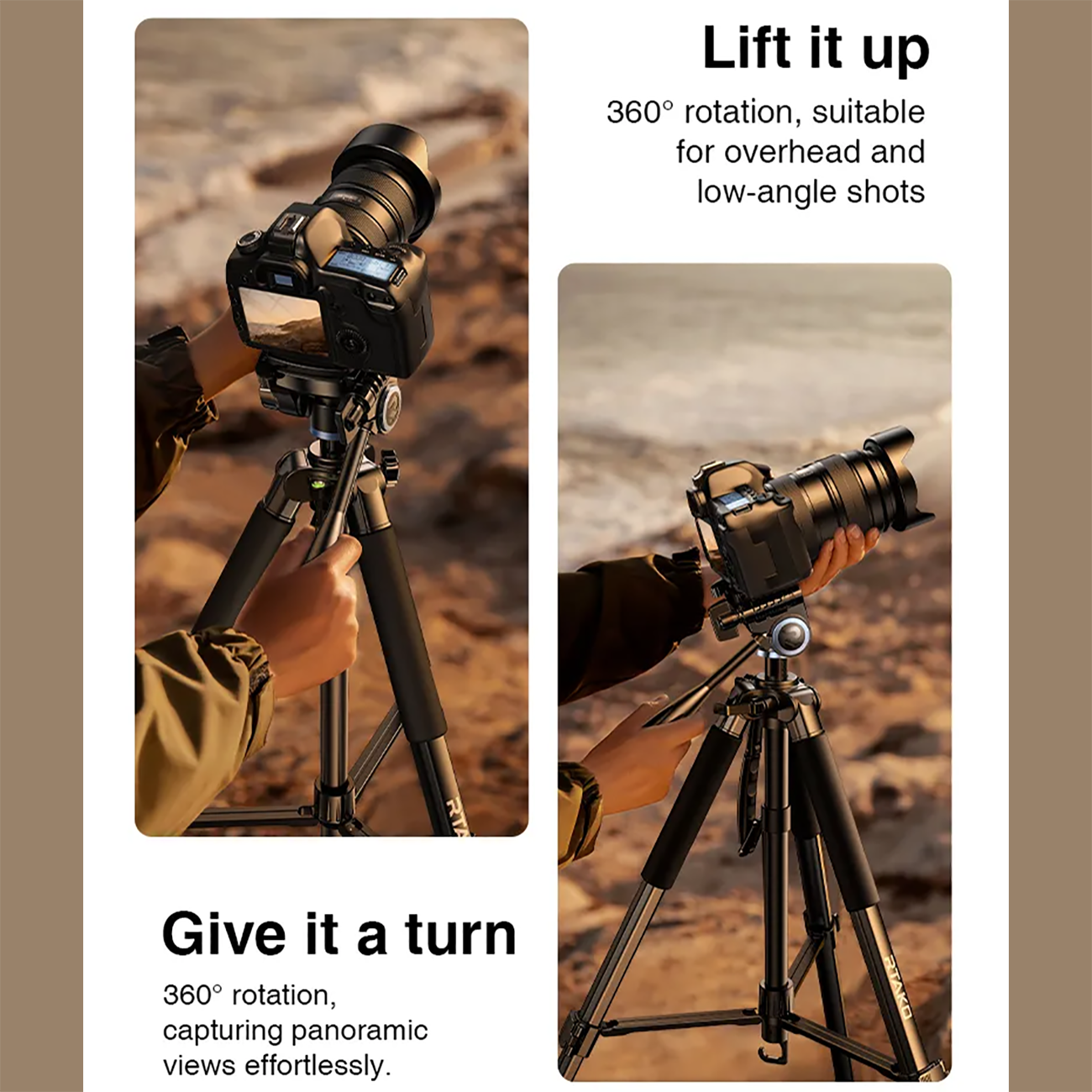 ترکیب ساختار مقاوم فولاد کربنی و آلیاژ آلومینیوم، تحمل وزن تا ۵ کیلوگرم، ارتفاع تا ۱۷۰ سانتیمتر و هد پانورامای ۳۶۰ درجه باعث شده برای استودیو، ولاگ، تولید محتوا و حتی استفادهی فضای باز گزینهای جدی باشد.